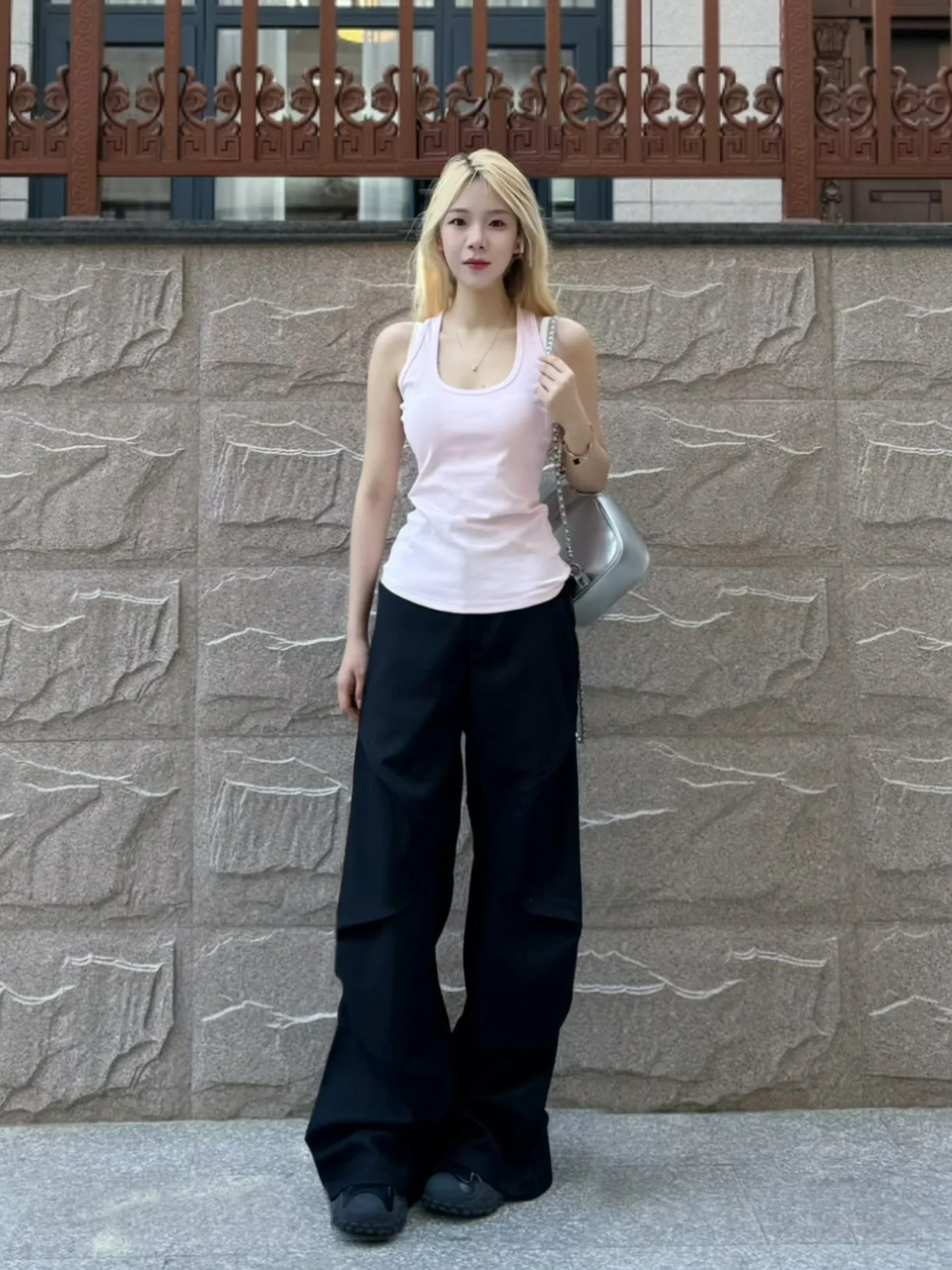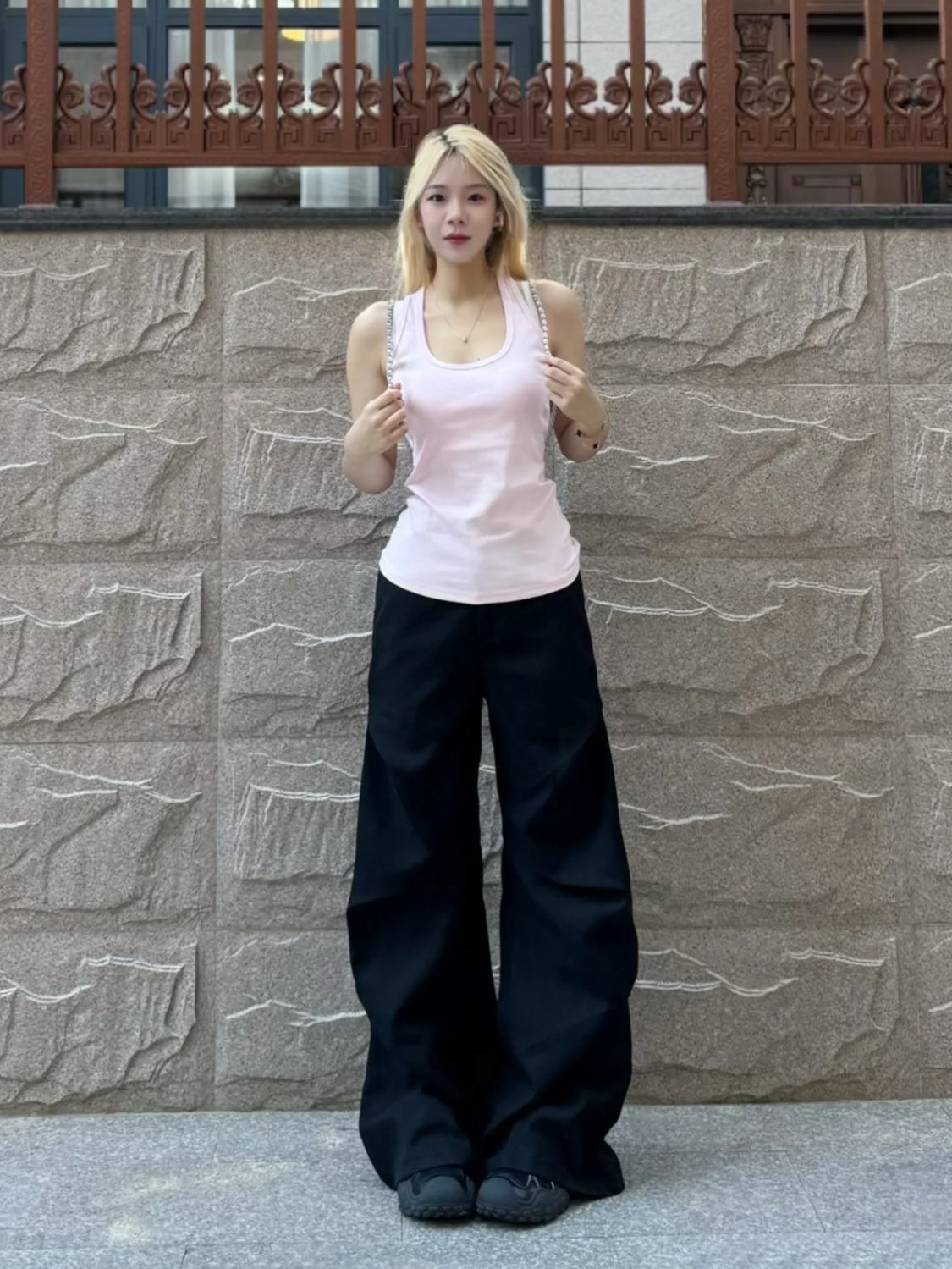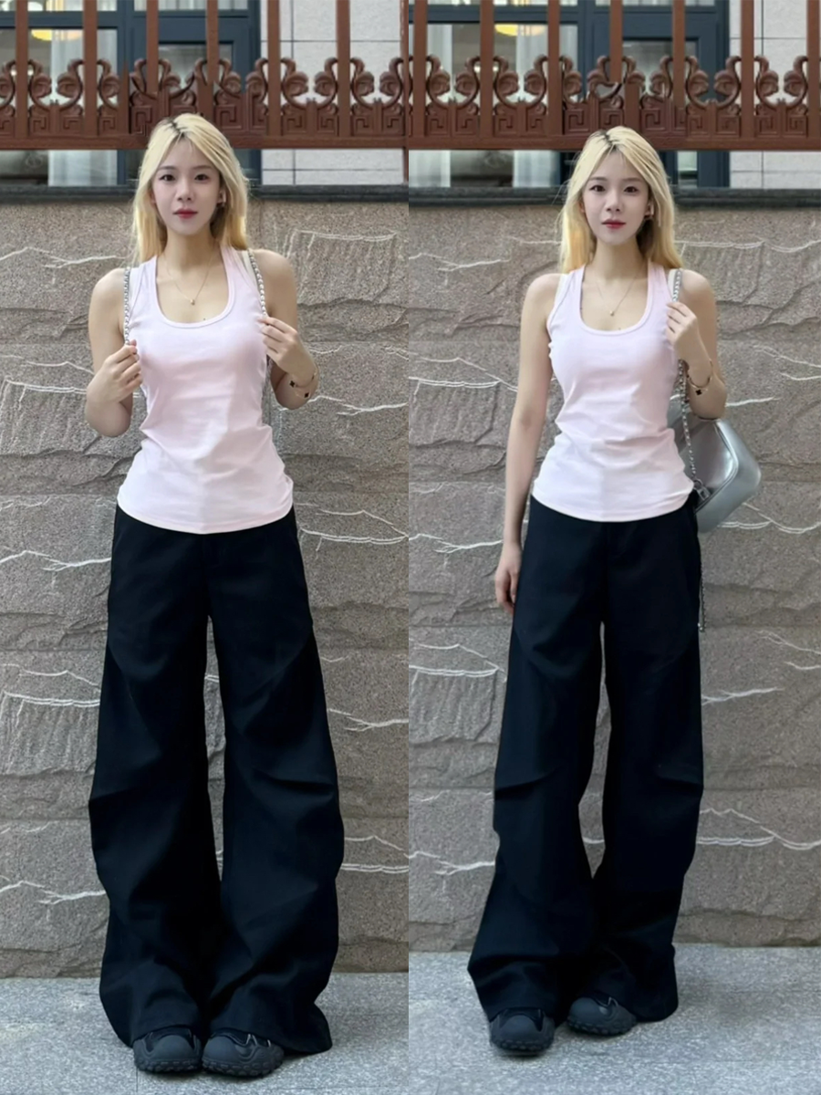 美式辣妹U领吊带背心女夏季新款修身显瘦小众设计感ins基础款上衣
