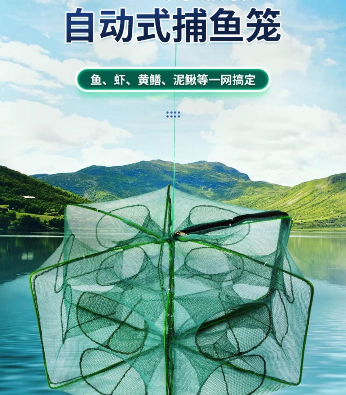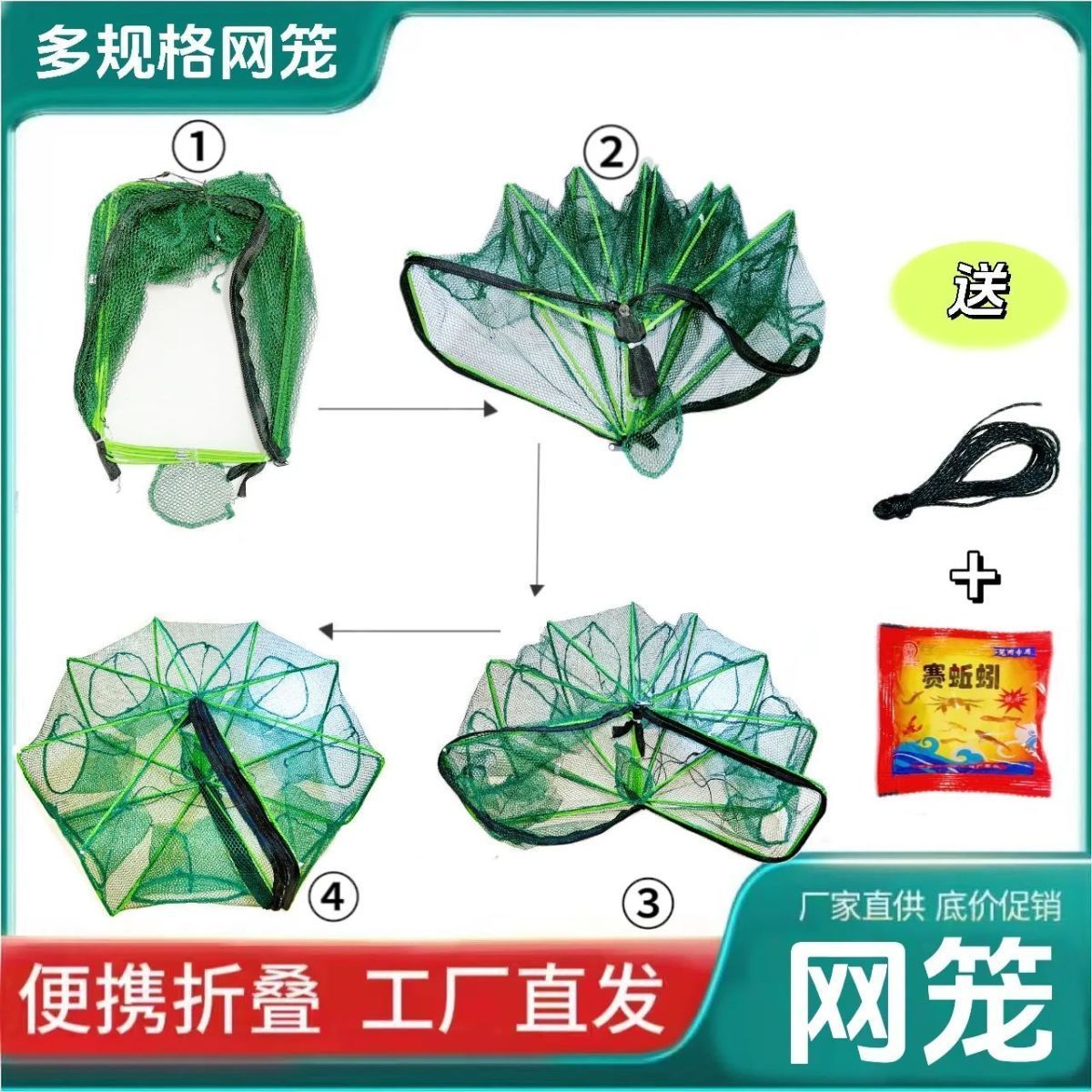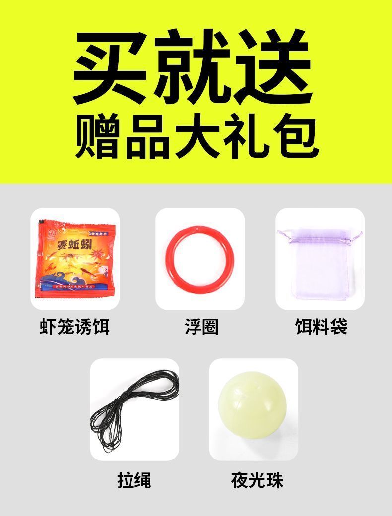 | 25 new square fishing lobster basket 10 holes + gift bag +5 packs of bait(25新款方型捕鱼虾笼 10孔+礼包+5包饵) | USD $1.86 | 999998 piece available |