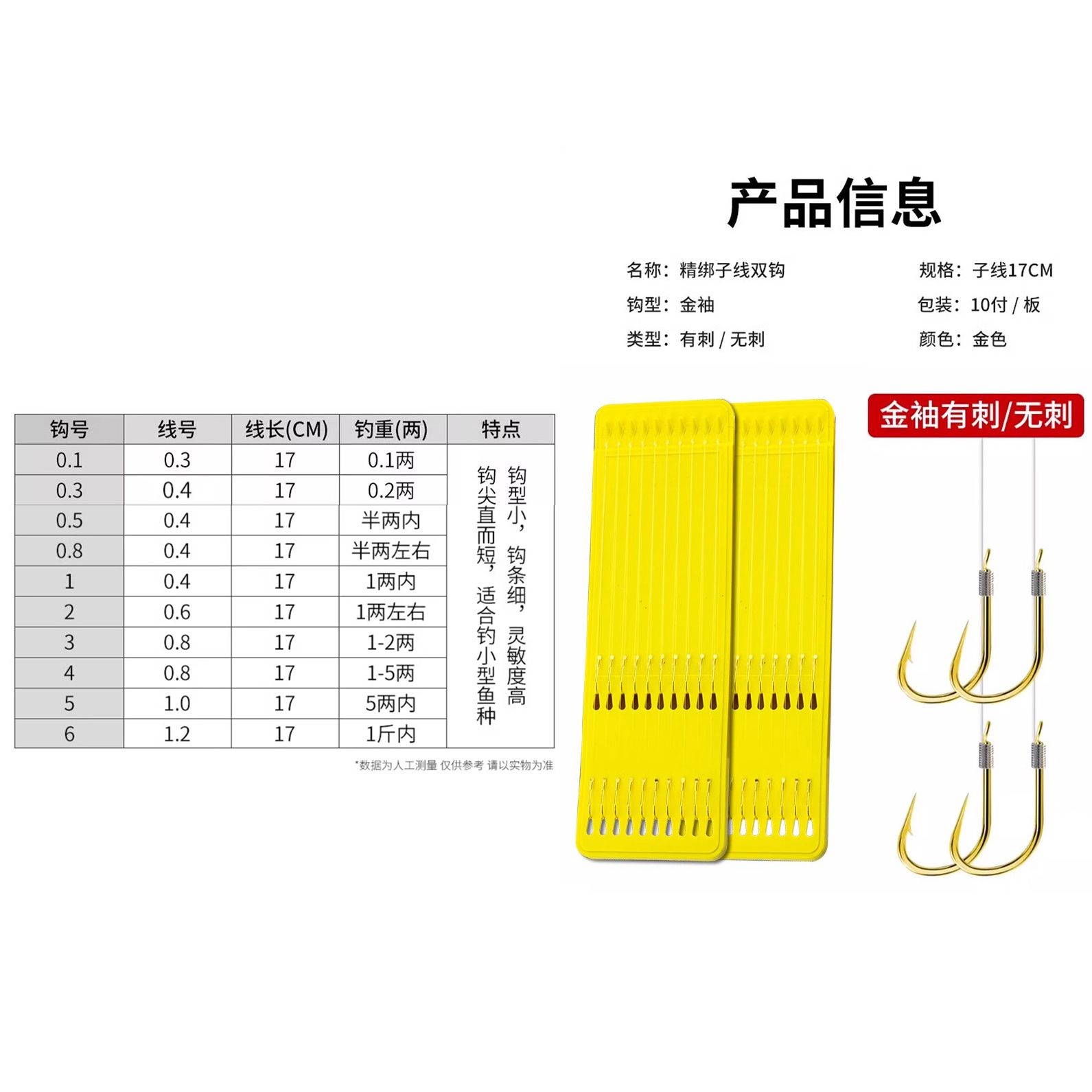 金袖鱼钩进口短子线成品超短款子线双钩绑好正品钓鱼野钓鲫鱼刺袖
