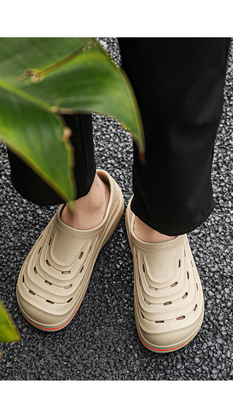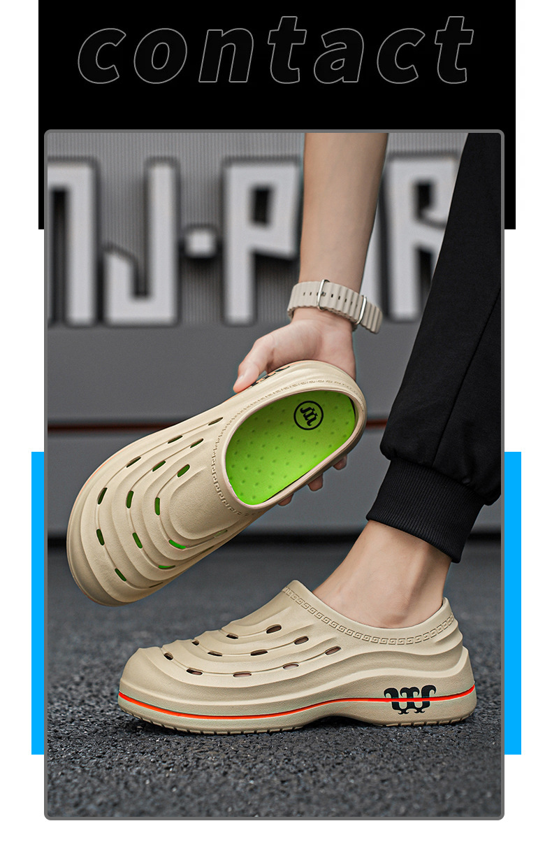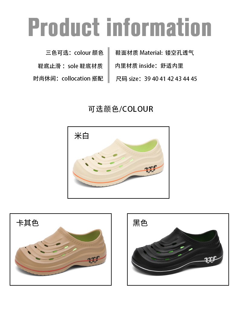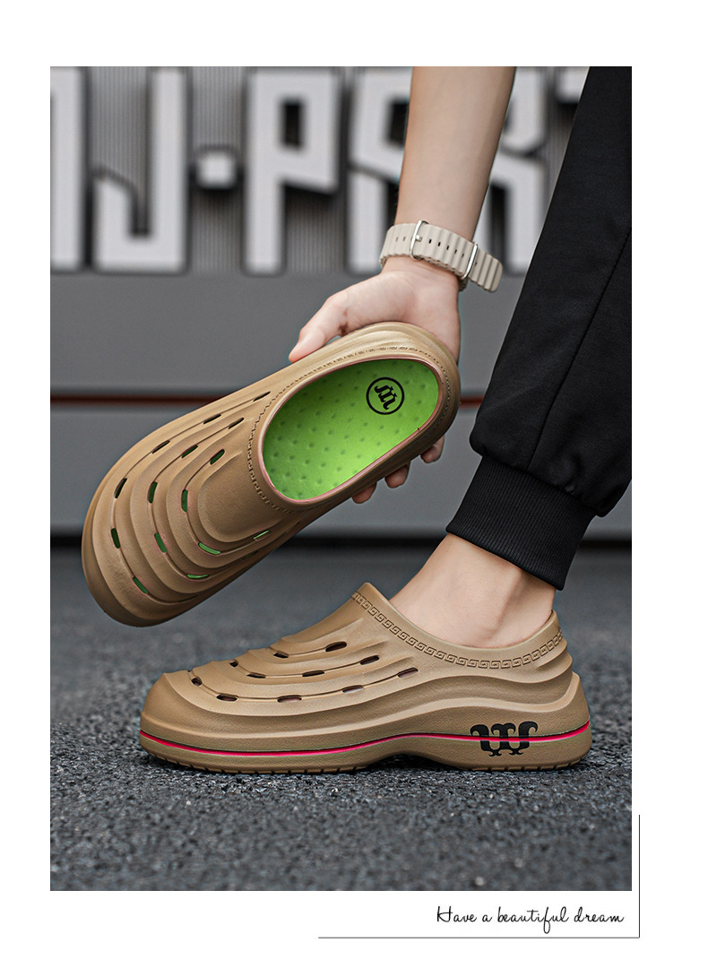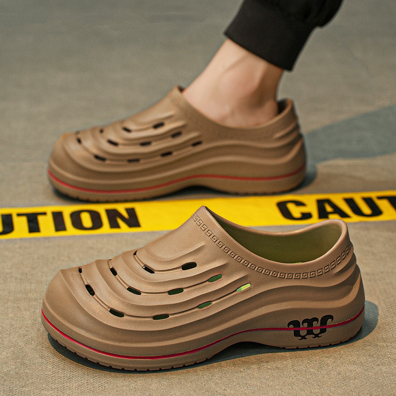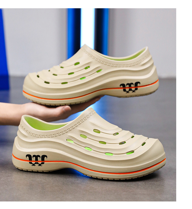 外贸厨师鞋室内室外休闲男款2025新款透气软底沙滩洞洞凉鞋男批发