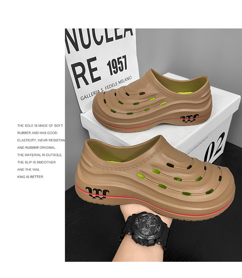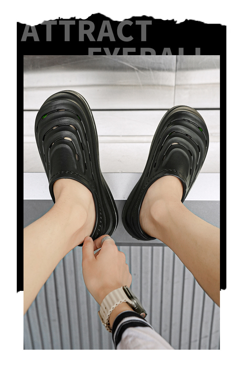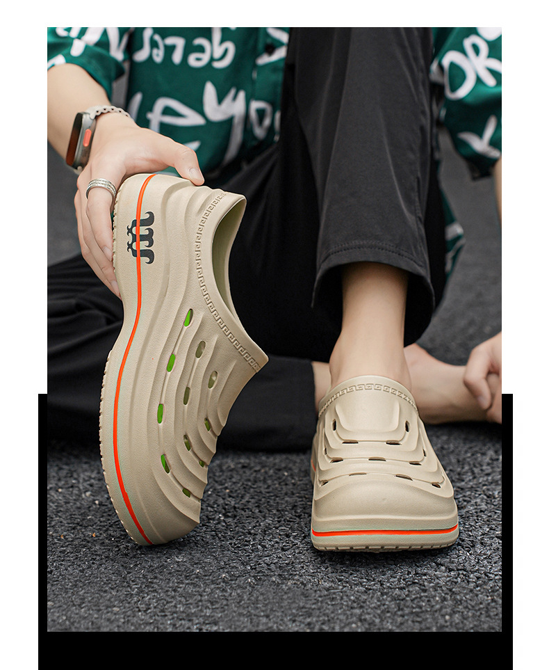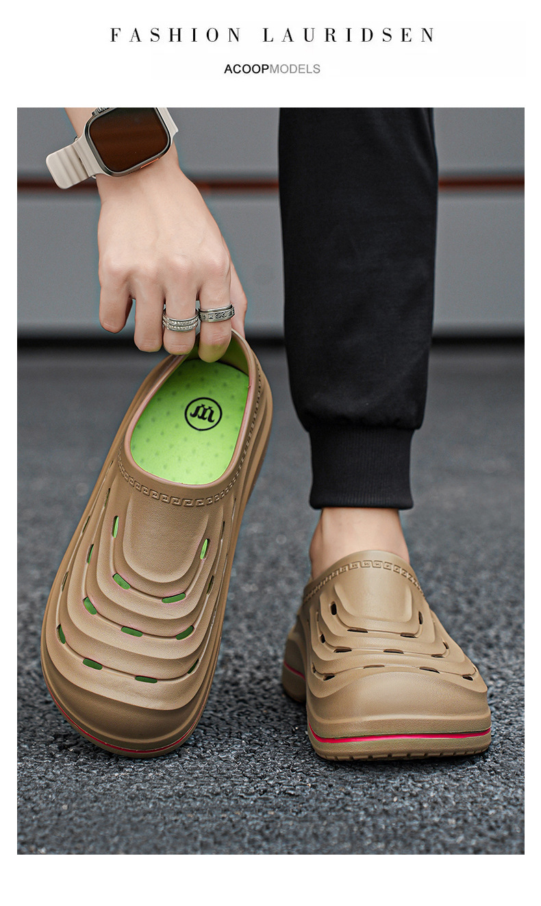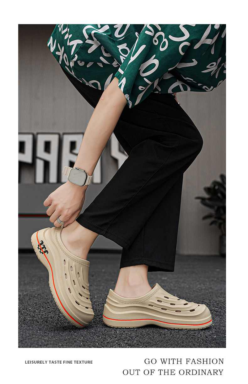 外贸厨师鞋室内室外休闲男款2025新款透气软底沙滩洞洞凉鞋男批发