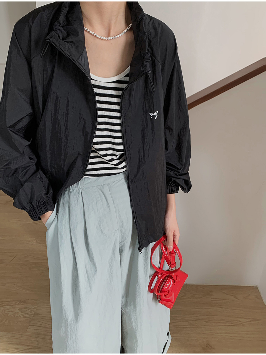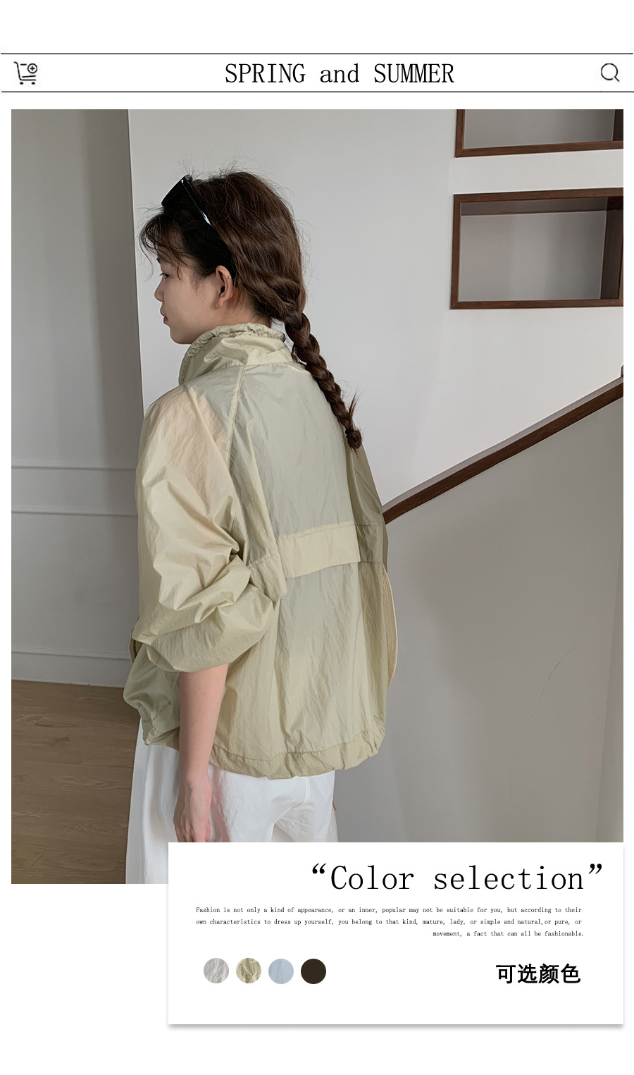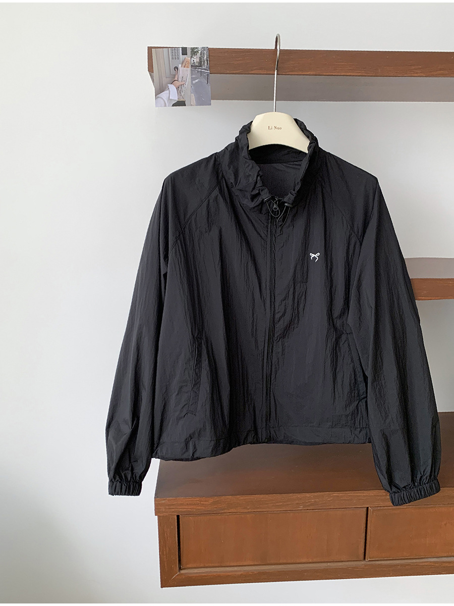黎诺徒步户外立领防晒衣外套女2025夏新款休闲宽松印花拉链冲锋衣