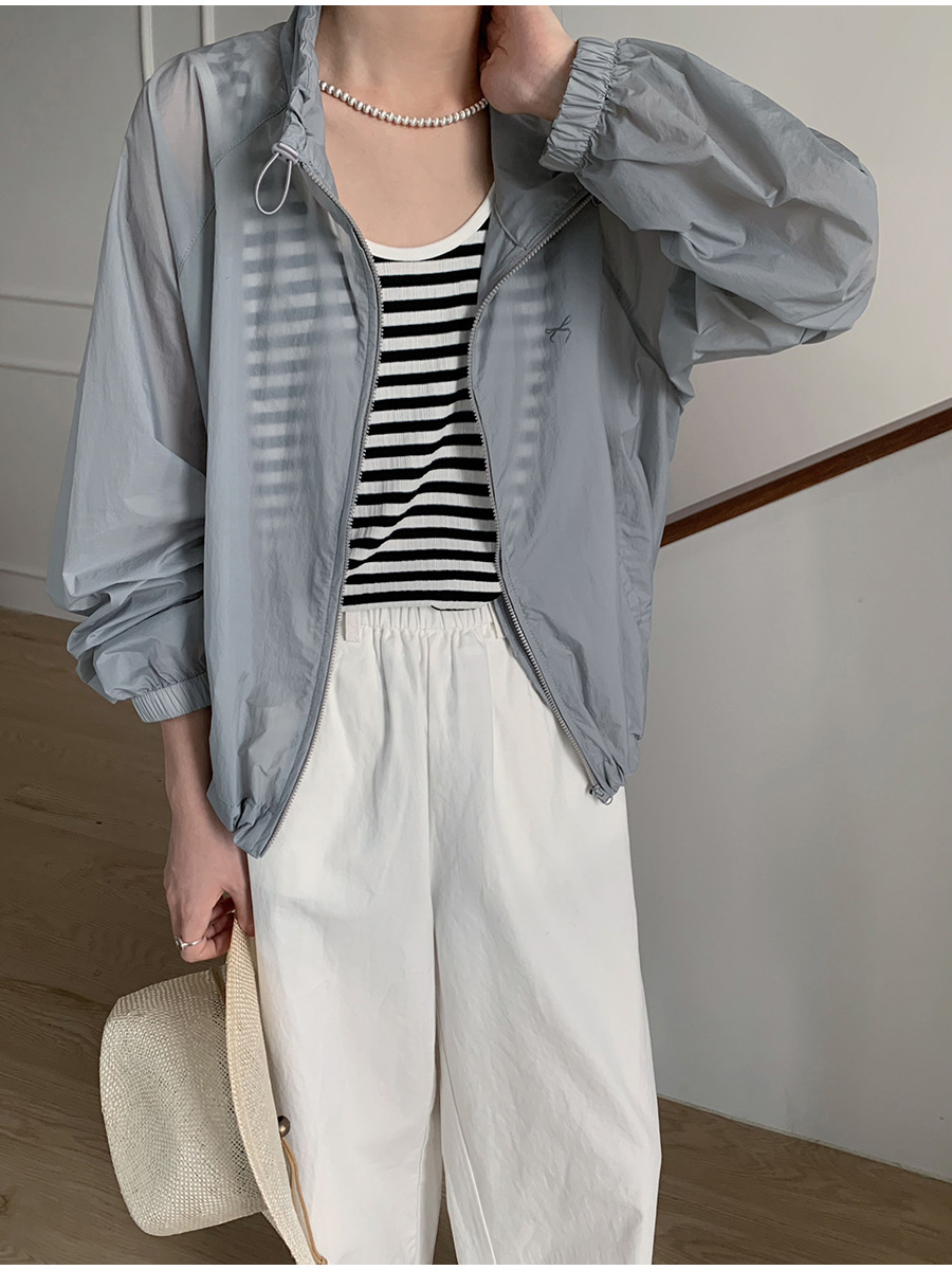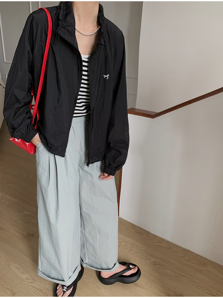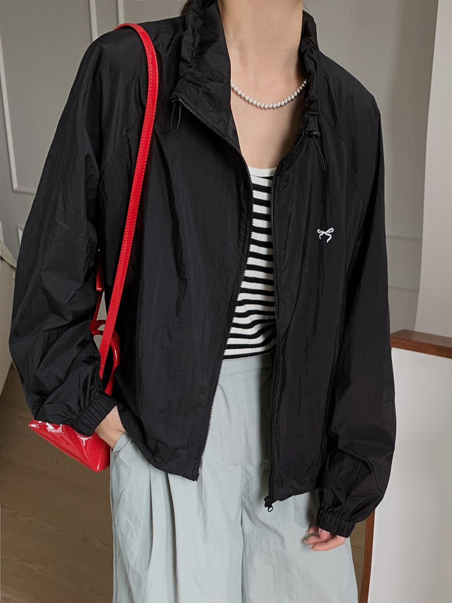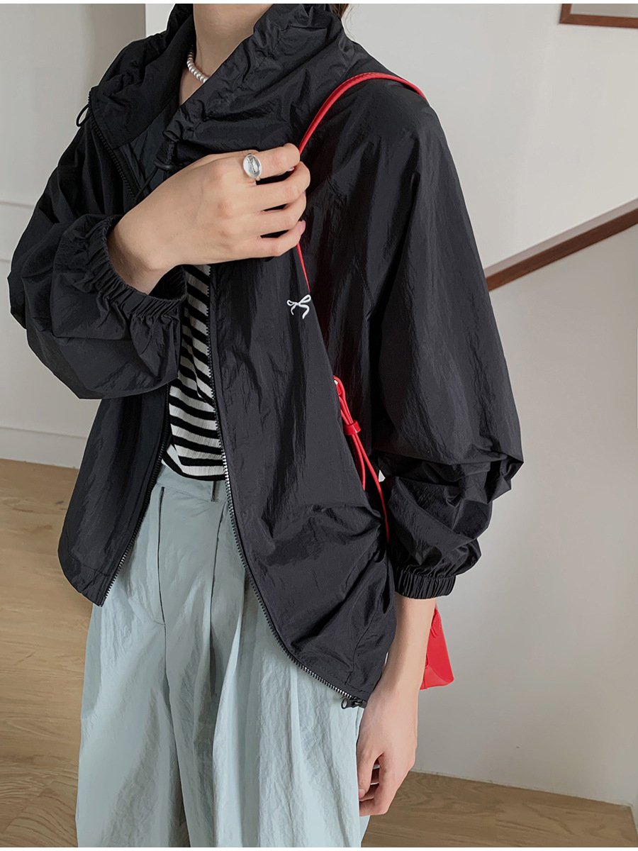 黎诺徒步户外立领防晒衣外套女2025夏新款休闲宽松印花拉链冲锋衣