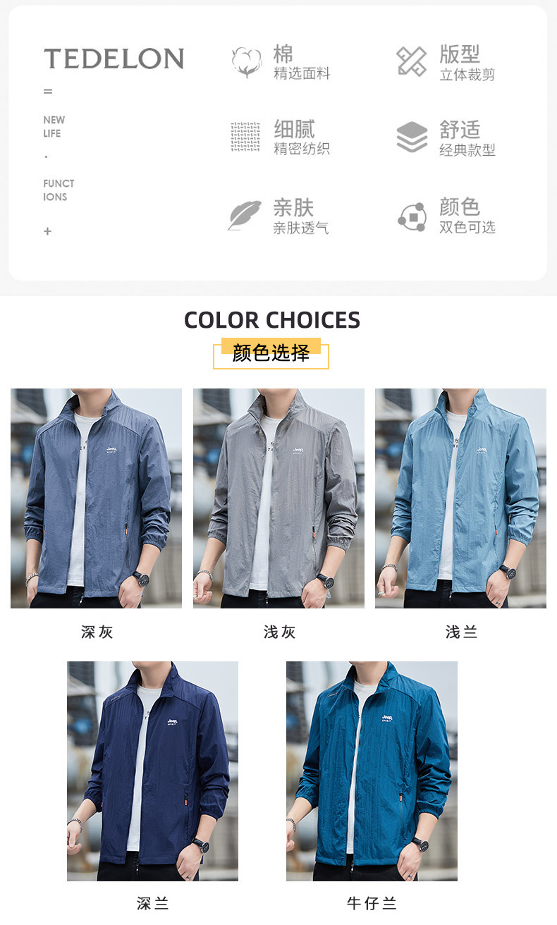 厂家直销春夏季男款夹克外套薄款轻薄透气防紫外线男士防晒衣服#