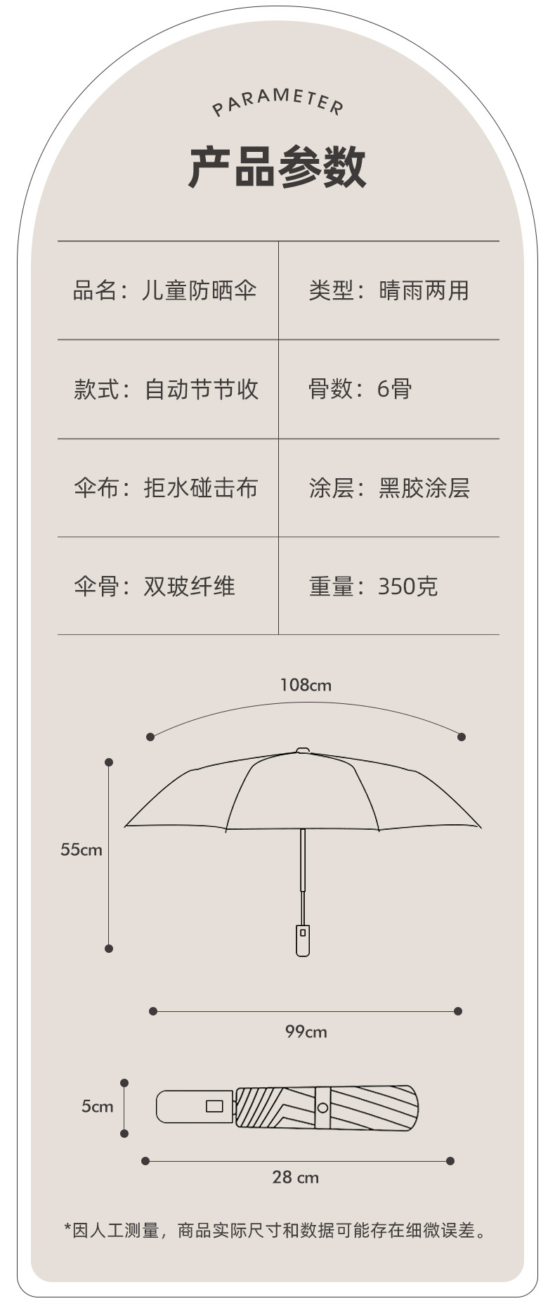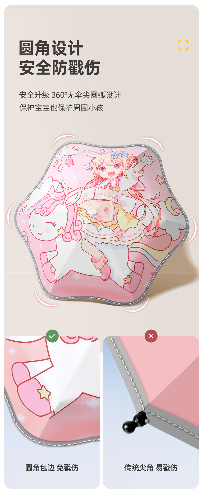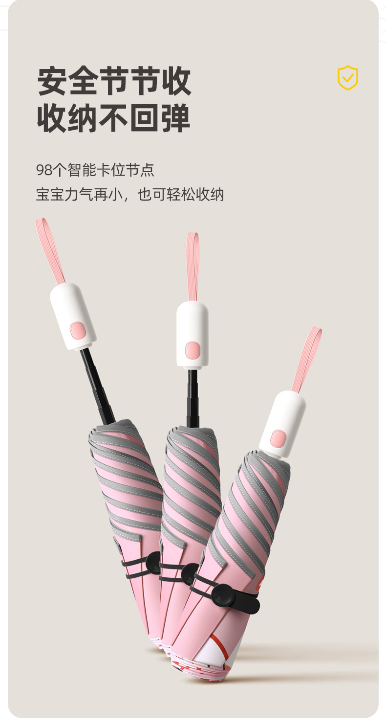 全自动安全防回弹儿童雨伞女孩小学生男童黑胶晴雨两用折叠节节收