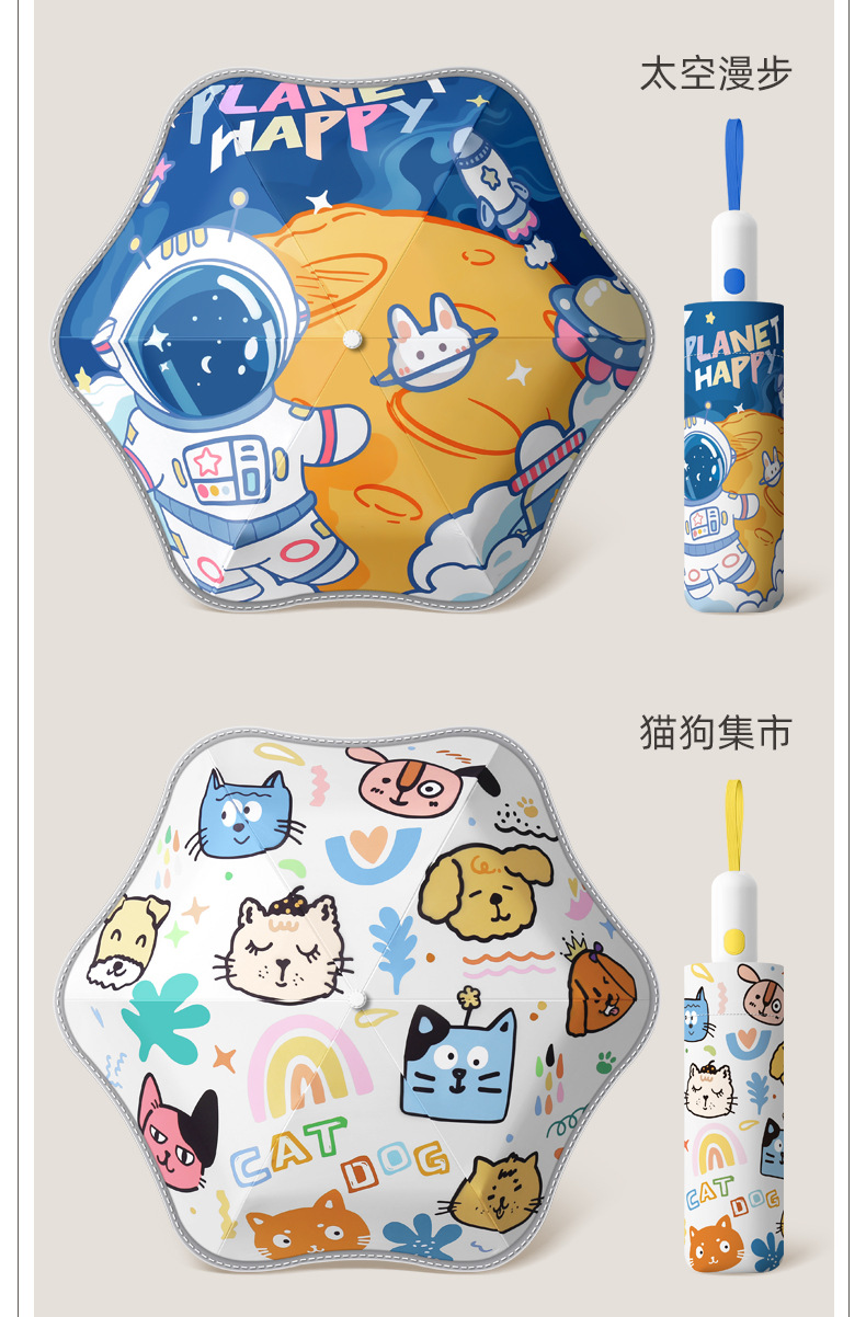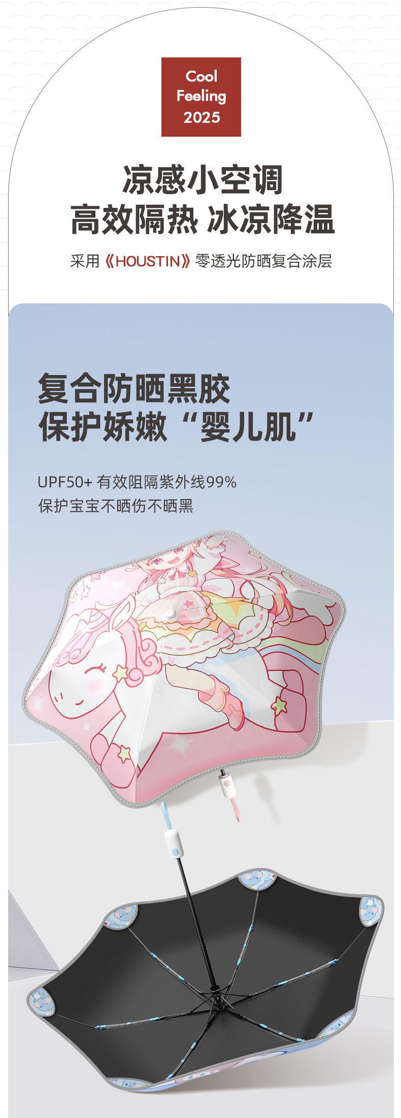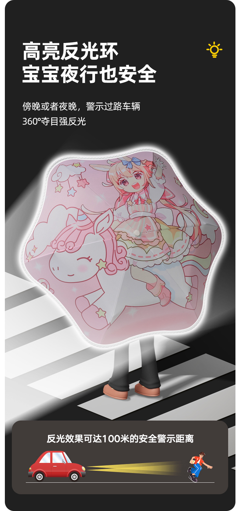 全自动安全防回弹儿童雨伞女孩小学生男童黑胶晴雨两用折叠节节收