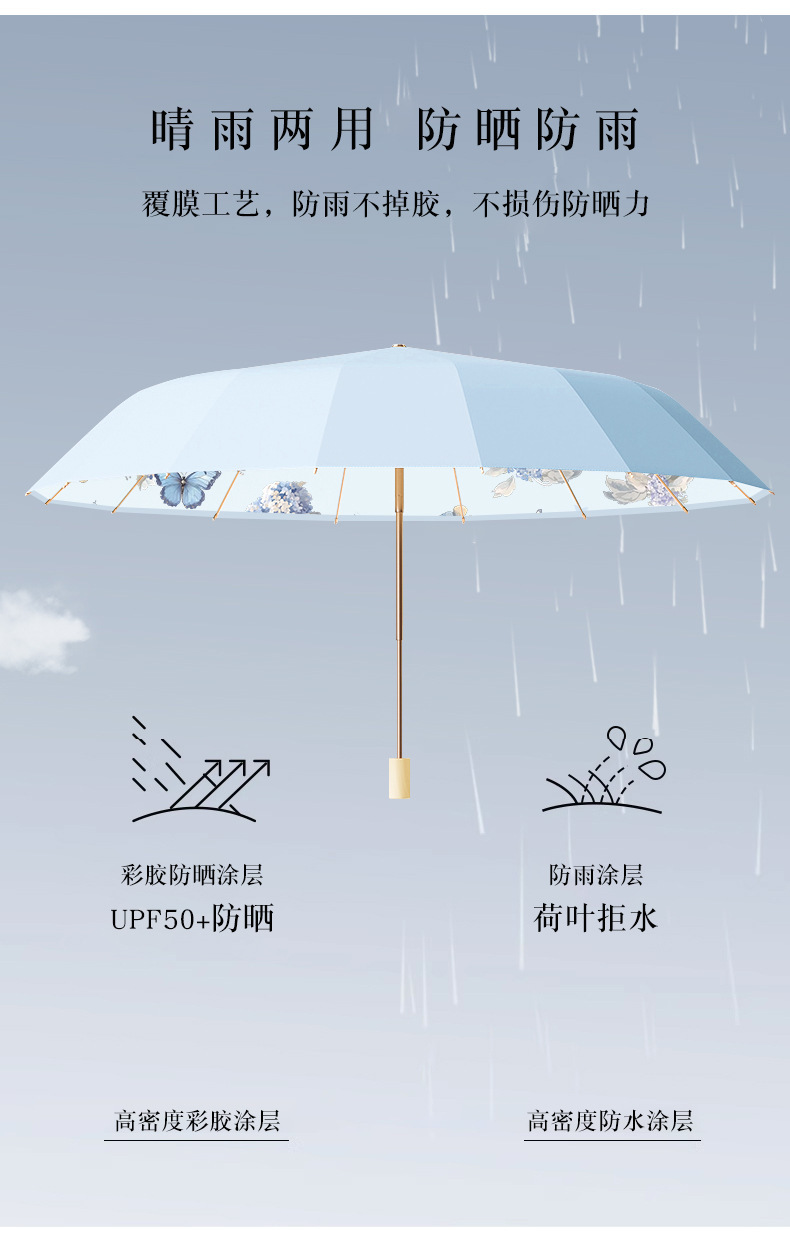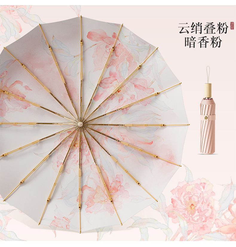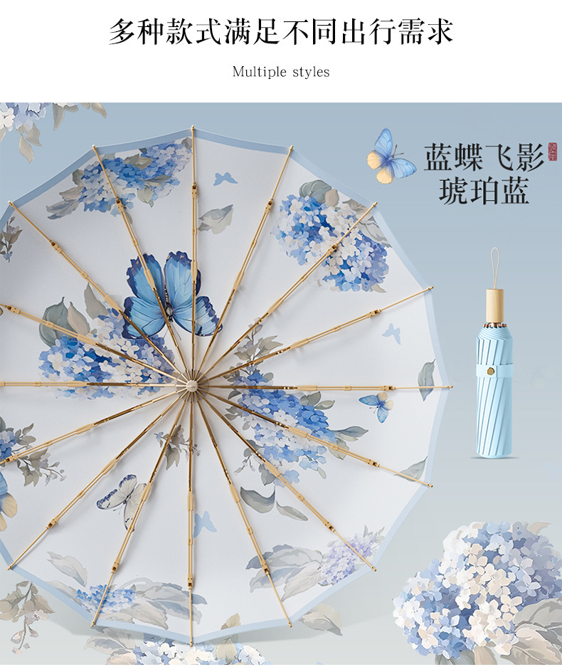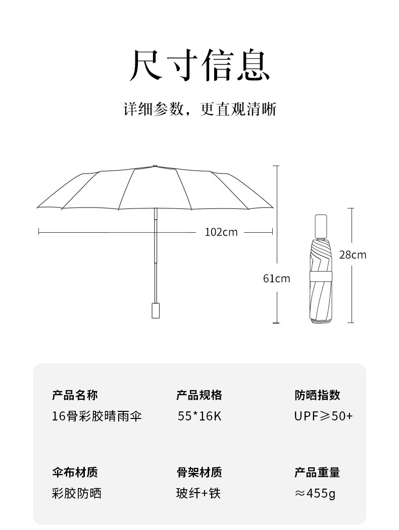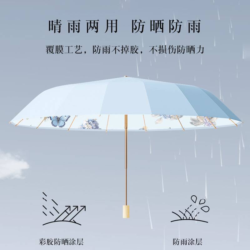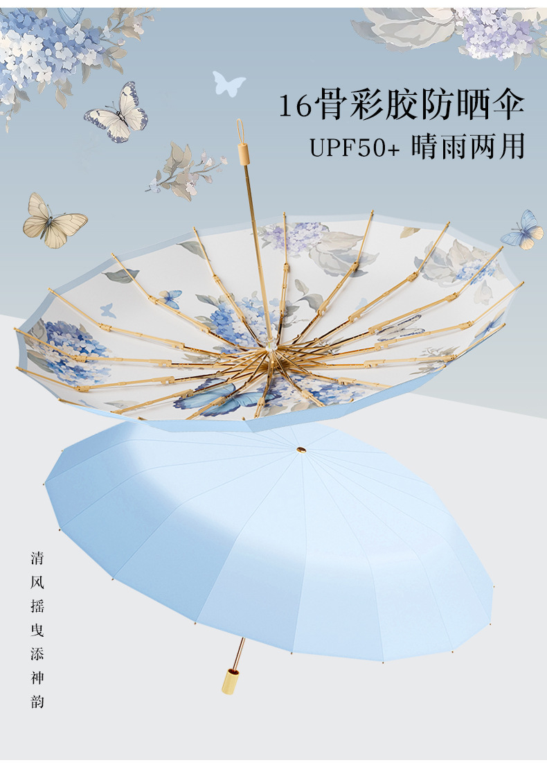 16骨彩胶太阳伞大号晴雨伞两用女生复古高颜值防晒防紫外线遮阳伞