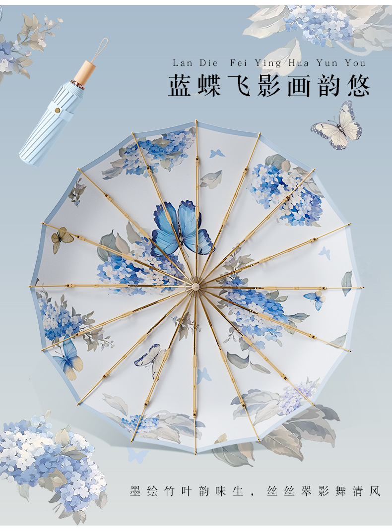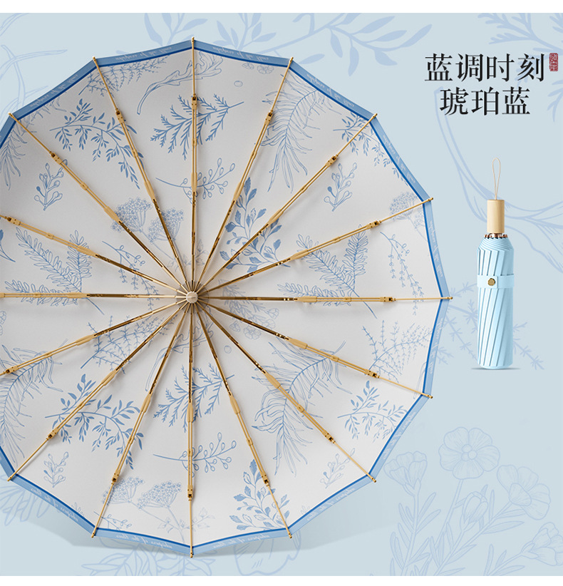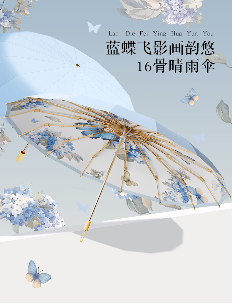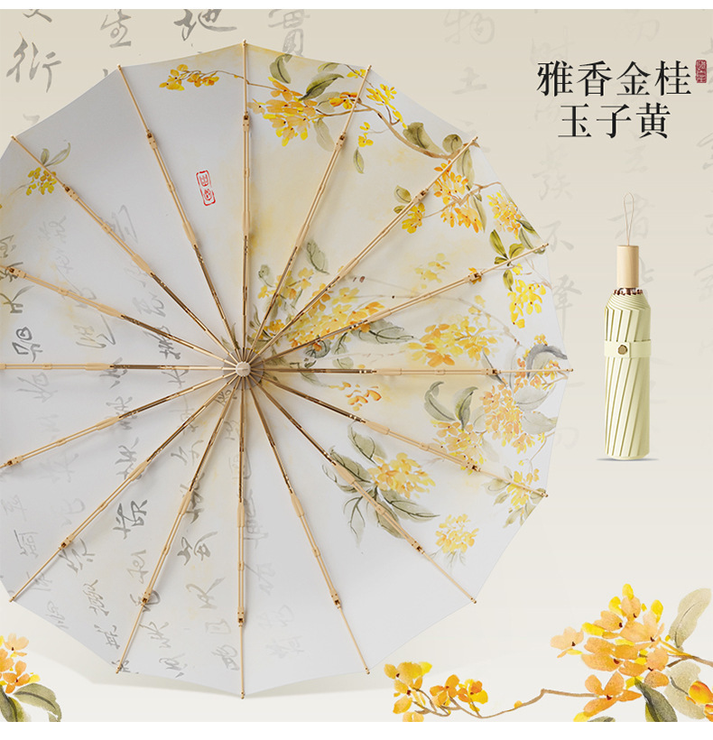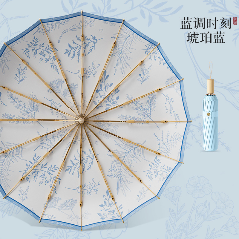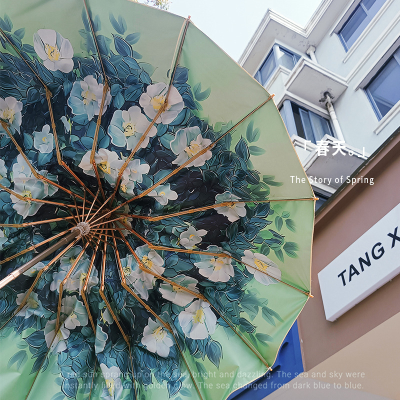 16骨彩胶太阳伞大号晴雨伞两用女生复古高颜值防晒防紫外线遮阳伞