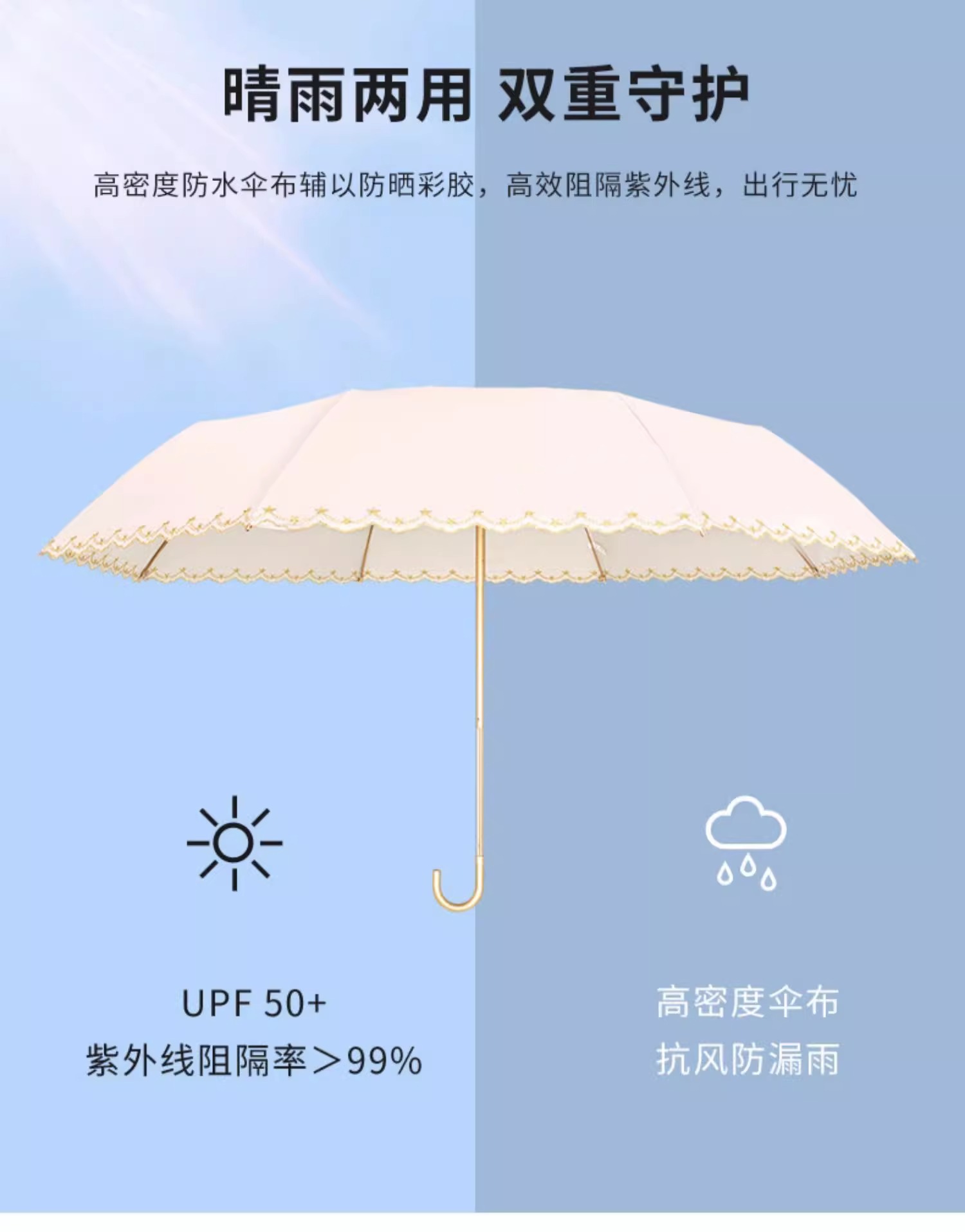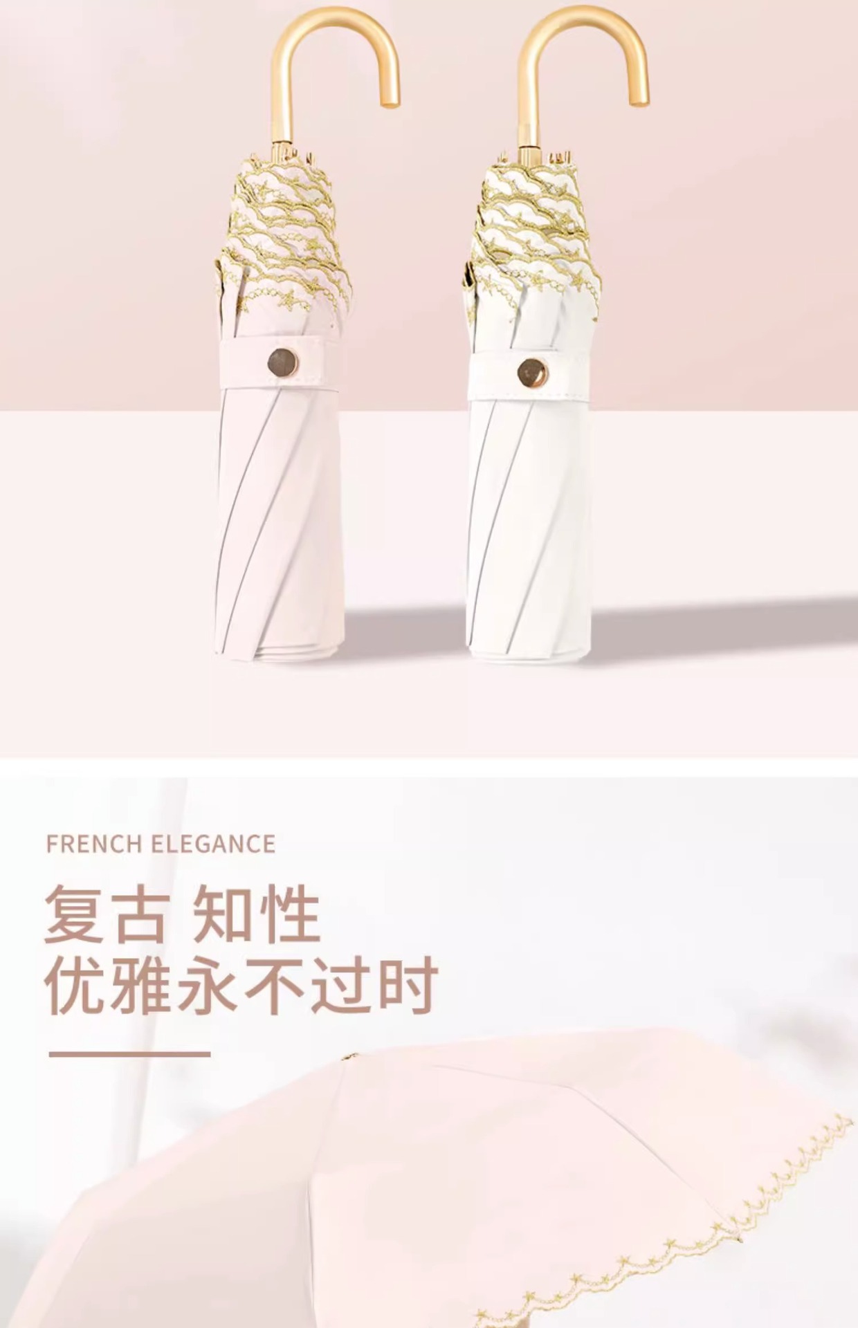 知伞刺绣太阳伞女防晒防紫外线晴雨两用弯钩雨伞折叠伞高级感遮阳