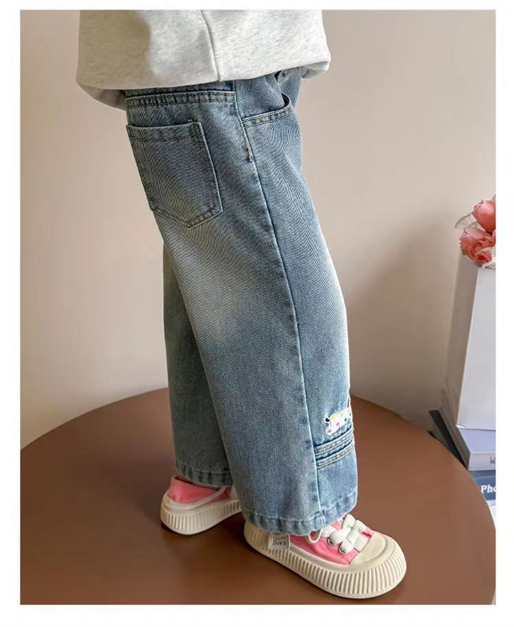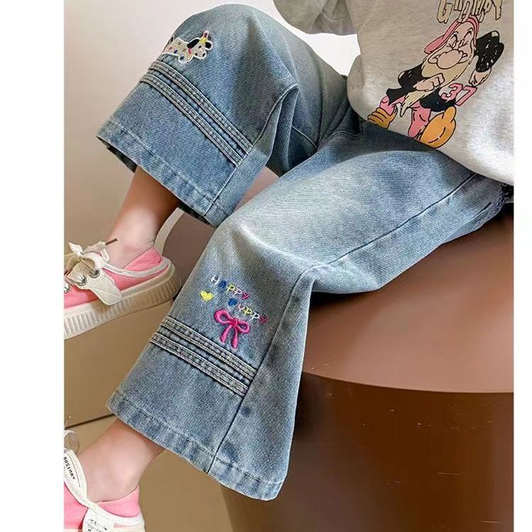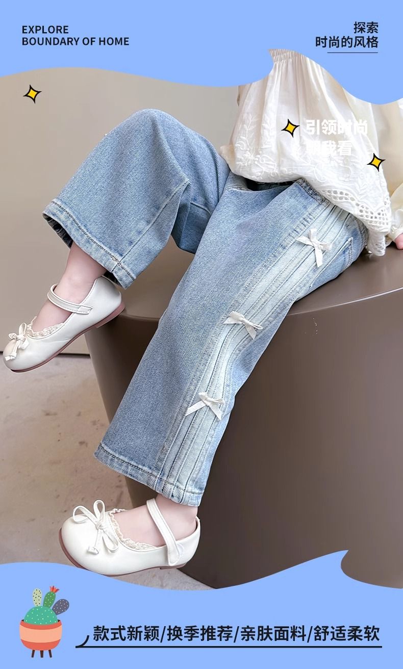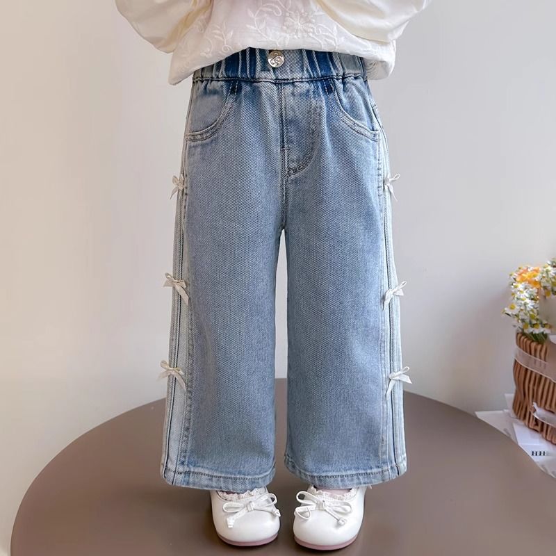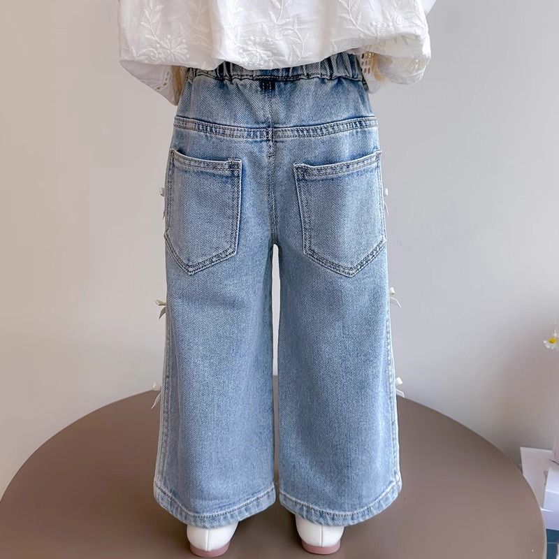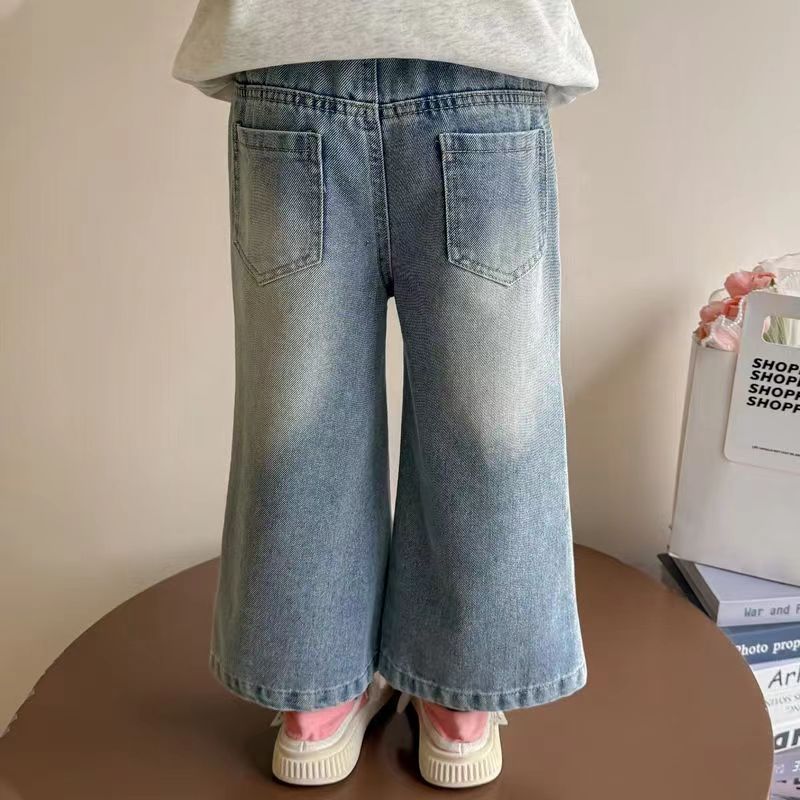 女宝宝春款牛仔裤儿童时髦洋气阔腿裤2025新款裤子女童休闲直筒裤