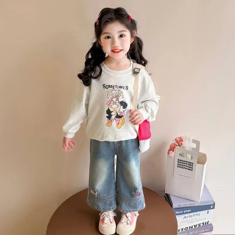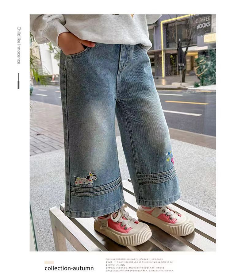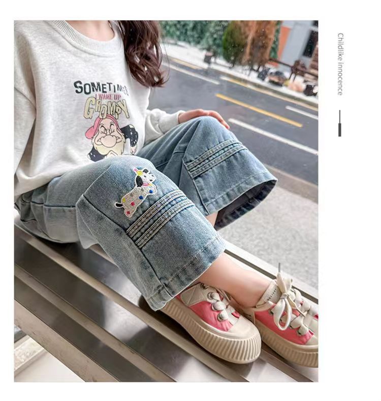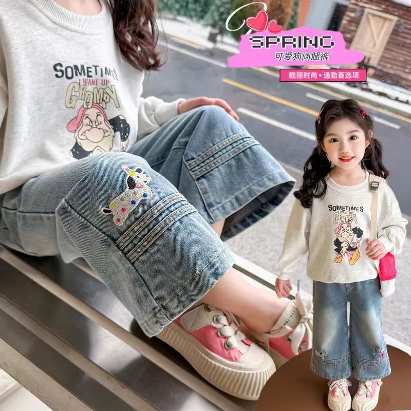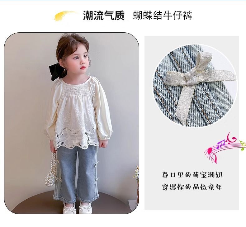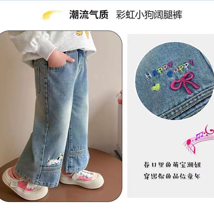 女宝宝春款牛仔裤儿童时髦洋气阔腿裤2025新款裤子女童休闲直筒裤