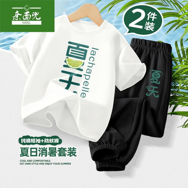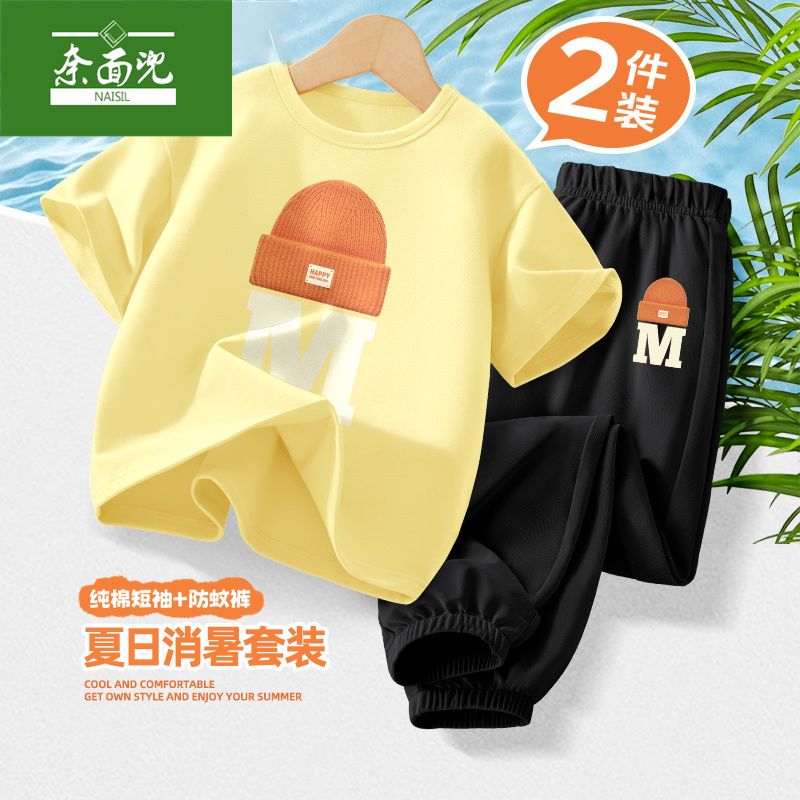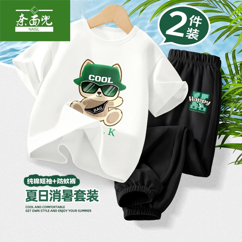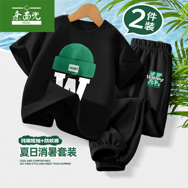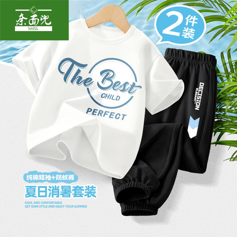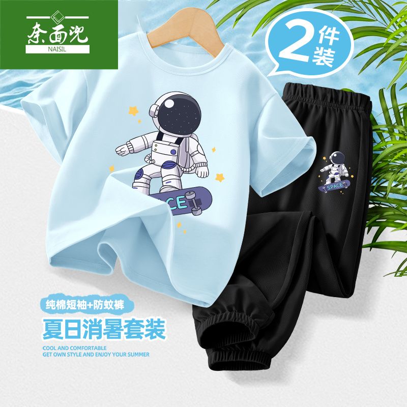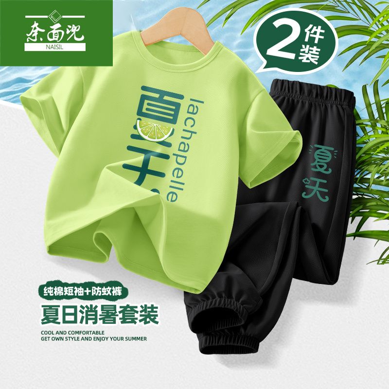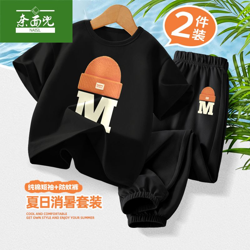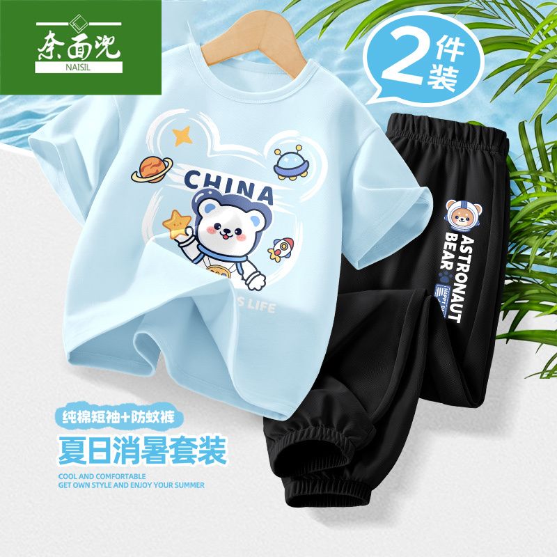 男童短袖t恤纯棉2024新款夏装中大童半袖上衣儿童夏季防蚊裤套装