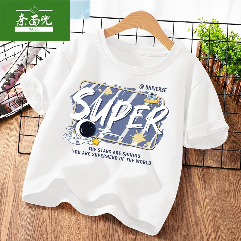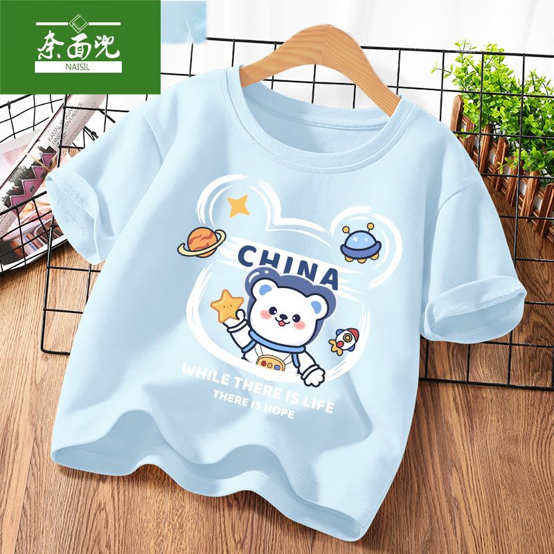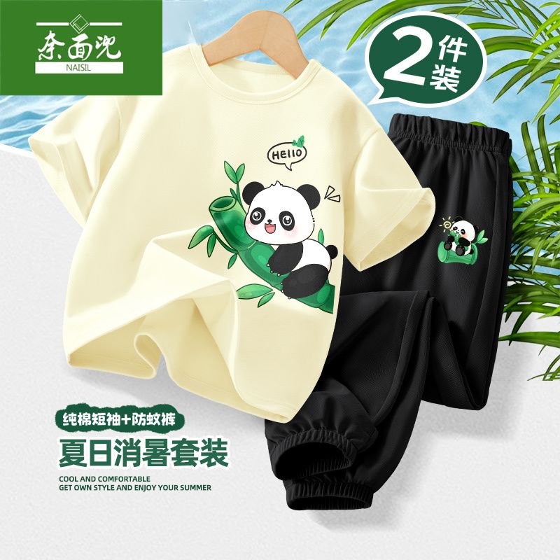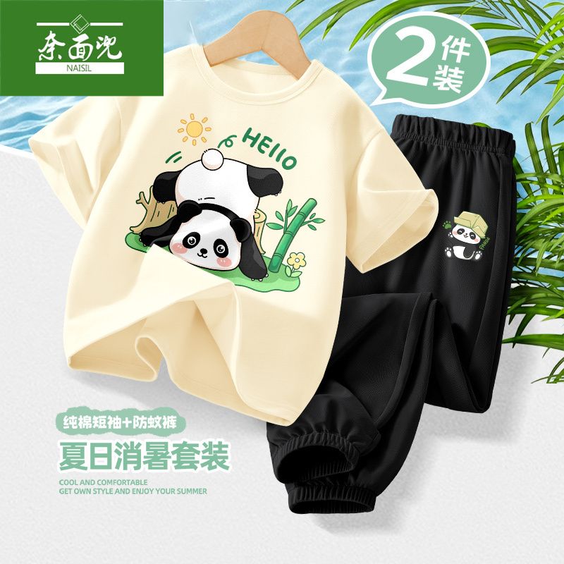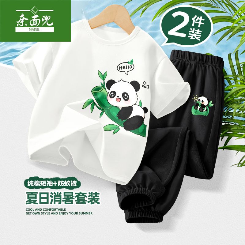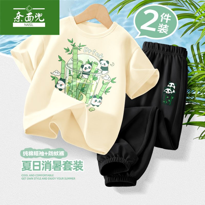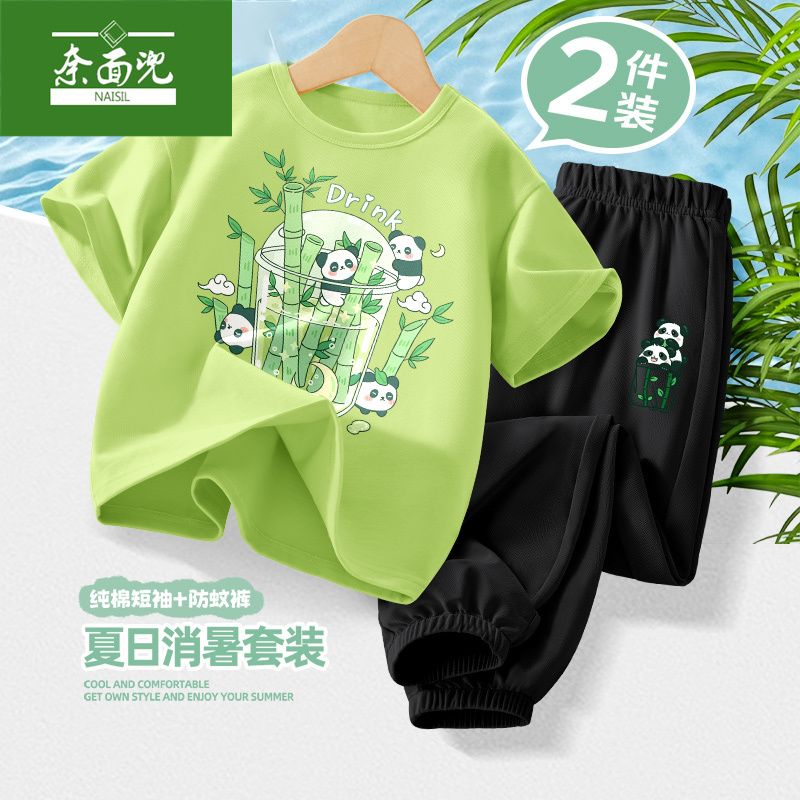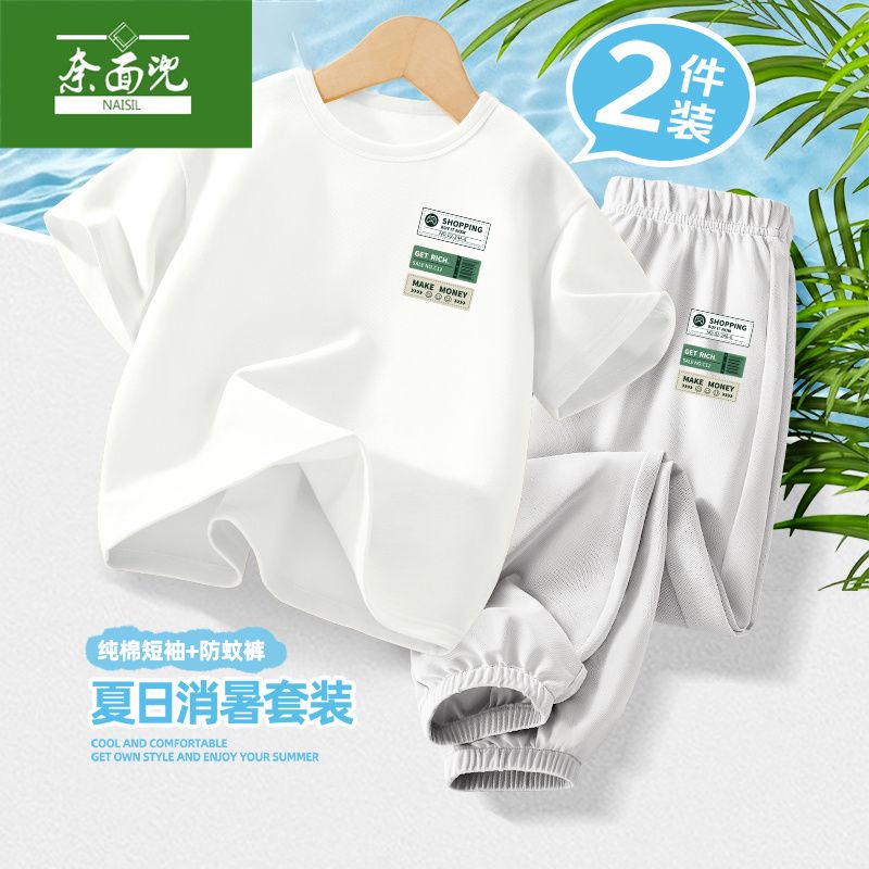 男童短袖t恤纯棉2024新款夏装中大童半袖上衣儿童夏季防蚊裤套装