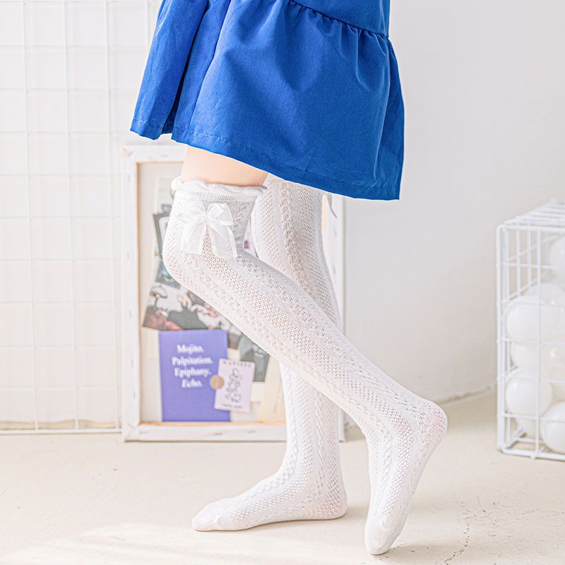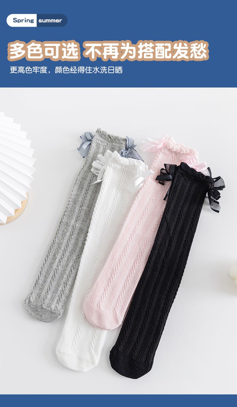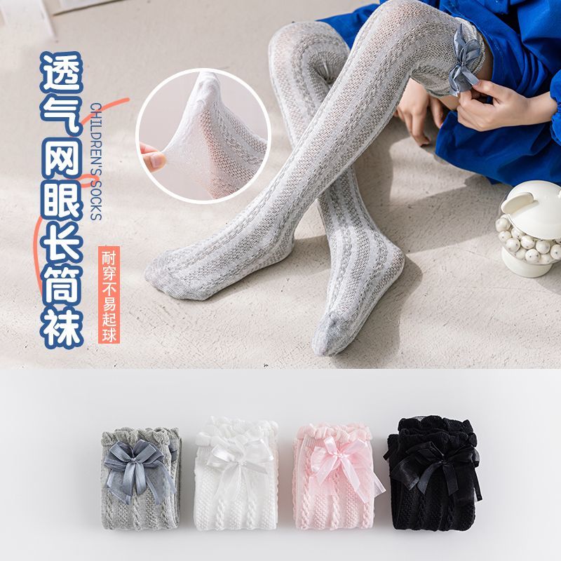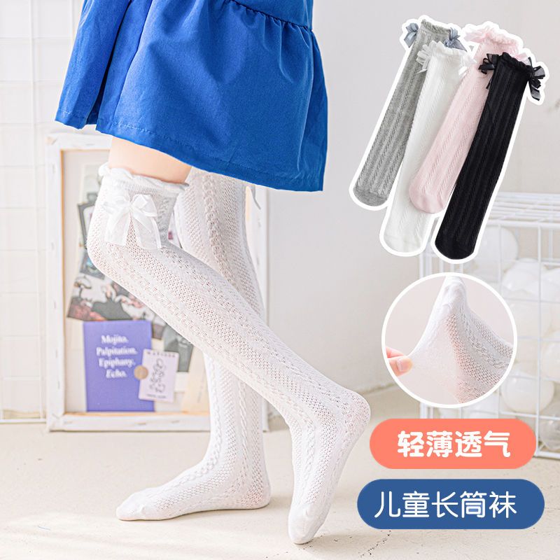女童袜子长筒袜夏季薄款宝宝洛丽塔蝴蝶结公主女孩儿童过膝高筒袜
