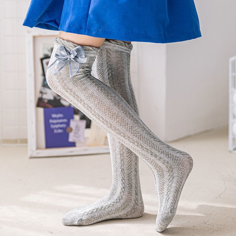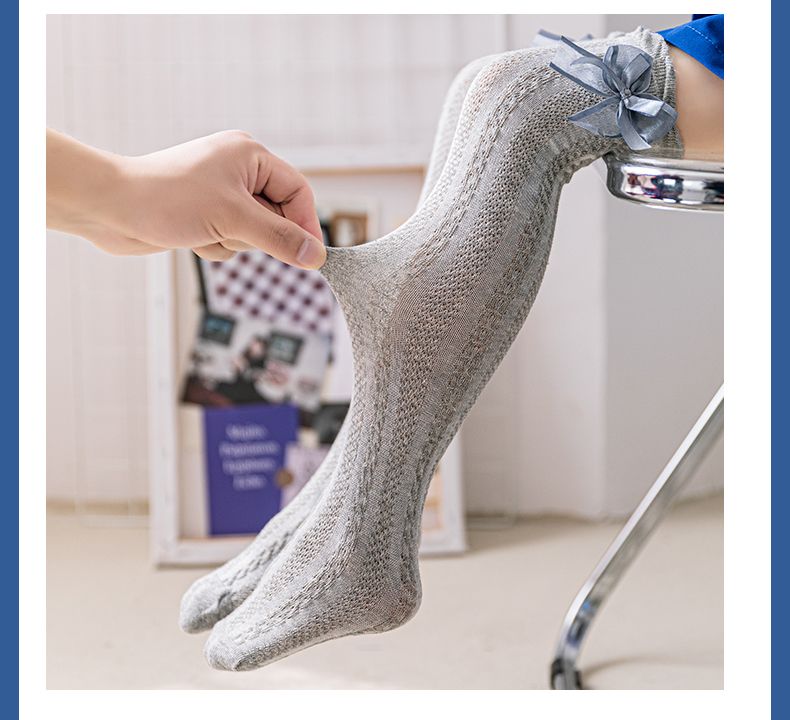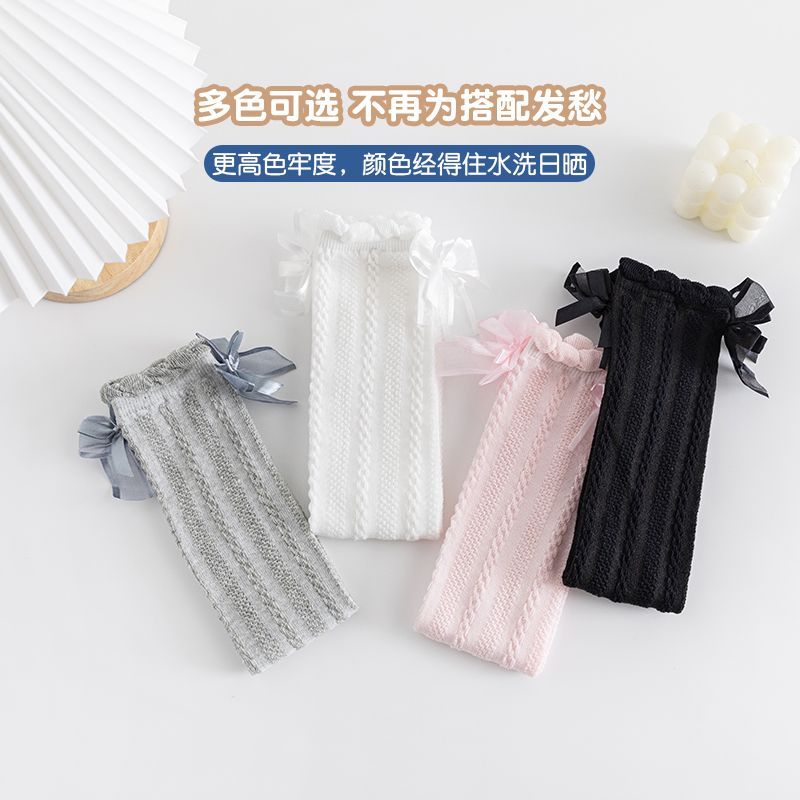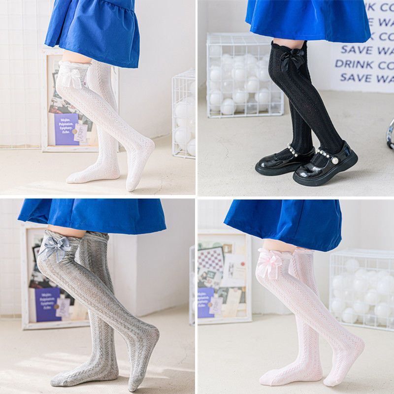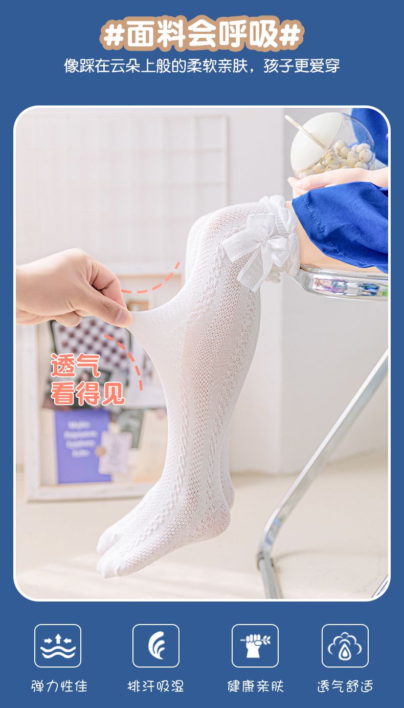 女童袜子长筒袜夏季薄款宝宝洛丽塔蝴蝶结公主女孩儿童过膝高筒袜