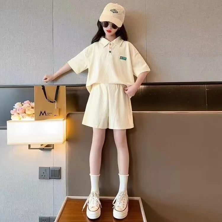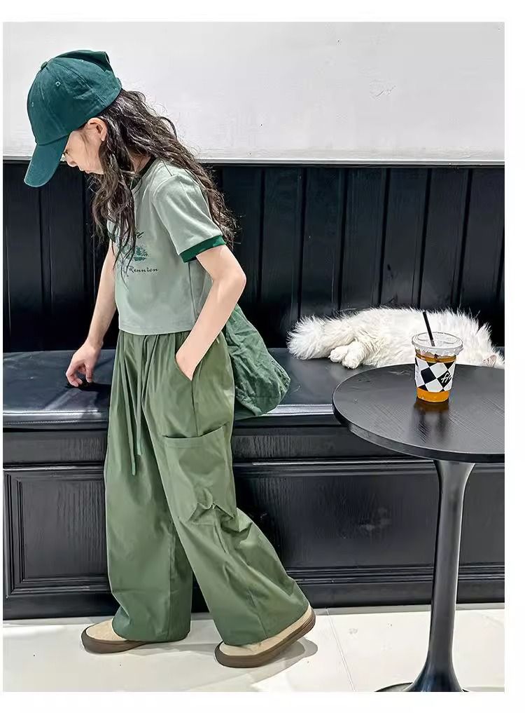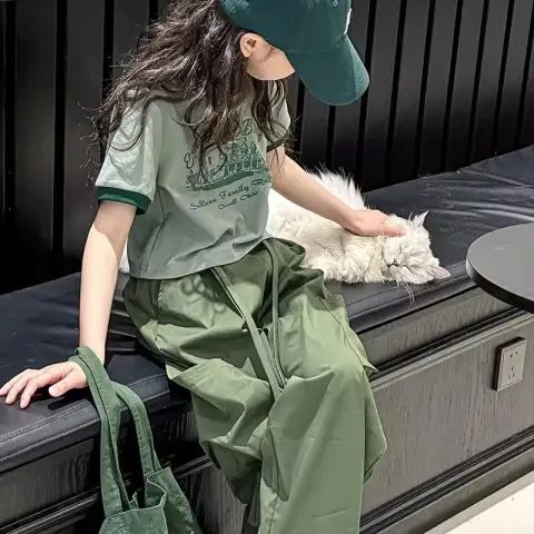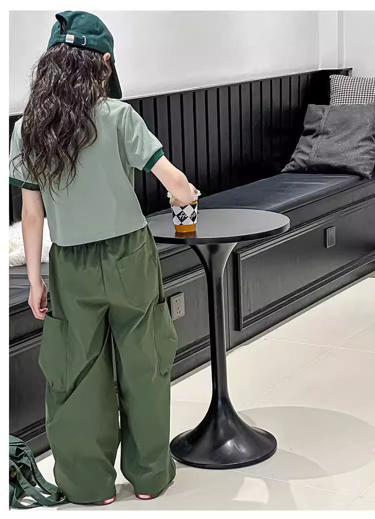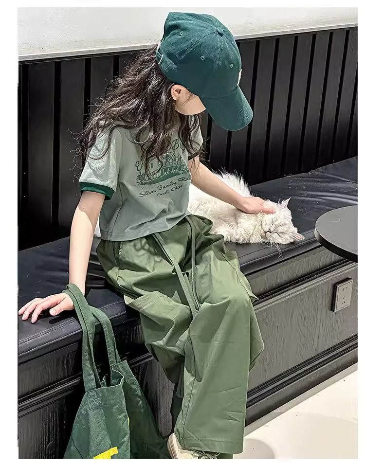 女童时髦韩系套装夏季新款中大儿童洋气T恤直筒工装裤时尚两件套