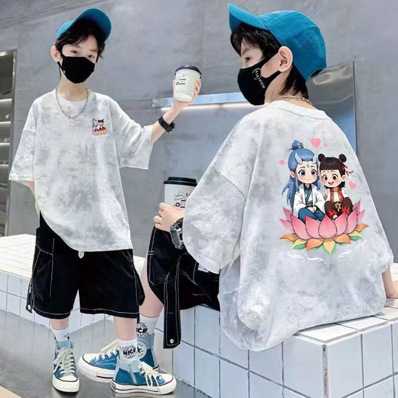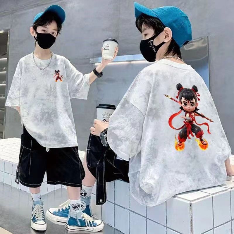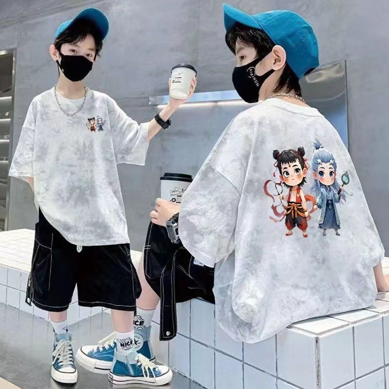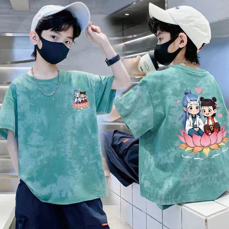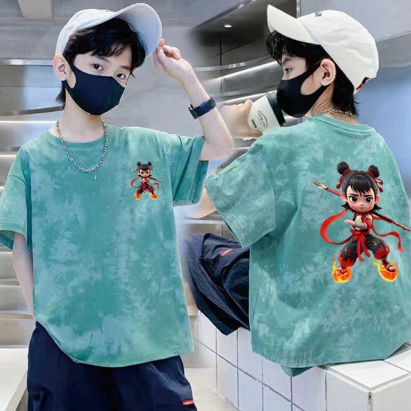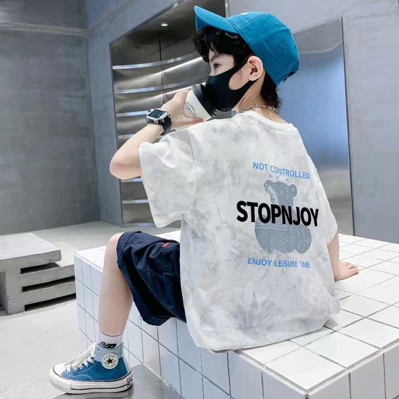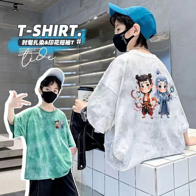儿童装男童夏装短袖T恤2025新款中大童纯棉扎染男孩夏季体恤t潮牌