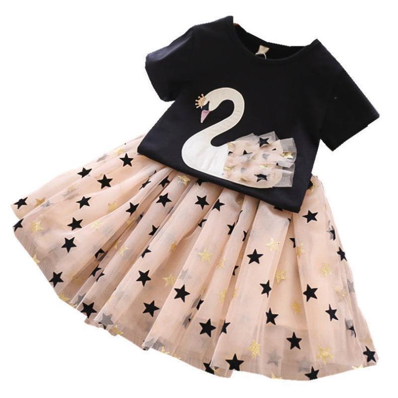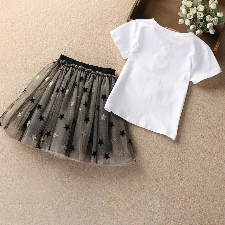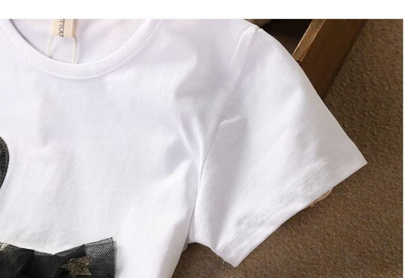 女童套装纯棉上衣中大童儿童短袖网纱裙T恤连衣裙夏季衣服两件套