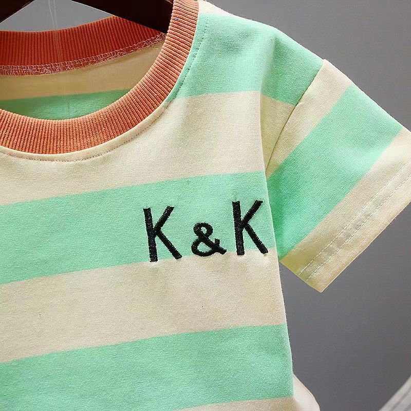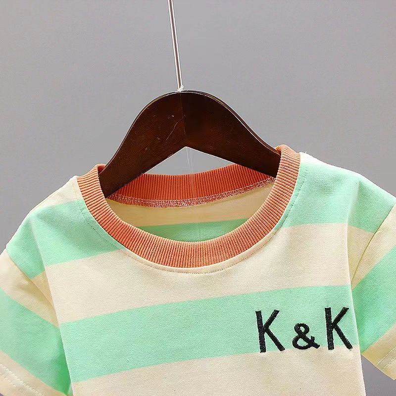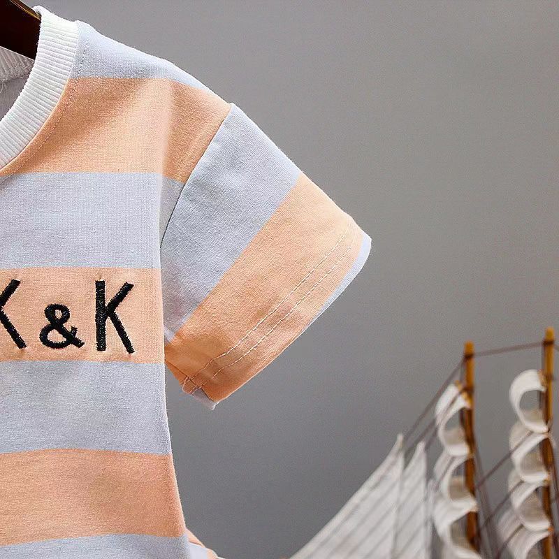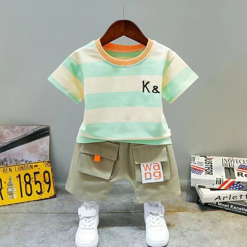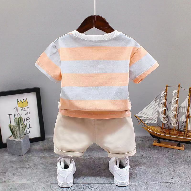 童装男宝宝夏装套装2023新款幼儿衣服洋气男童夏季条纹短袖两件套