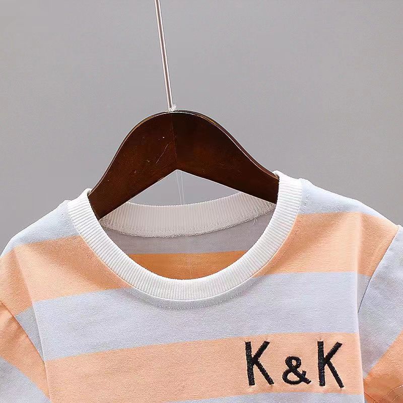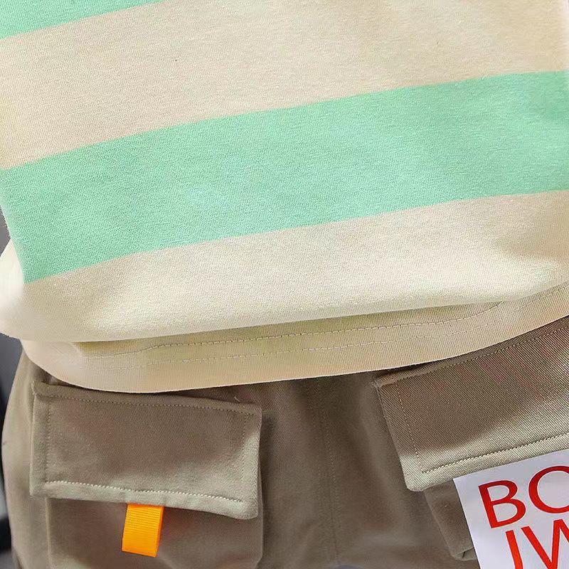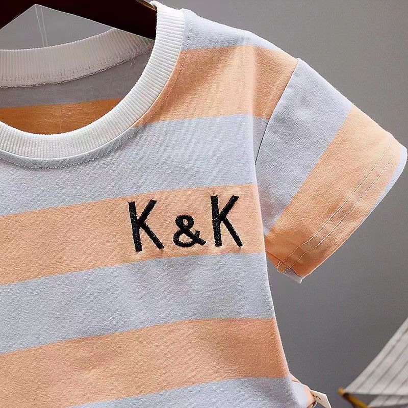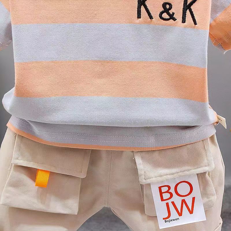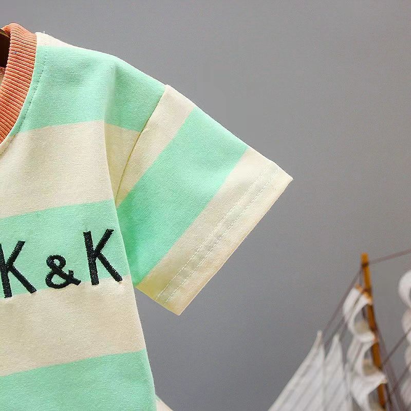 童装男宝宝夏装套装2023新款幼儿衣服洋气男童夏季条纹短袖两件套