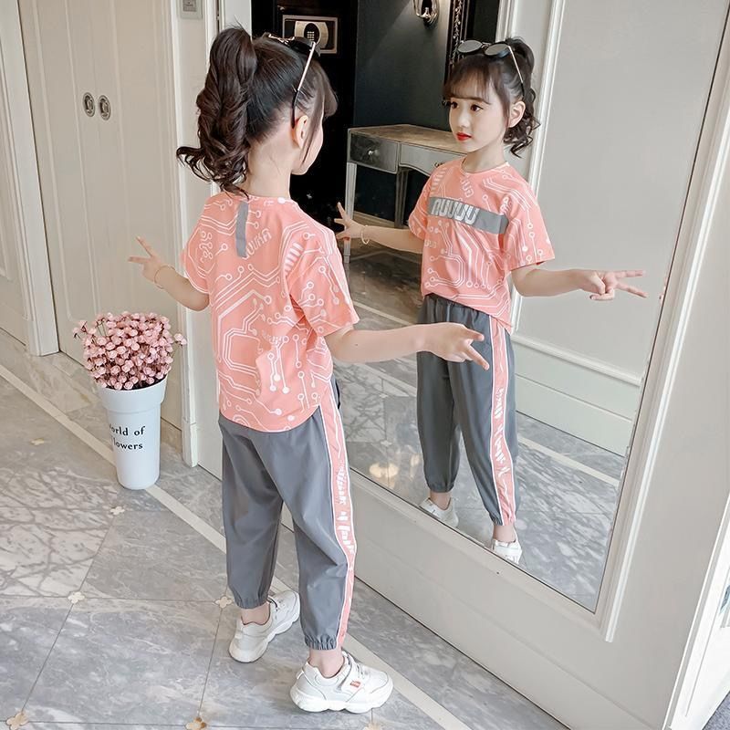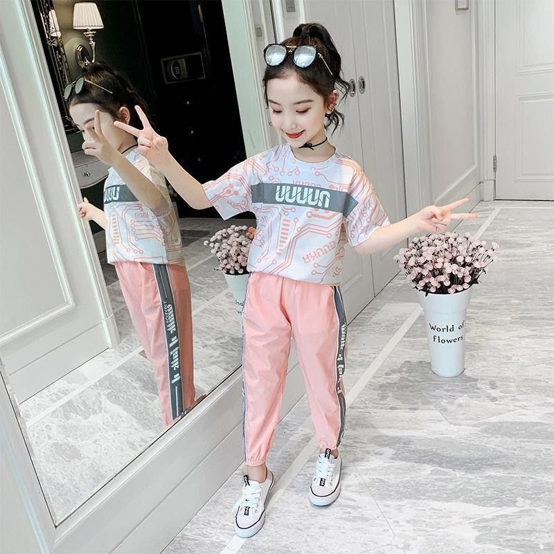 女童夏装套装2024新款儿童夏季运动大童装女孩韩版洋气时髦网红潮