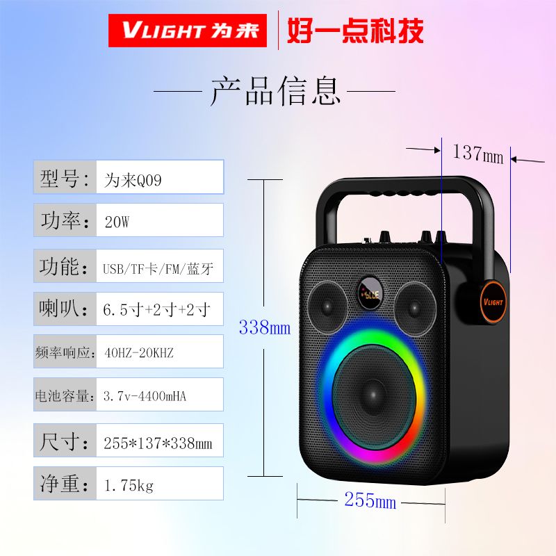 | q09 audio standard + dual microphone (rechargeable)(Q09音响标配+双话筒(充电款)) | USD $48.63 | 999999 piece available |