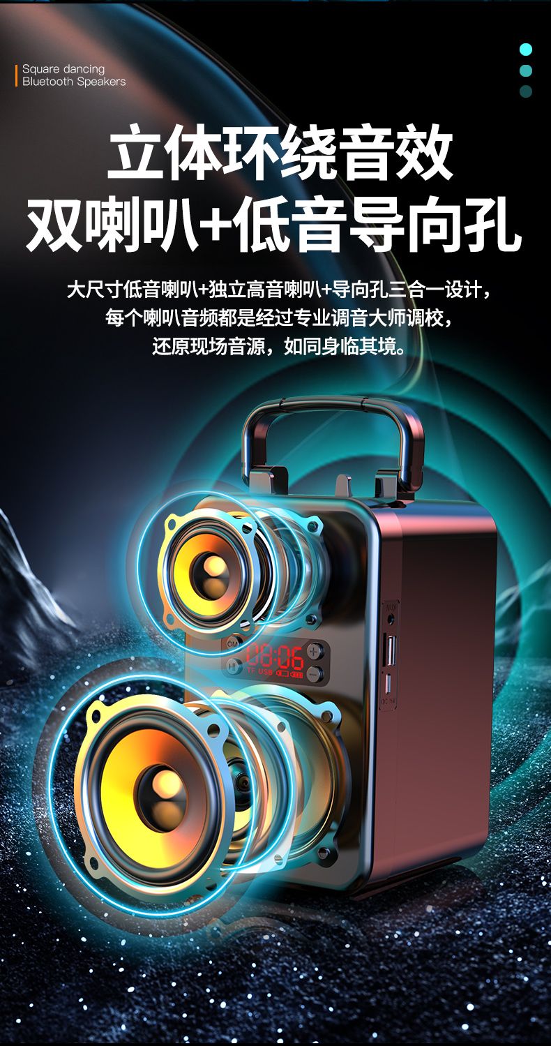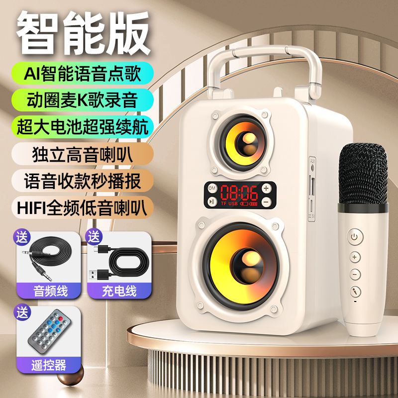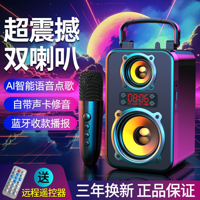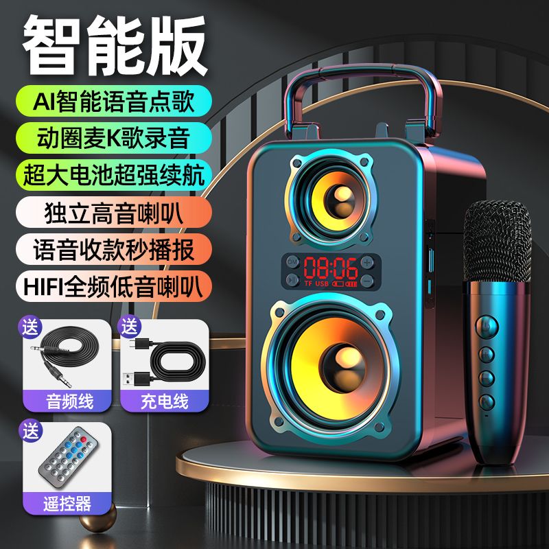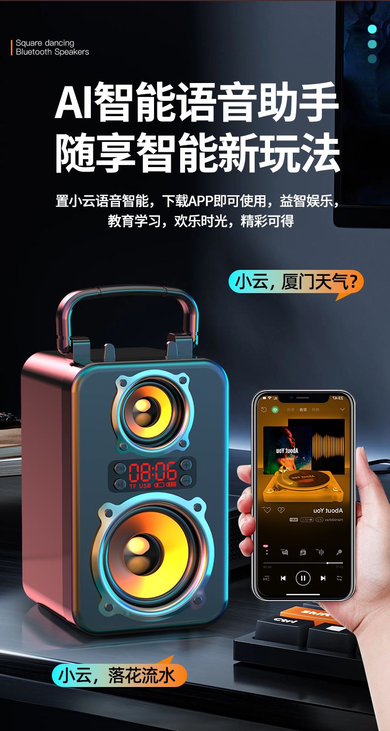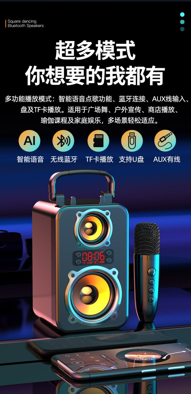 AI智能广场舞大音量蓝牙音箱户外K歌低音炮家用双喇叭立体声音响