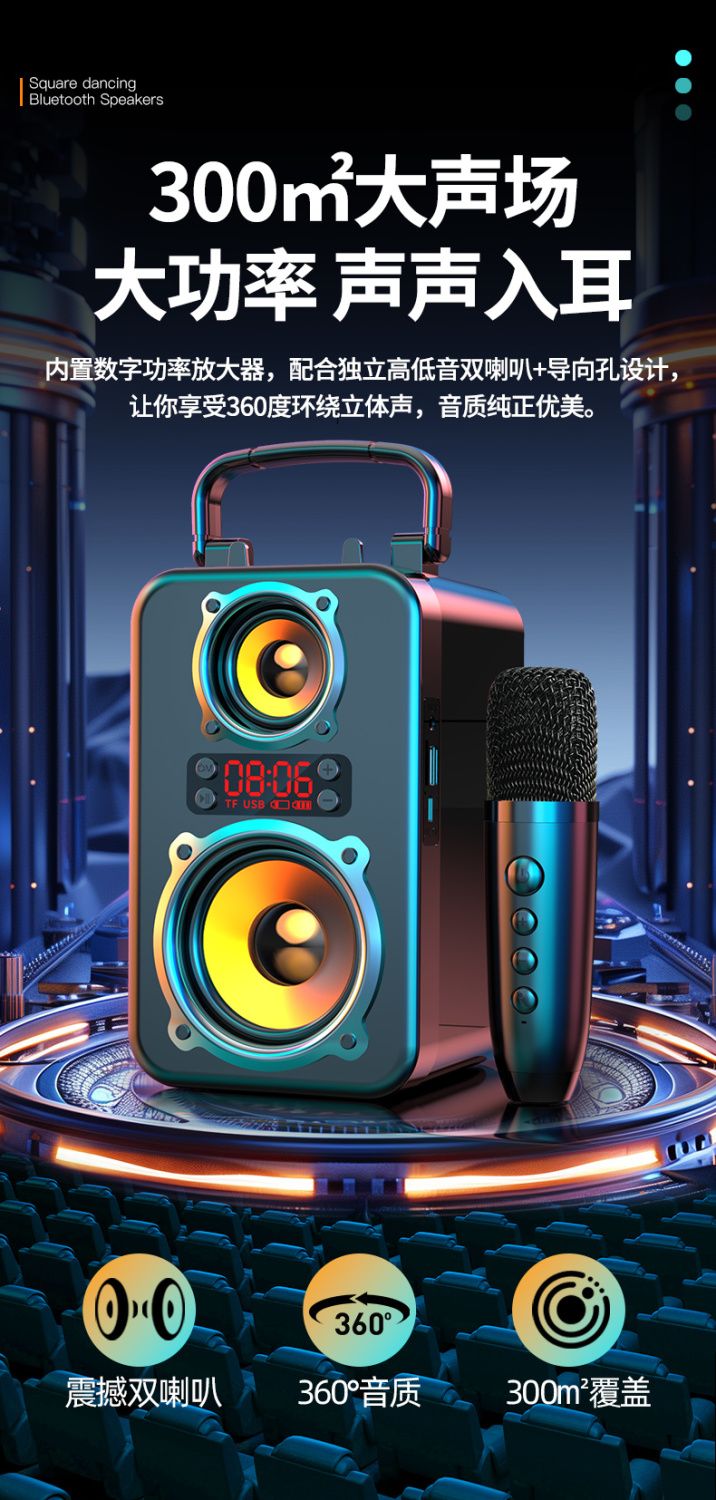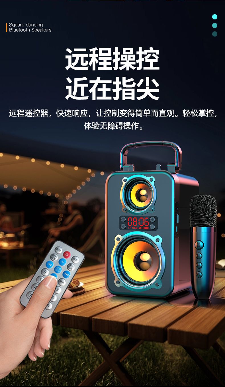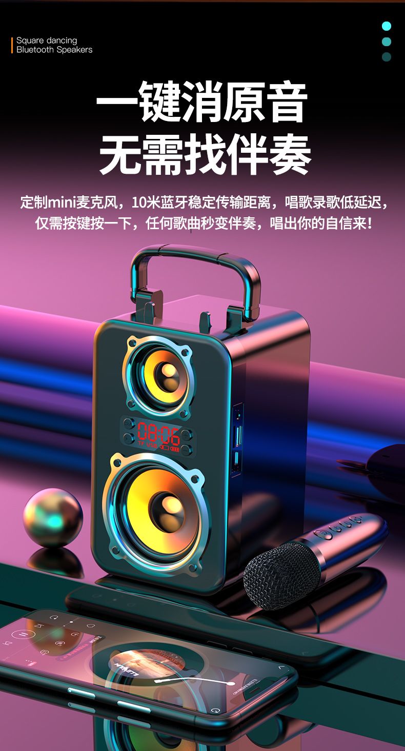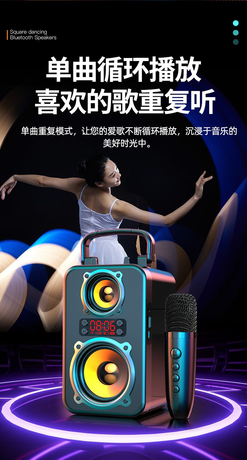 | smart version: square-level shock bass + wireless microphone + voice song(智能版:广场级震撼重低音+无线话筒+语音点歌) | USD $22.2 | 999999 piece available |