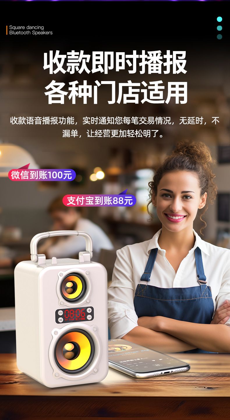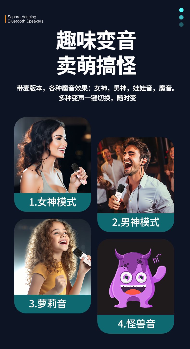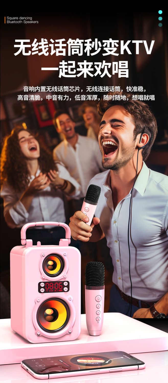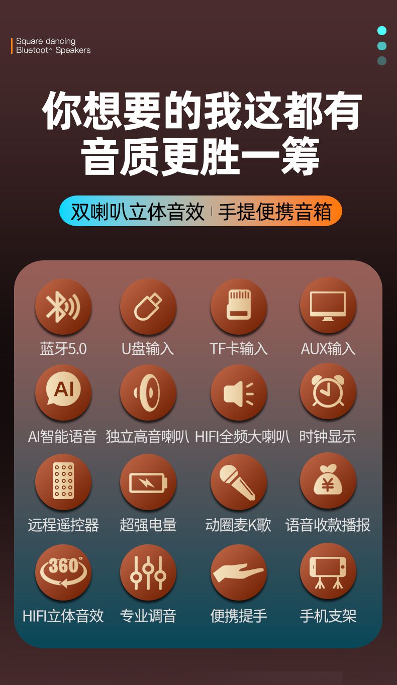 | smart version: square-level shock bass + wireless microphone + voice song(智能版:广场级震撼重低音+无线话筒+语音点歌) | USD $22.2 | 999999 piece available |