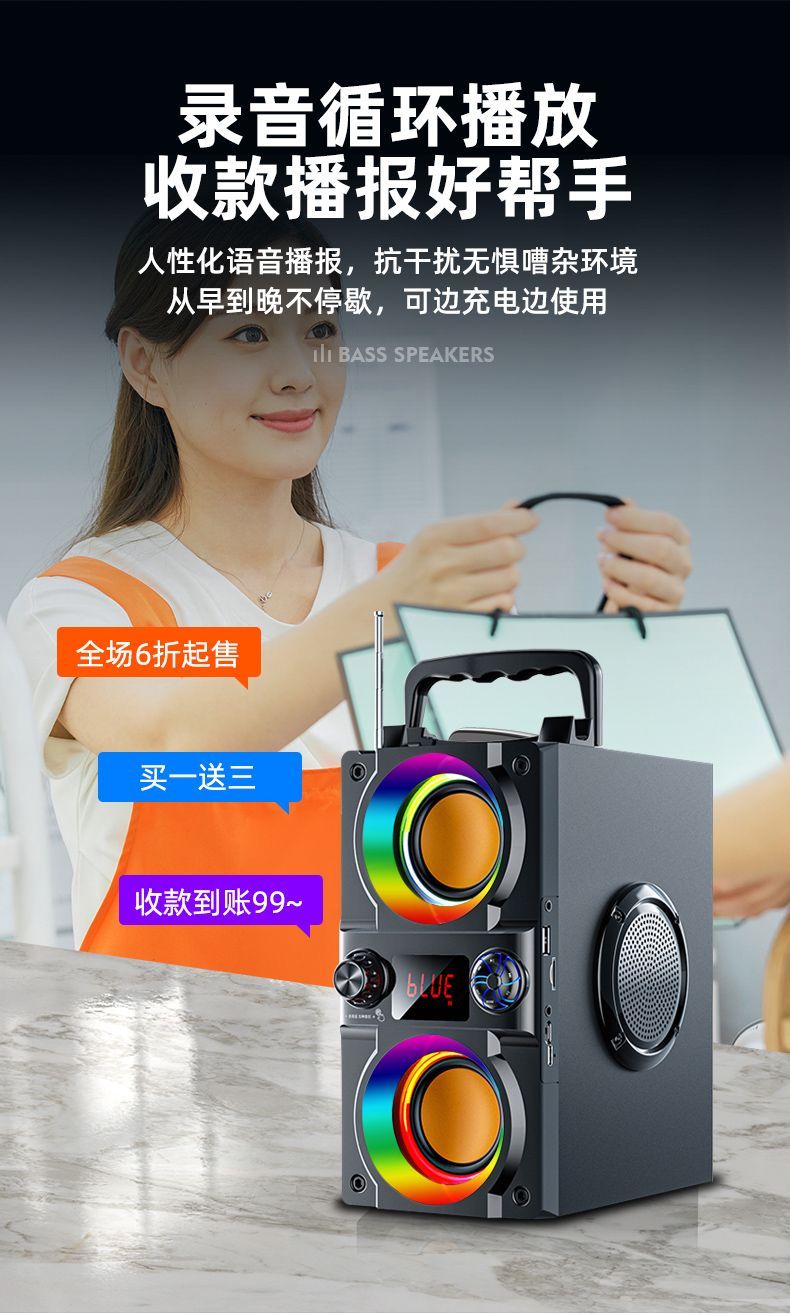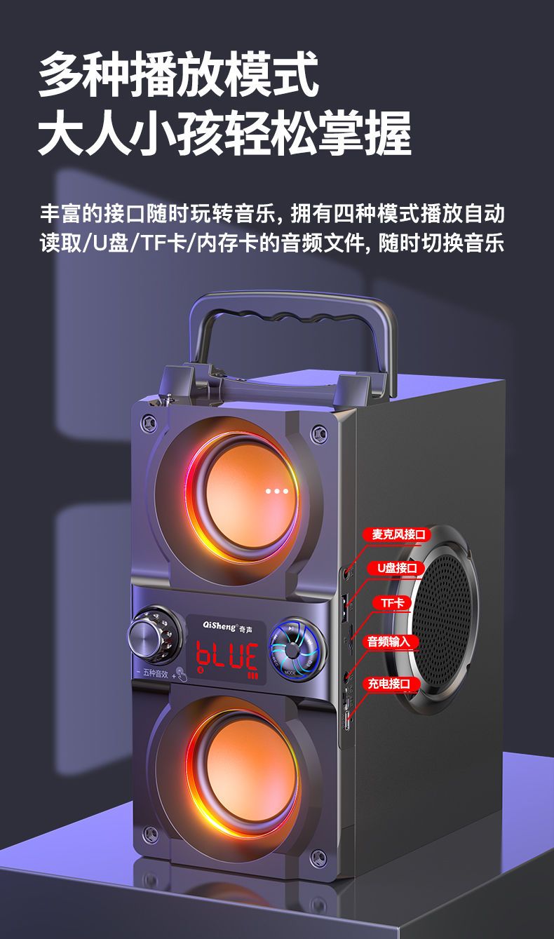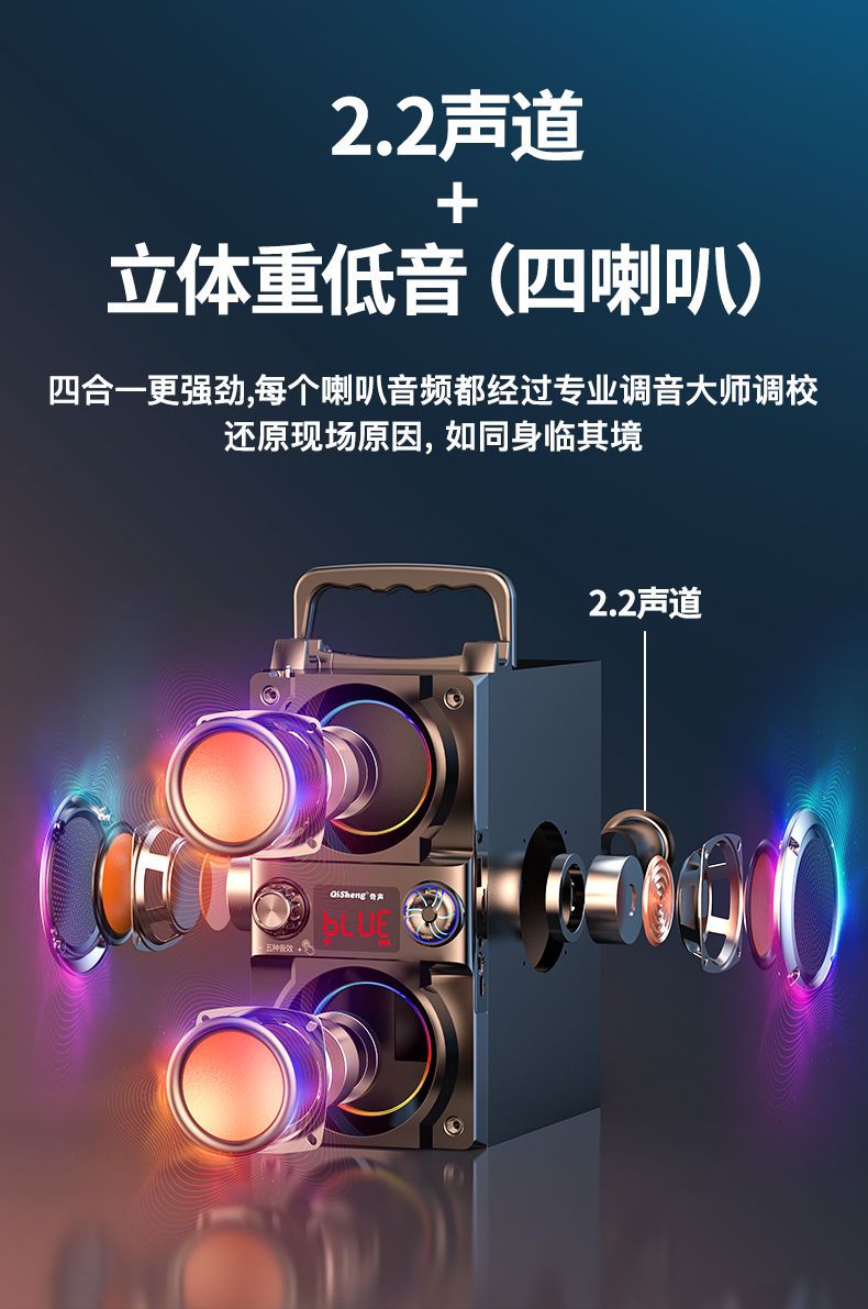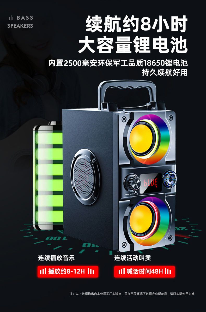 双炮王蓝牙音响大音量音箱家用户外小型便携式3d环绕无线重低音炮