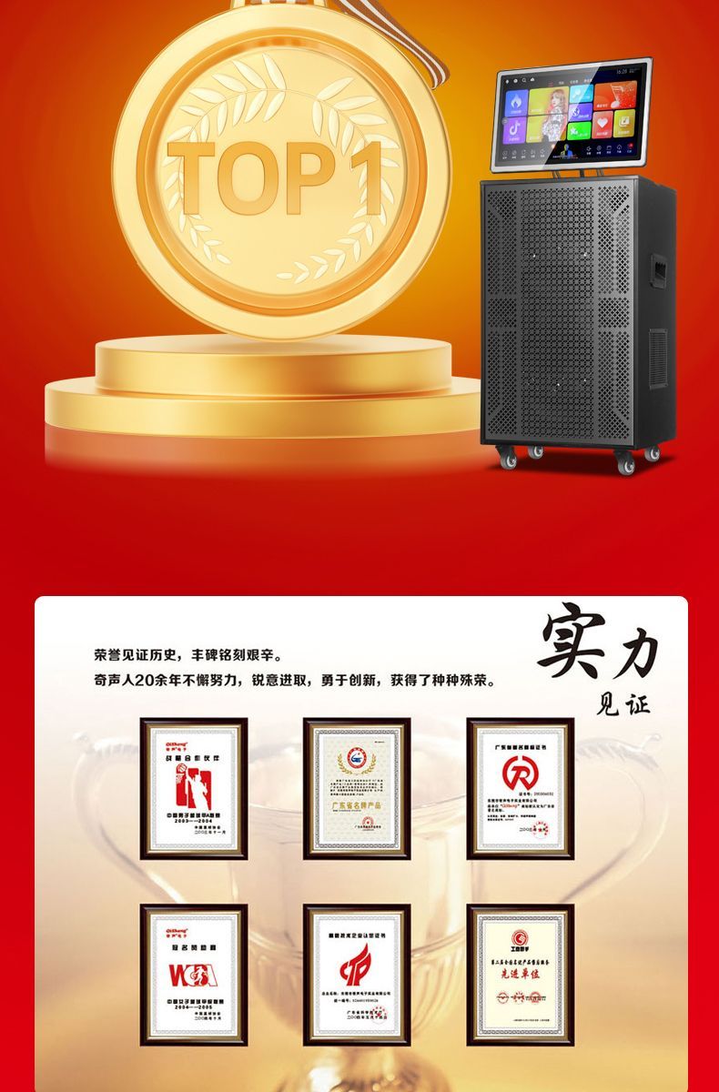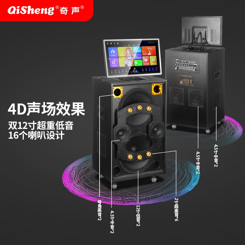奇声广场舞音响户外带蓝牙大音量ktv家用唱歌机k歌显示屏卡拉OK