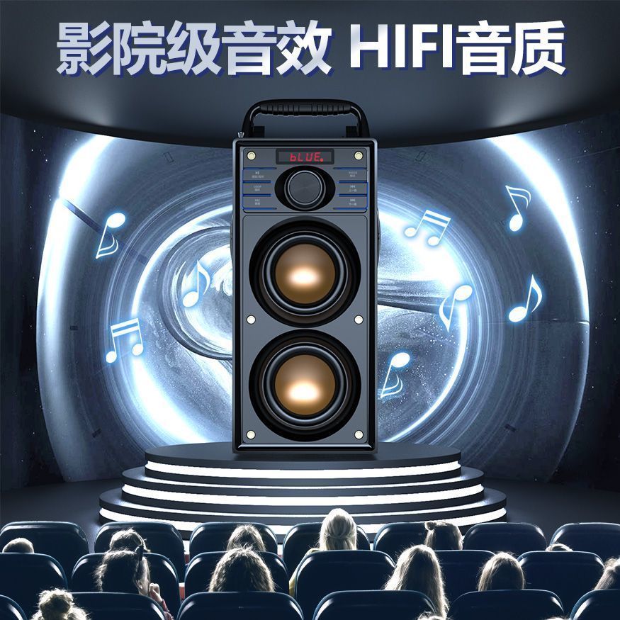 低音炮音箱蓝牙音响家庭桌面小钢炮麦克风唱歌话筒户外便携收音机