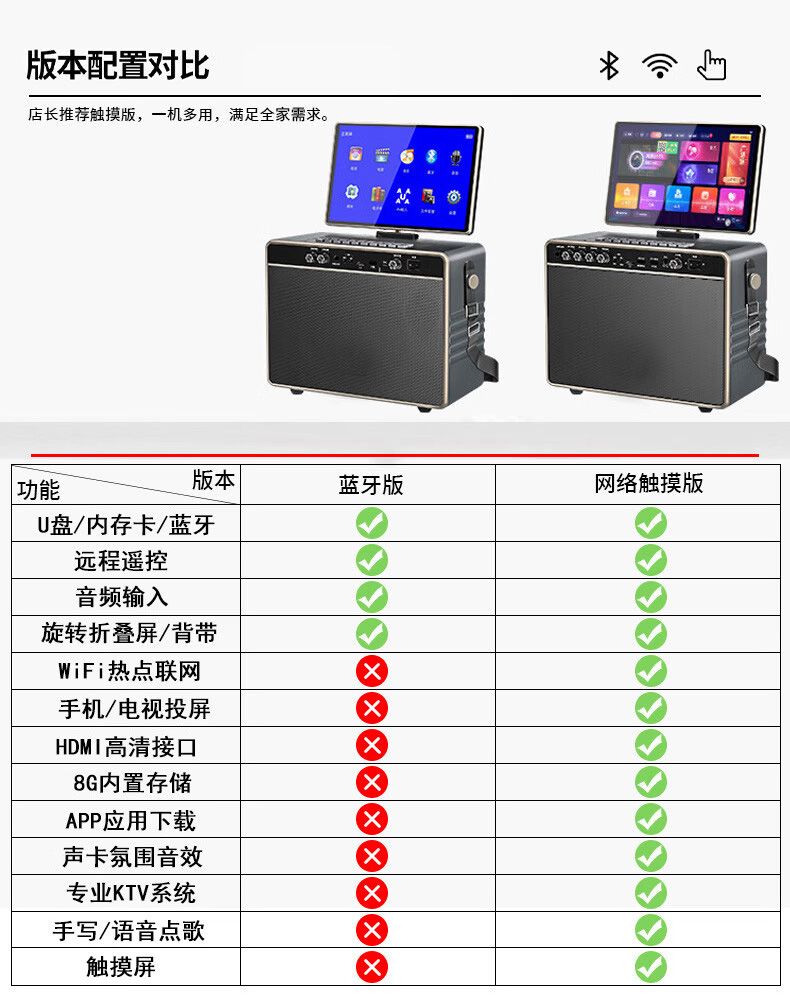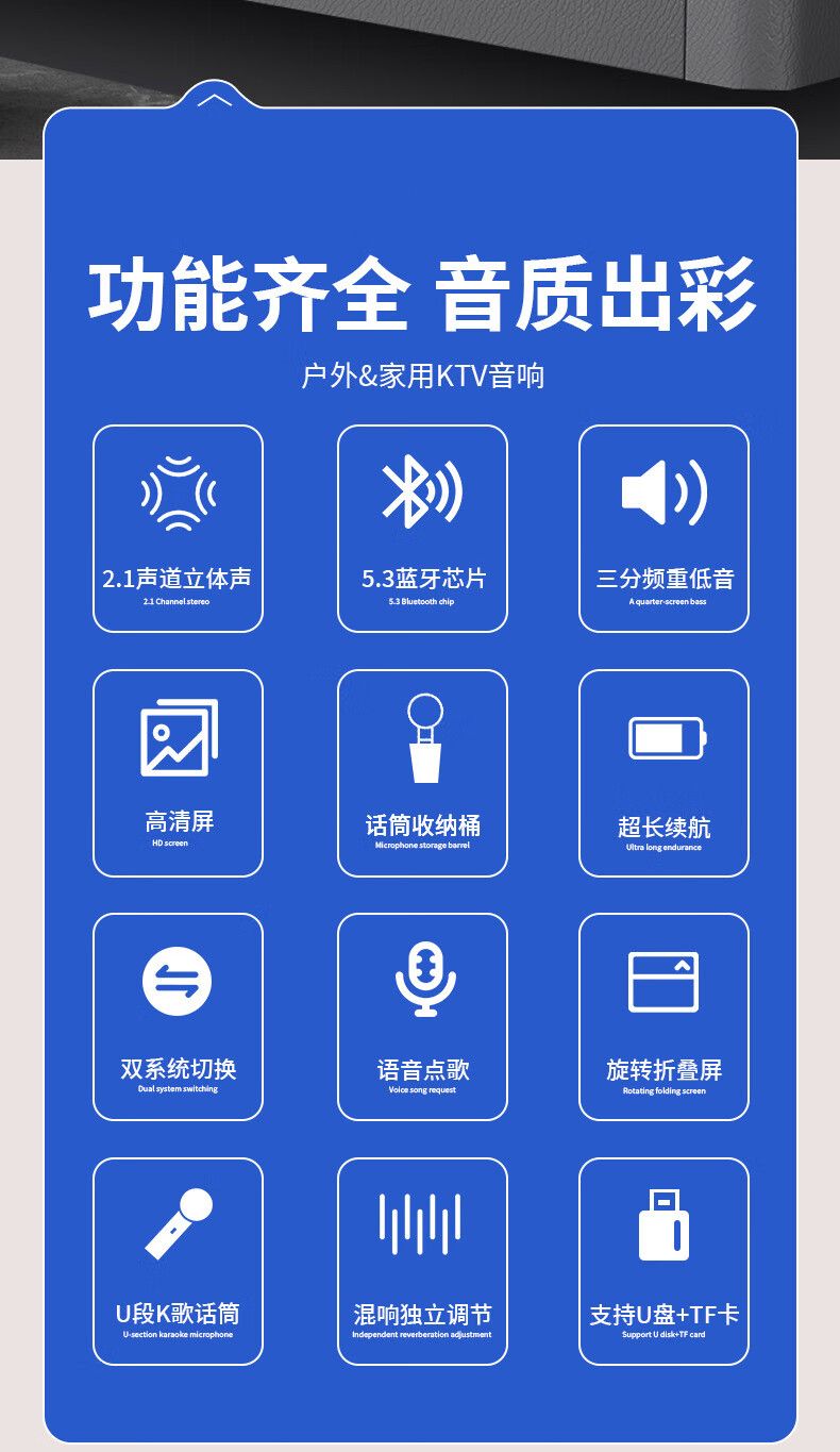 | 20-inch singing bluetooth version + single microphone +32g usb flash drive(20寸唱歌蓝牙版+单话筒+32G优盘) | USD $104.26 | 999999 piece available |
