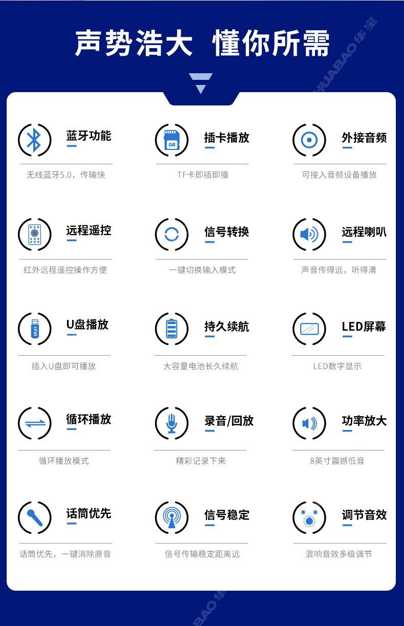 华宝广场舞音响大音量无线蓝牙音箱户外拉杆k歌家用叫卖便携音响