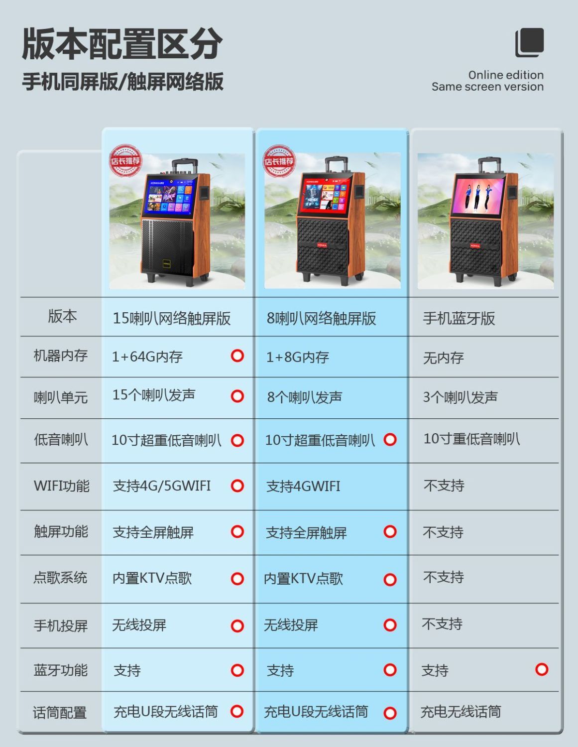 | 8 speaker voice touch screen version +2 pcs rechargeable microphone +64g usb flash drive(8喇叭语音触屏版+2支充电话筒+64G优盘) | USD $307.26 | 999999 piece available |