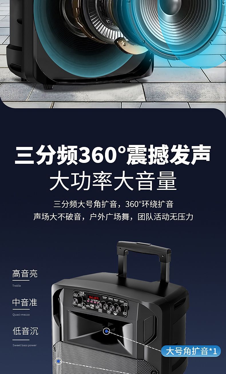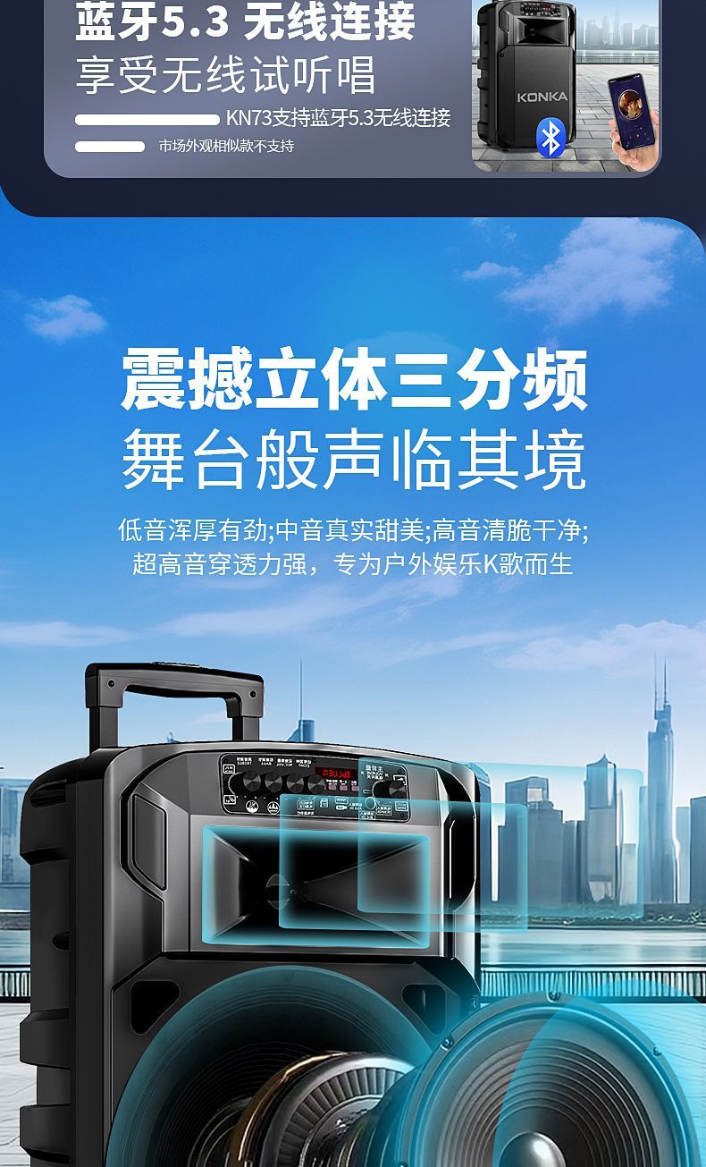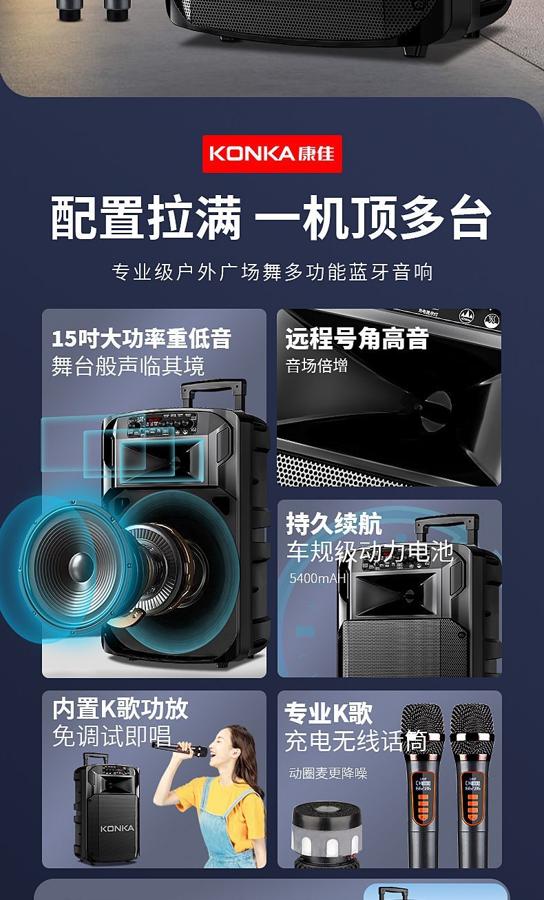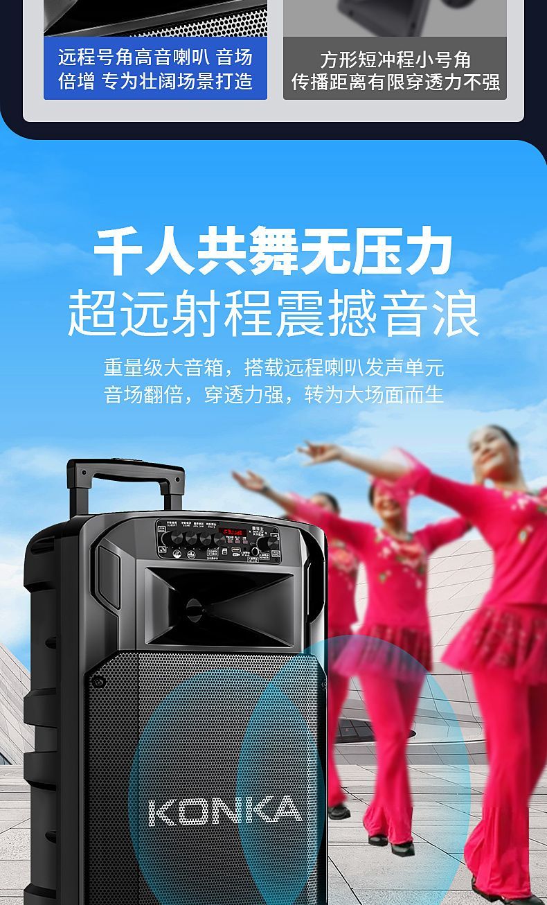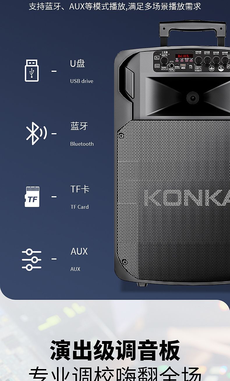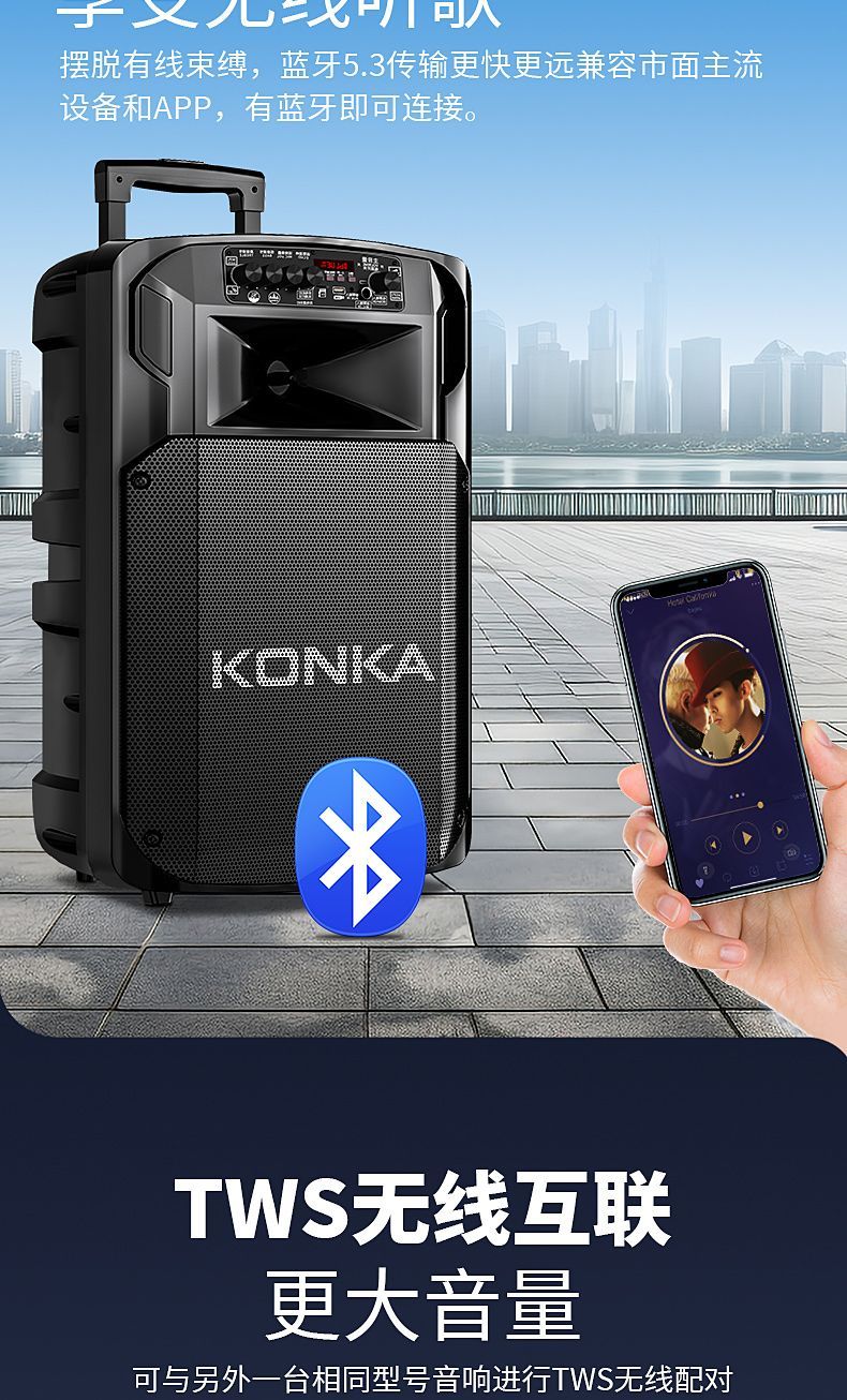 康佳拉杆广场音响大音量便携式低音炮户外蓝牙无线音箱家用大功率