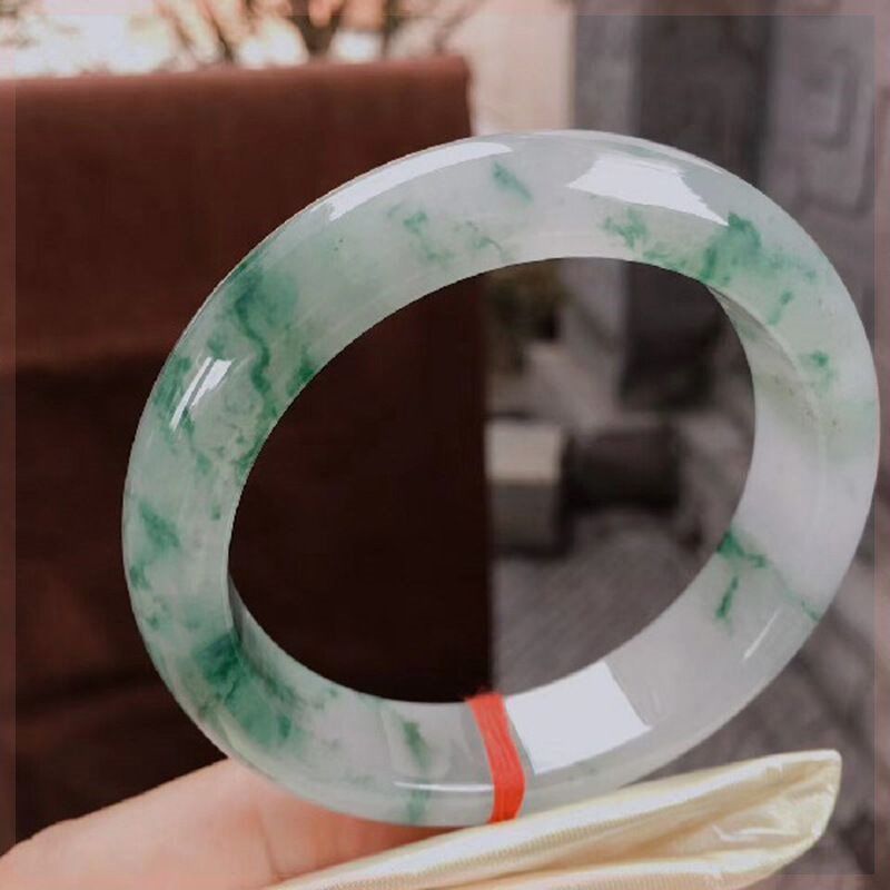 【正品真玉】翡翠手镯冰糯飘花正圈女士玉手镯玉镯子玉石真货送礼
