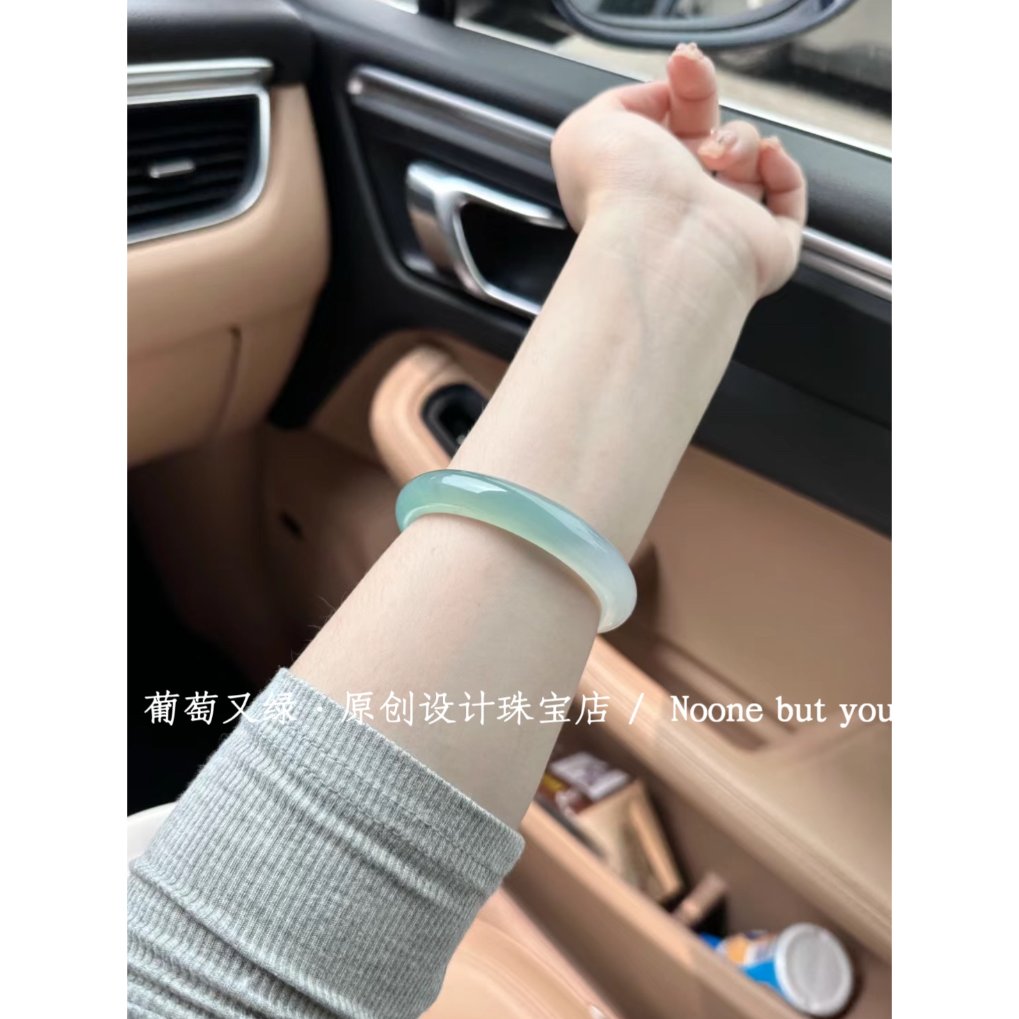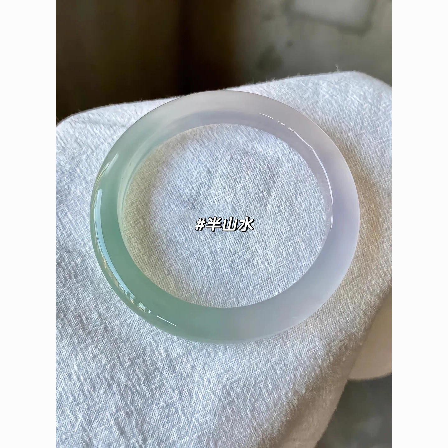玉手镯高冰半山水手镯渐变青玉镯子油青色翡翠色手镯女送女友礼物