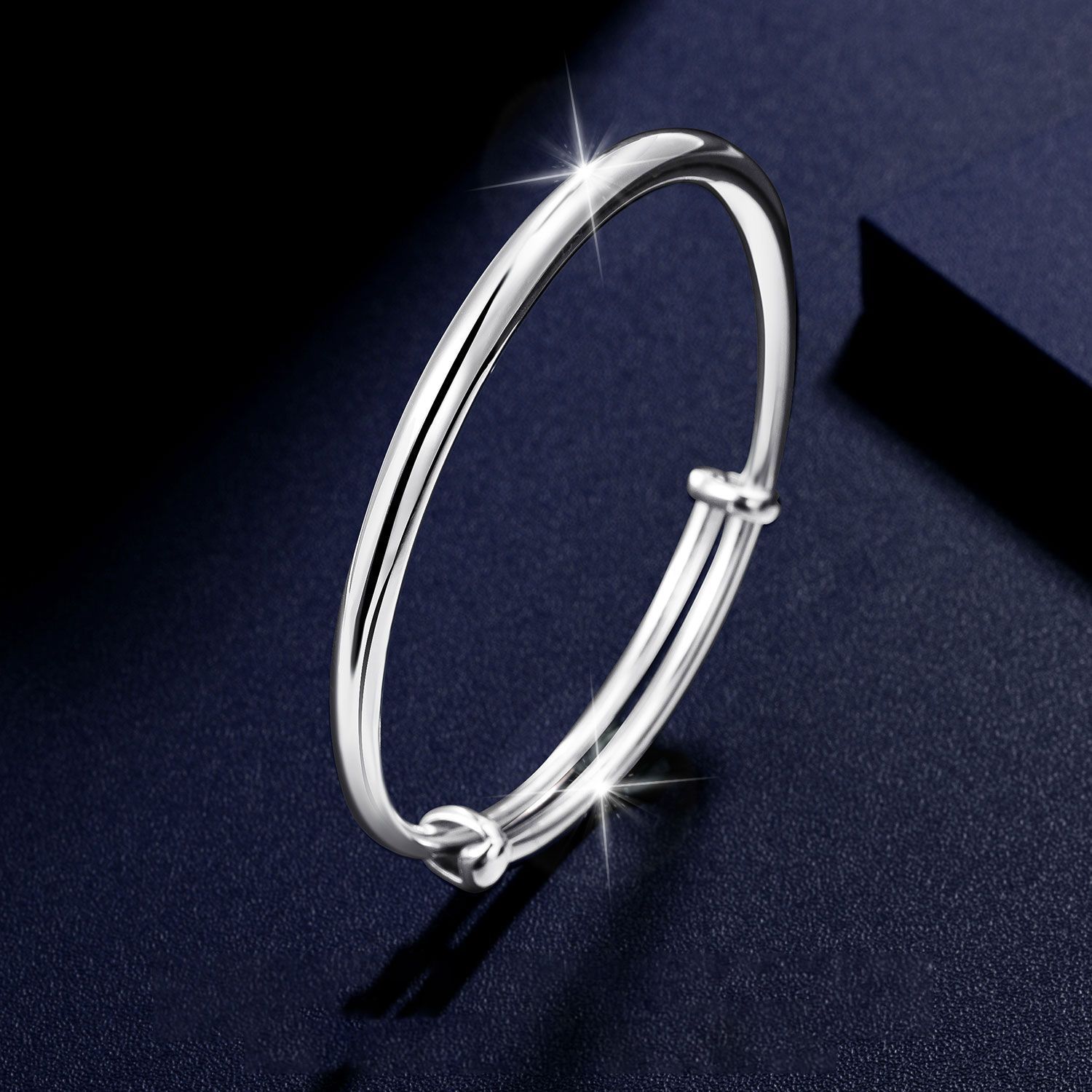 爆款正品pt950铂金光面推拉手镯女款素圈实心调节520送老婆女友