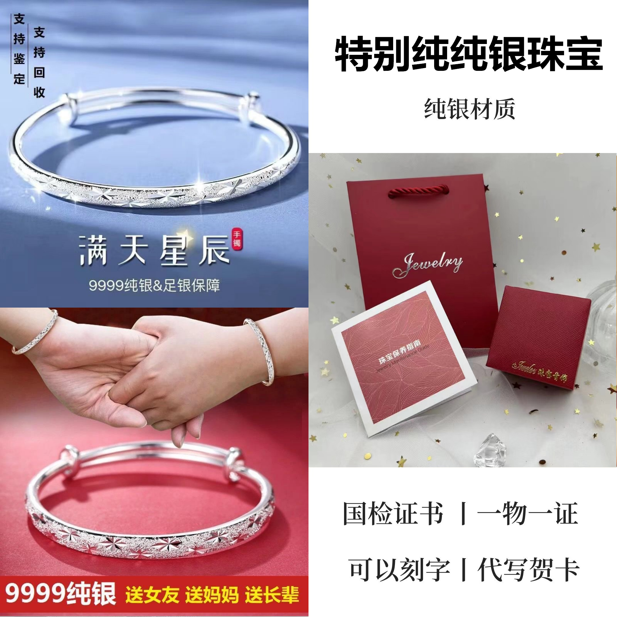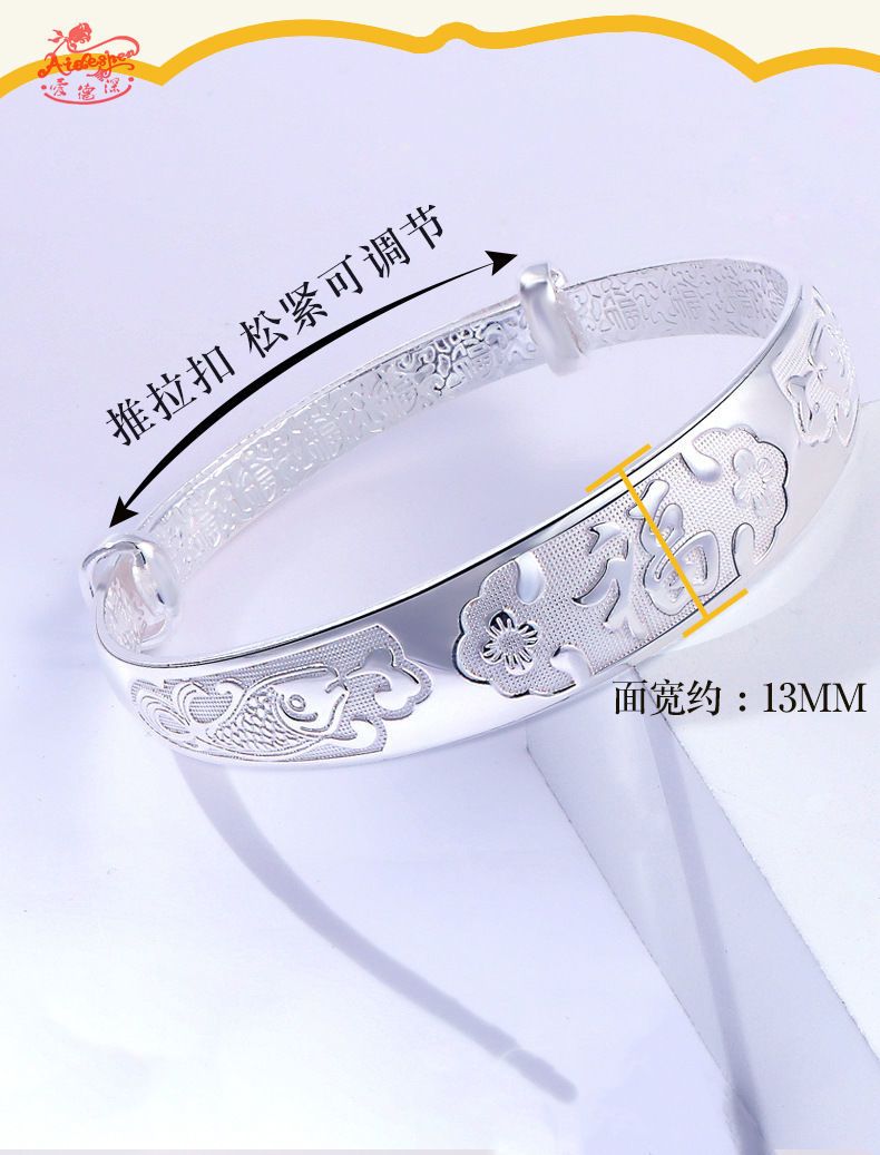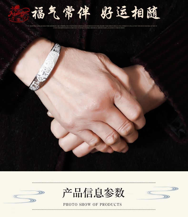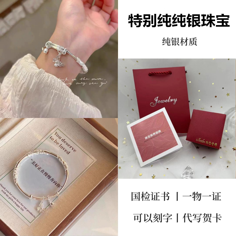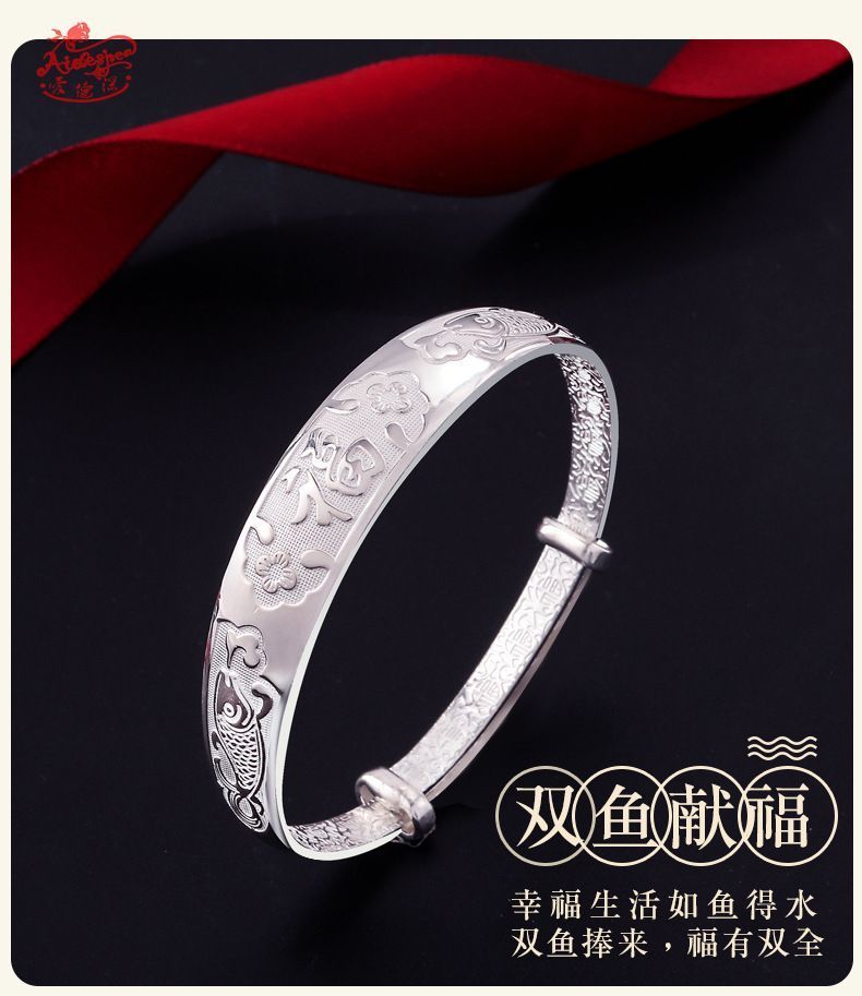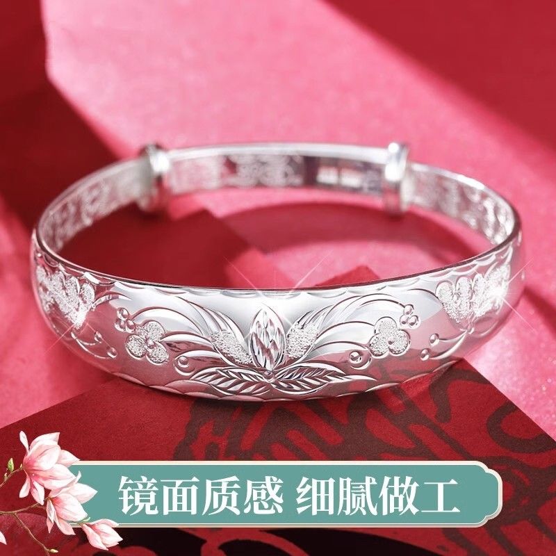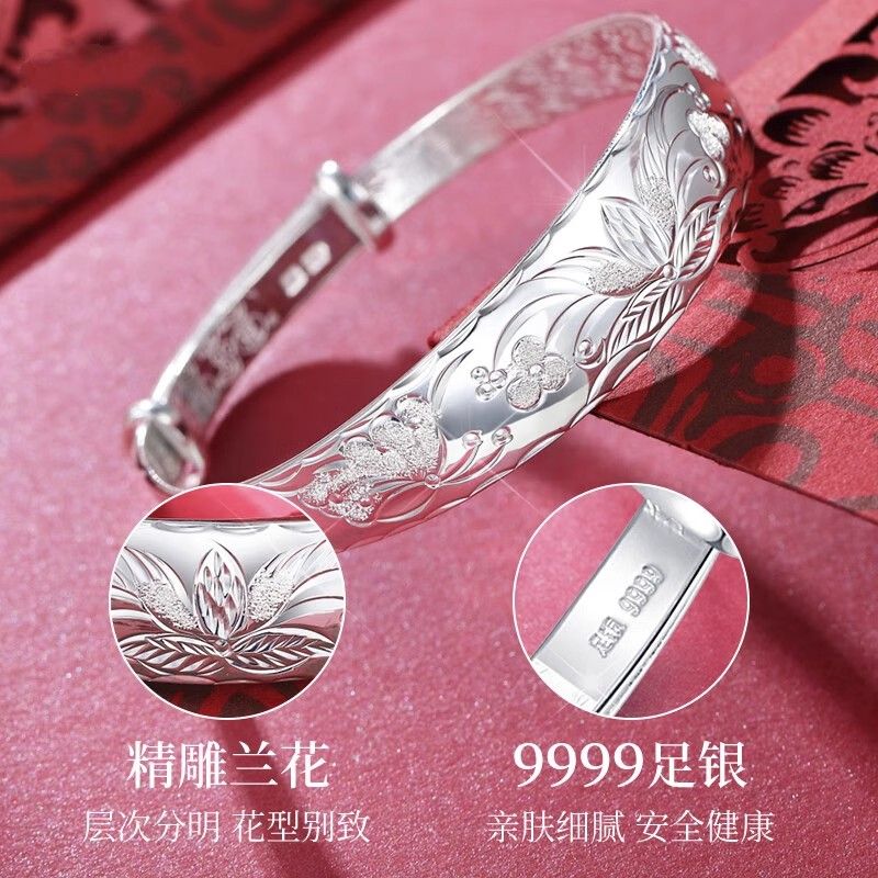 9999纯银手镯女中老年人款足银镯子实心龙凤福字奶奶礼物送妈妈的