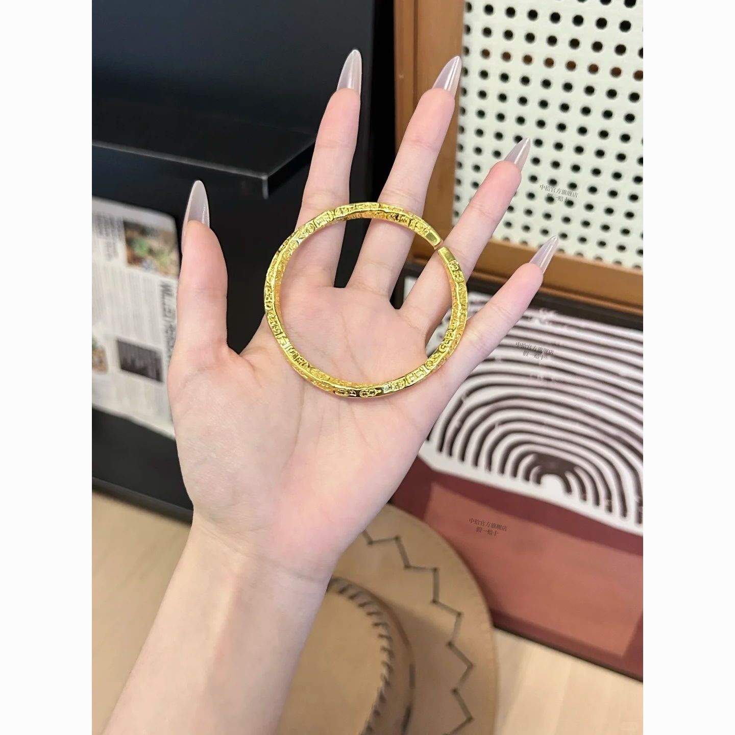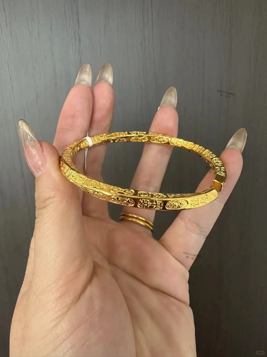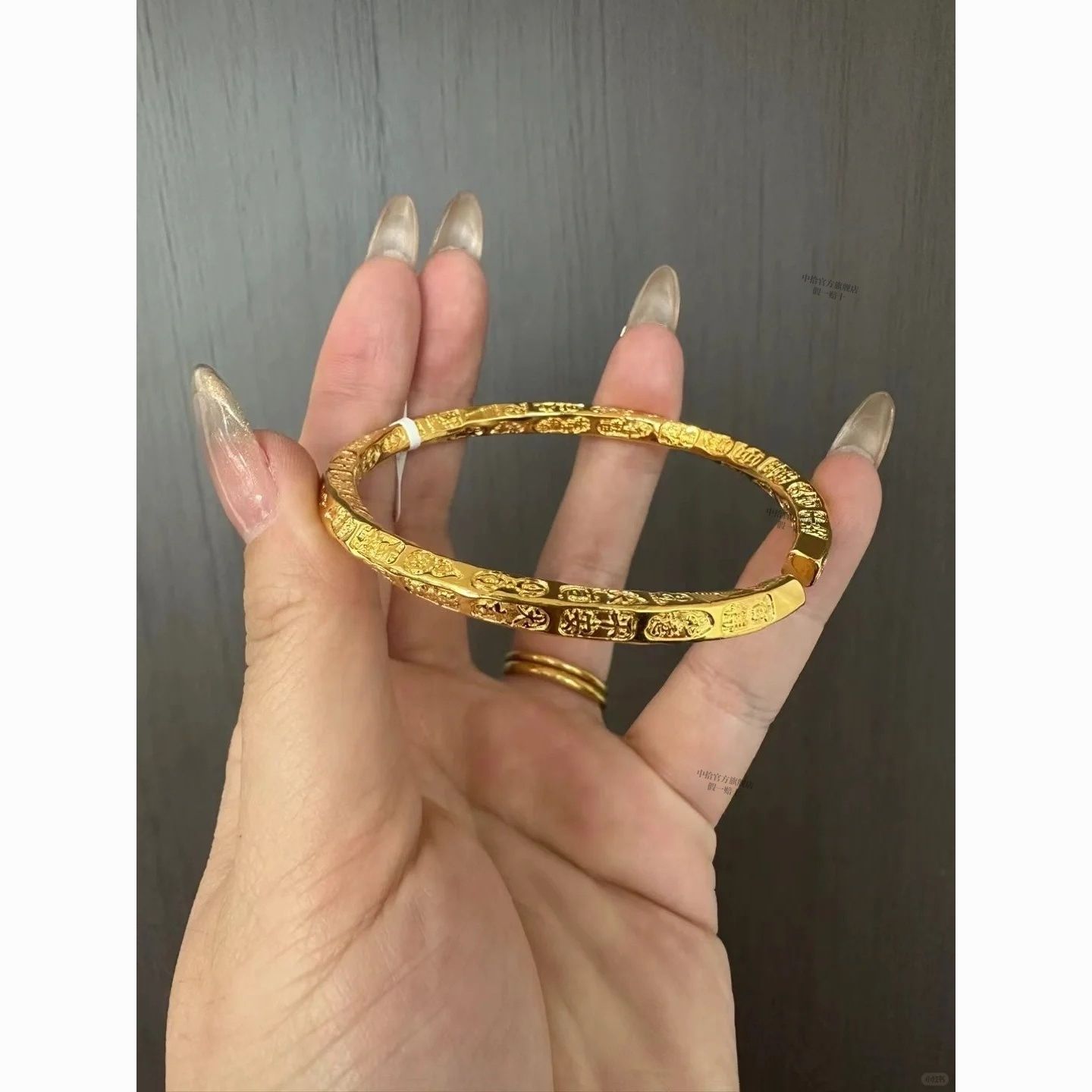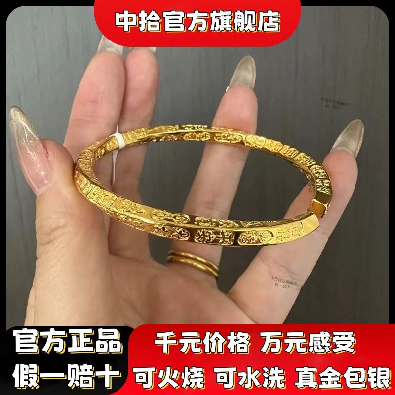 黄金吉言手镯女款真金足银平安吉祥手环金包银实心不掉色活口镯子