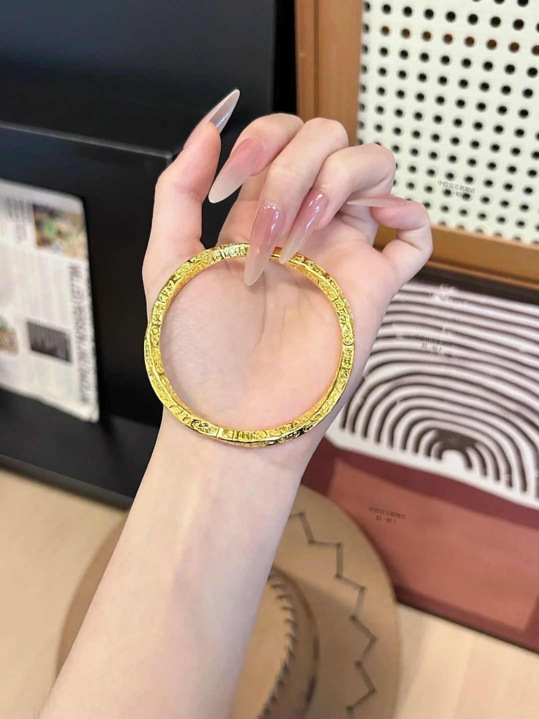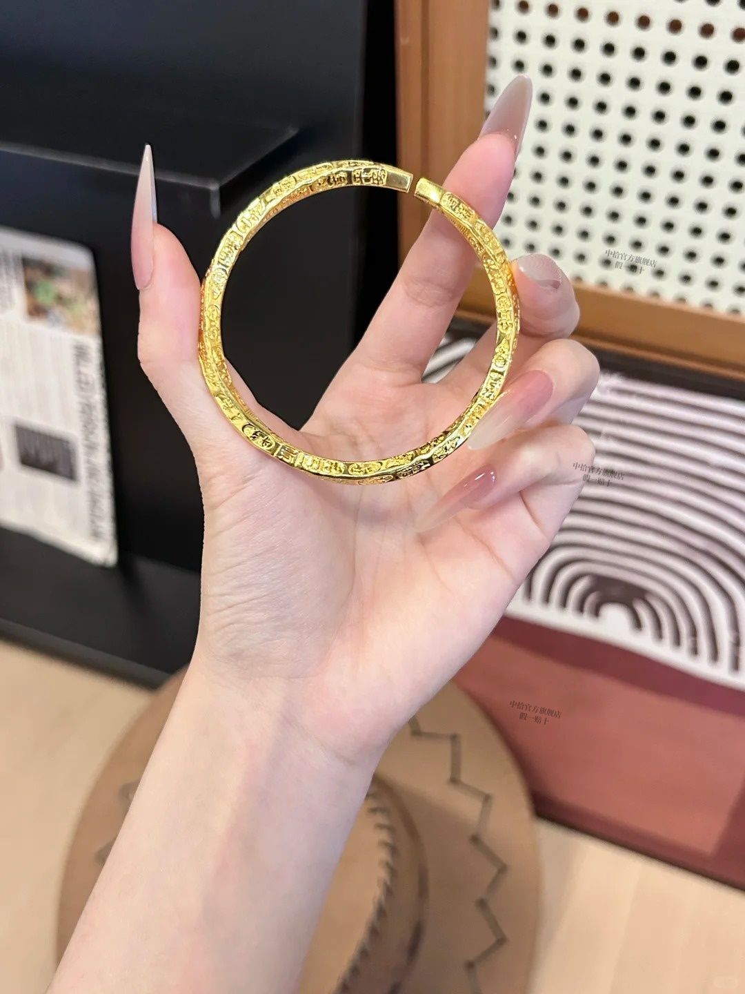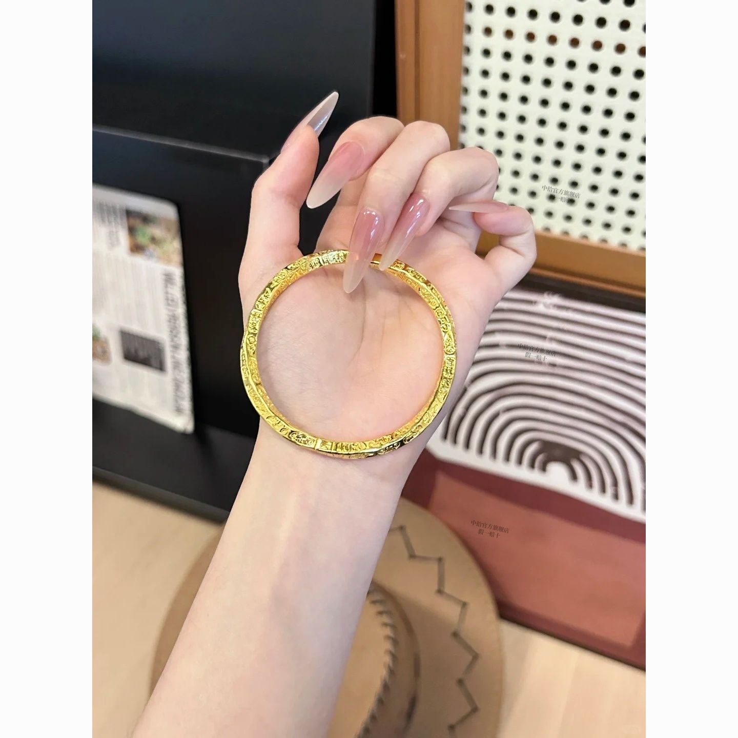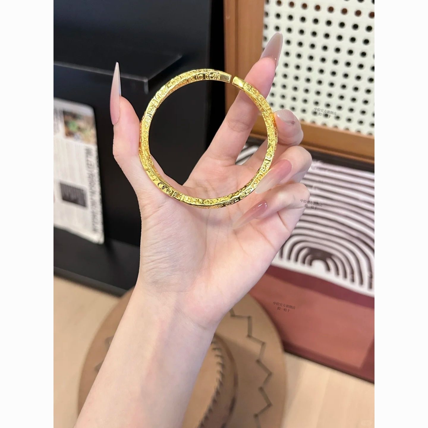 黄金吉言手镯女款真金足银平安吉祥手环金包银实心不掉色活口镯子