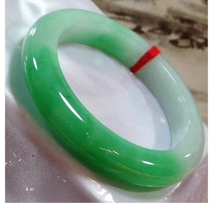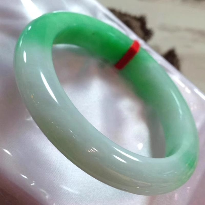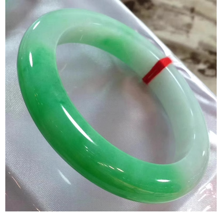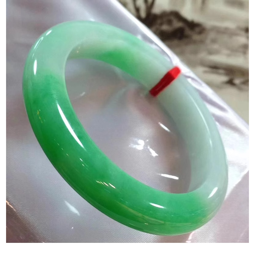 缅甸翡翠飘绿手镯阳绿冰种玉镯子翡翠半山水糯白绿牛奶底手镯送礼
