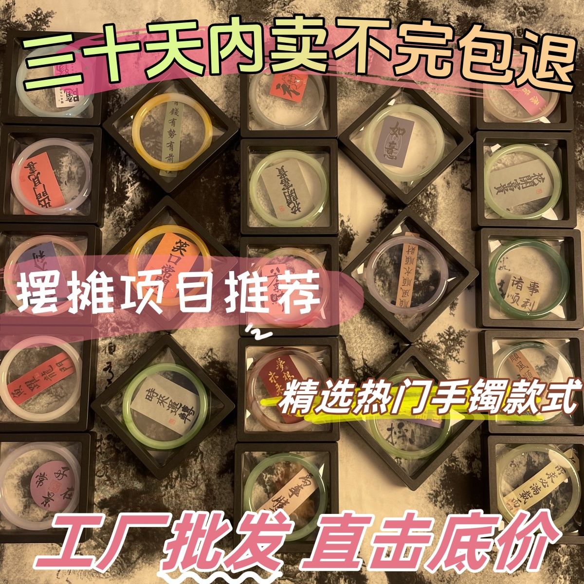 【30天包退】夜市摆地摊批发琉璃手镯国风庙会玻璃手环景点展五一