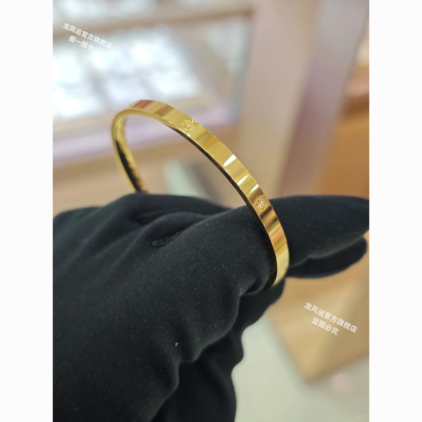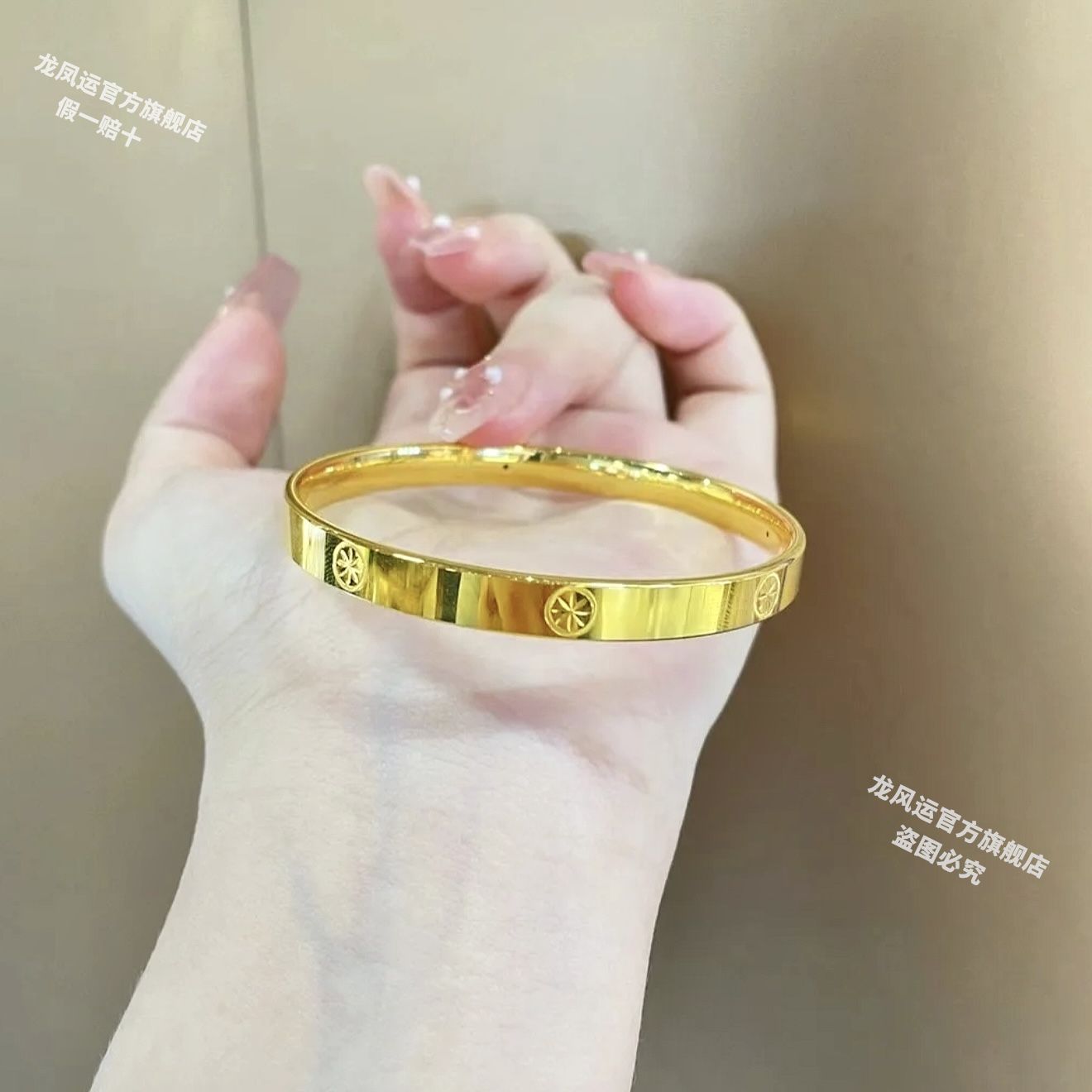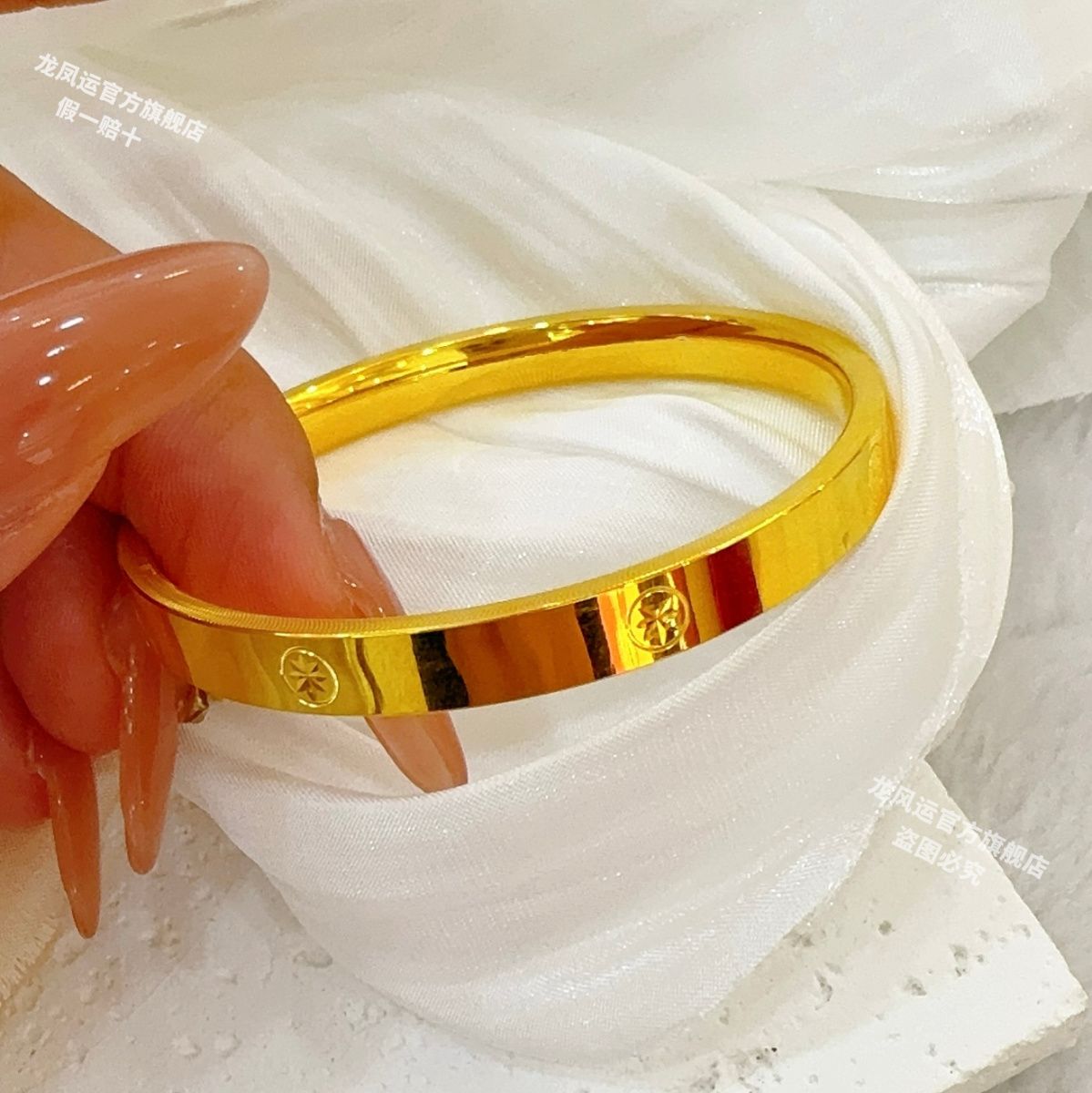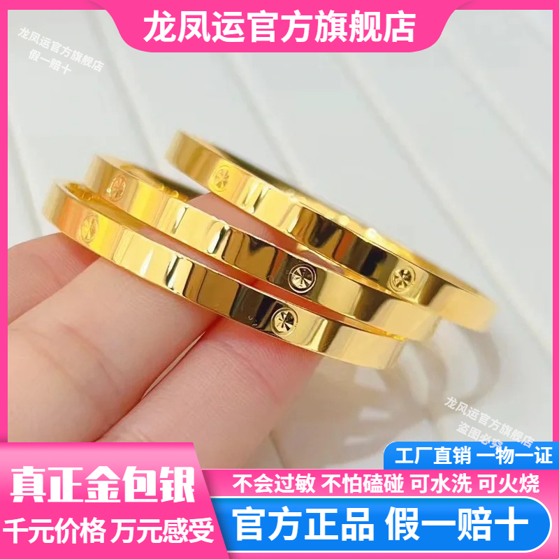 黄金足银米字手镯素圈闭口钻纹手环金包银镯子简约光面送女友礼物