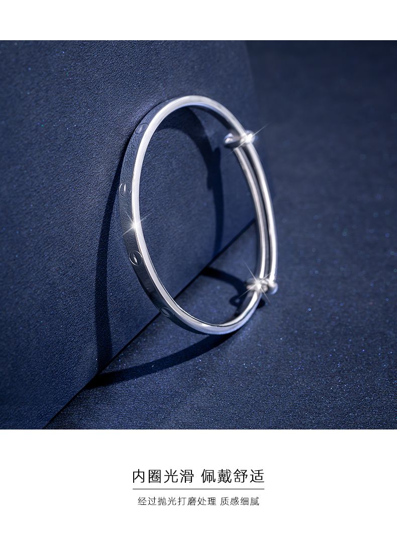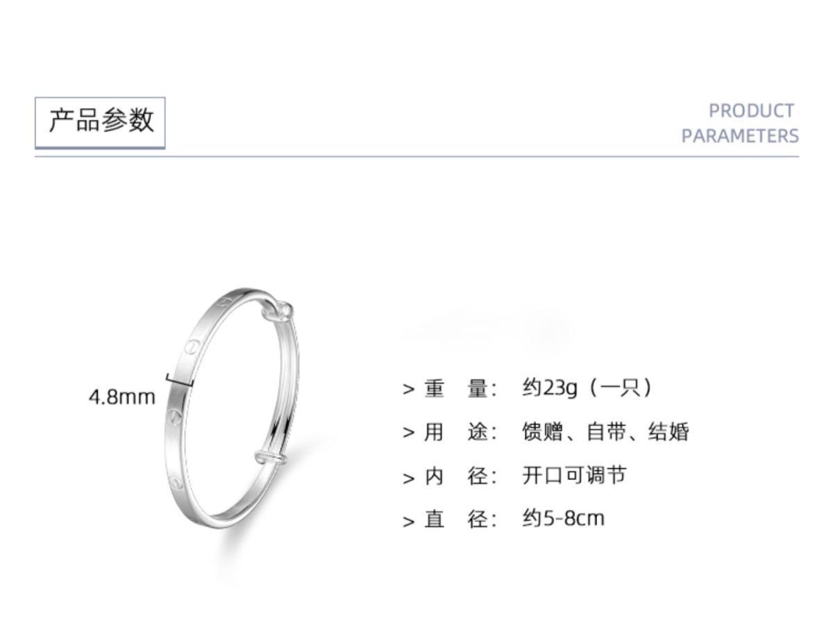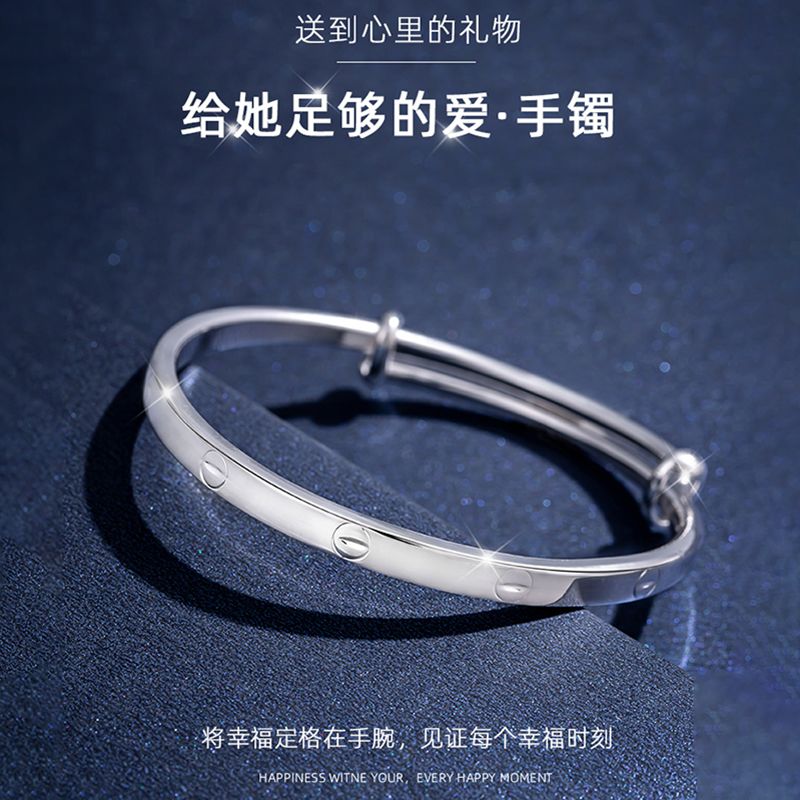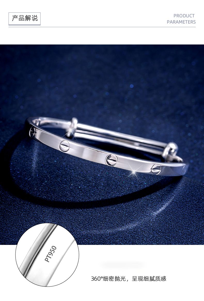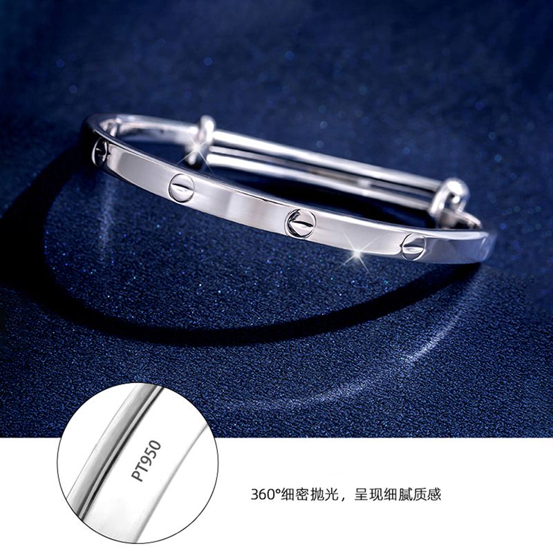 PT950铂金一字光面推拉手镯男女款白金镯子车花素圈送女友礼物520
