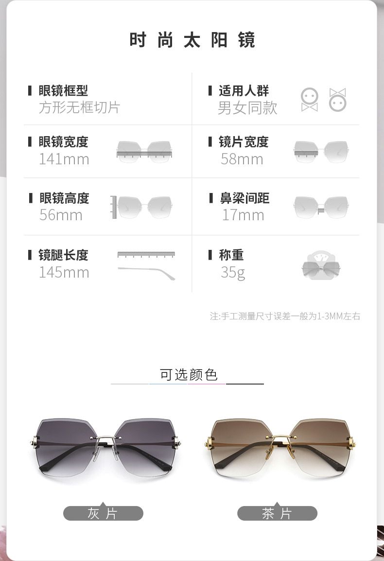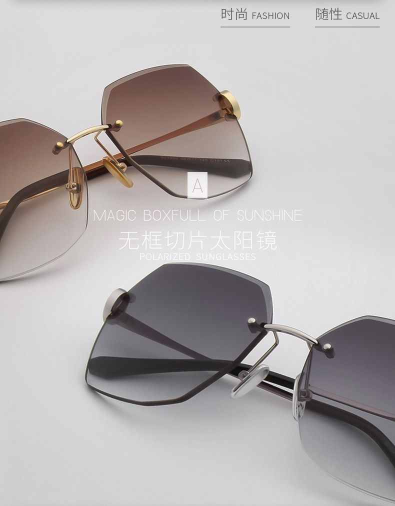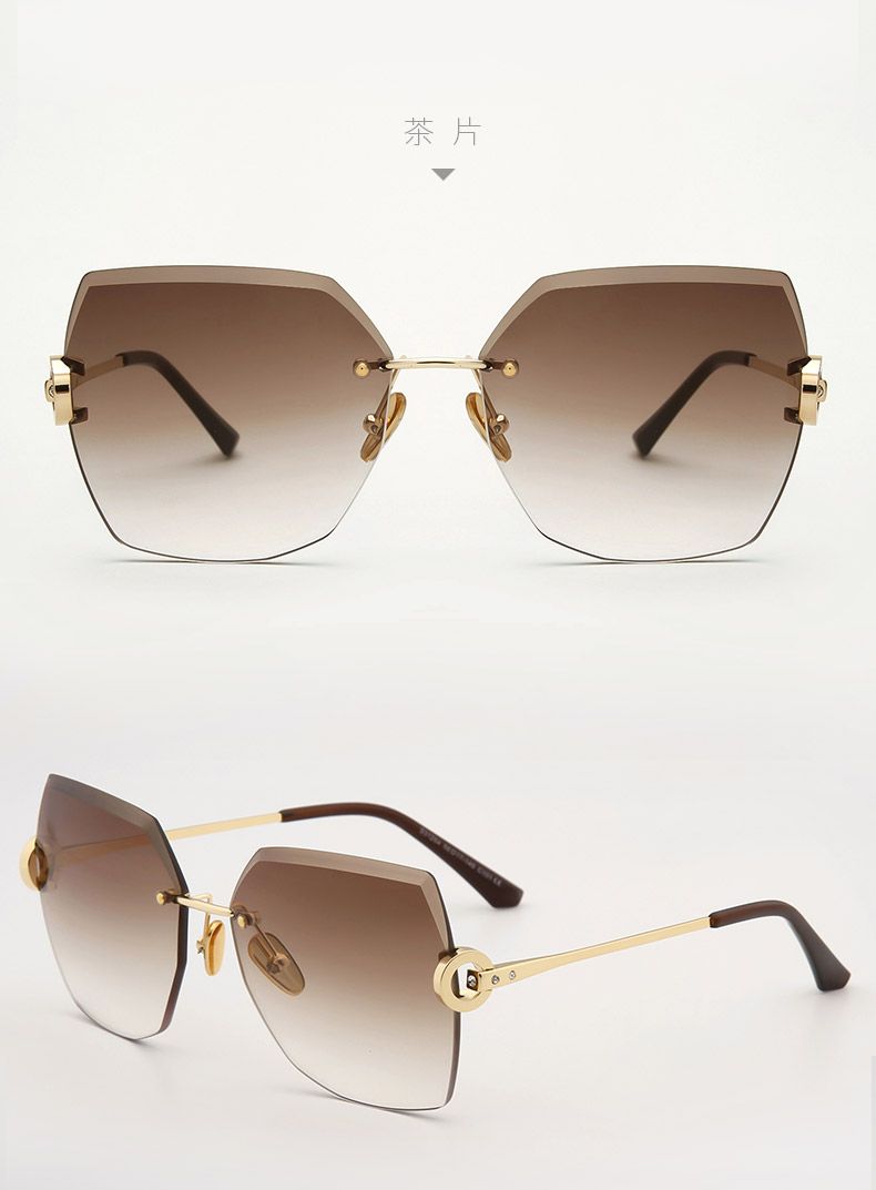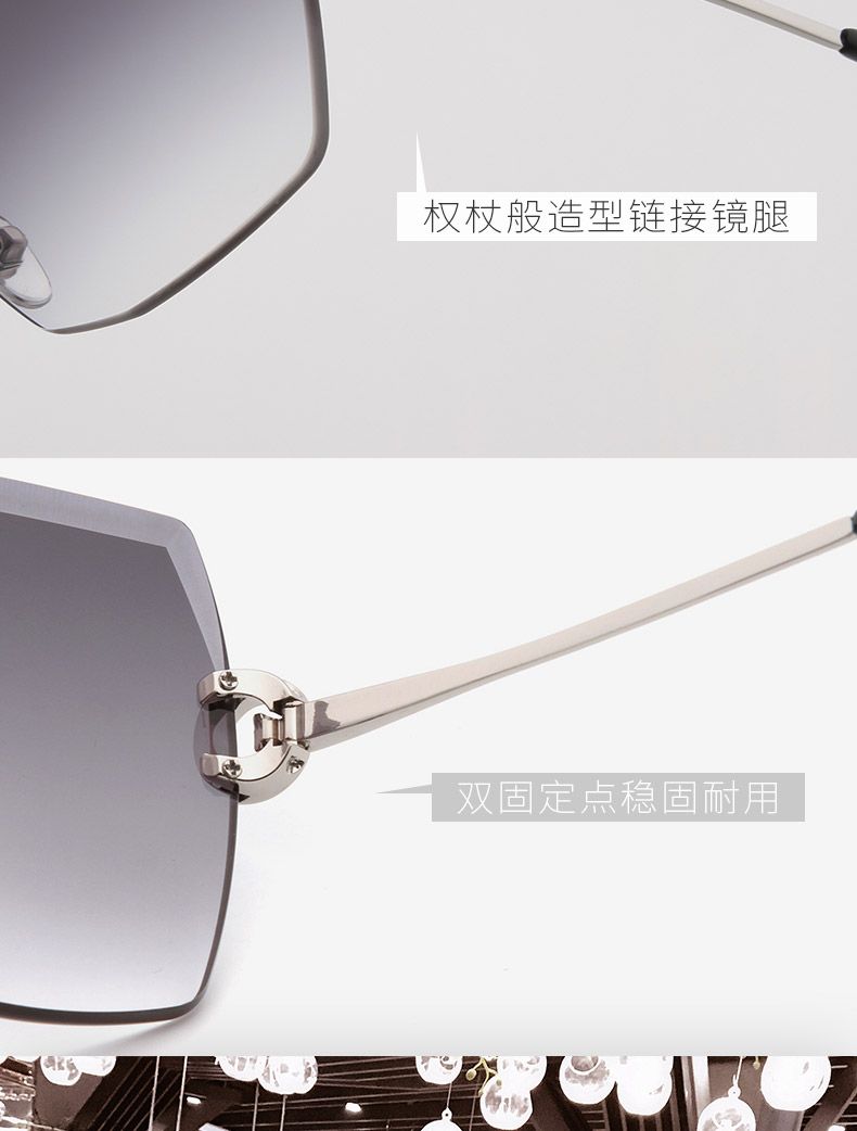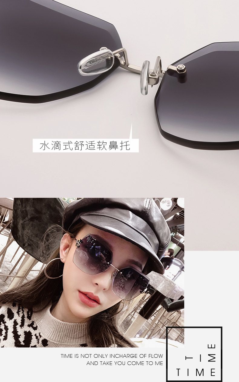 无框水晶切边多边形镜片防紫外线墨镜女士复古潮2019新品太阳镜女