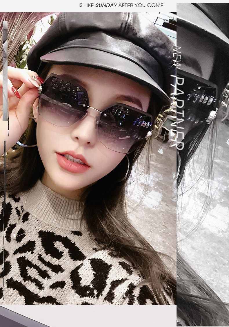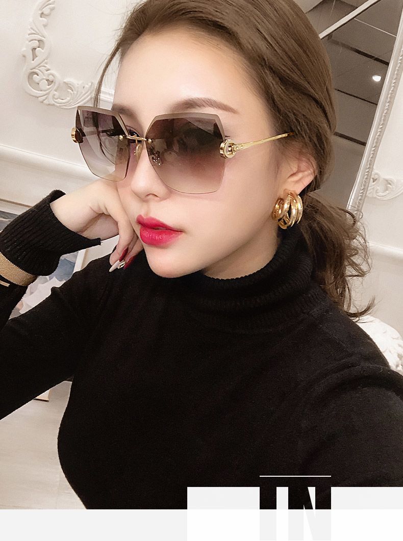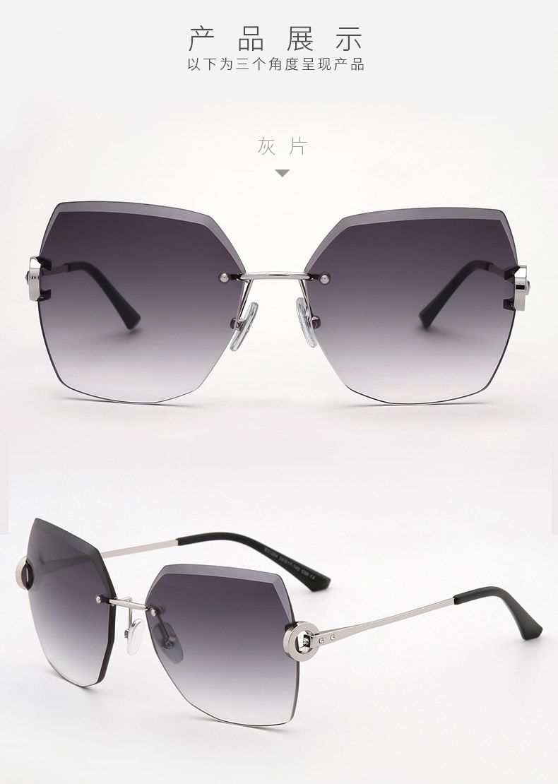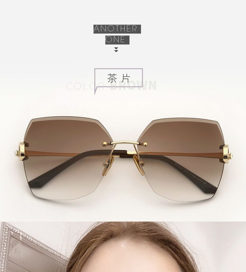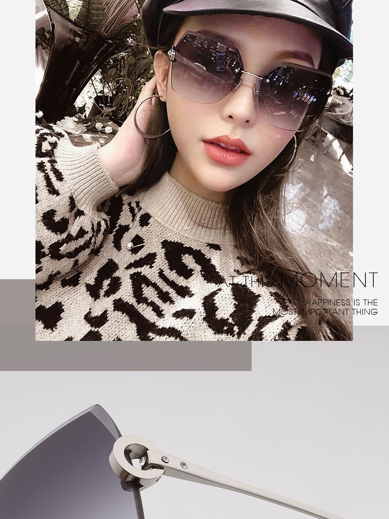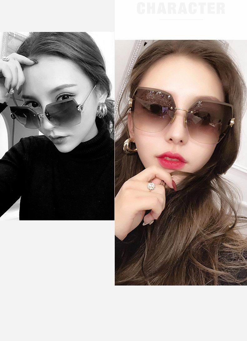 无框水晶切边多边形镜片防紫外线墨镜女士复古潮2019新品太阳镜女