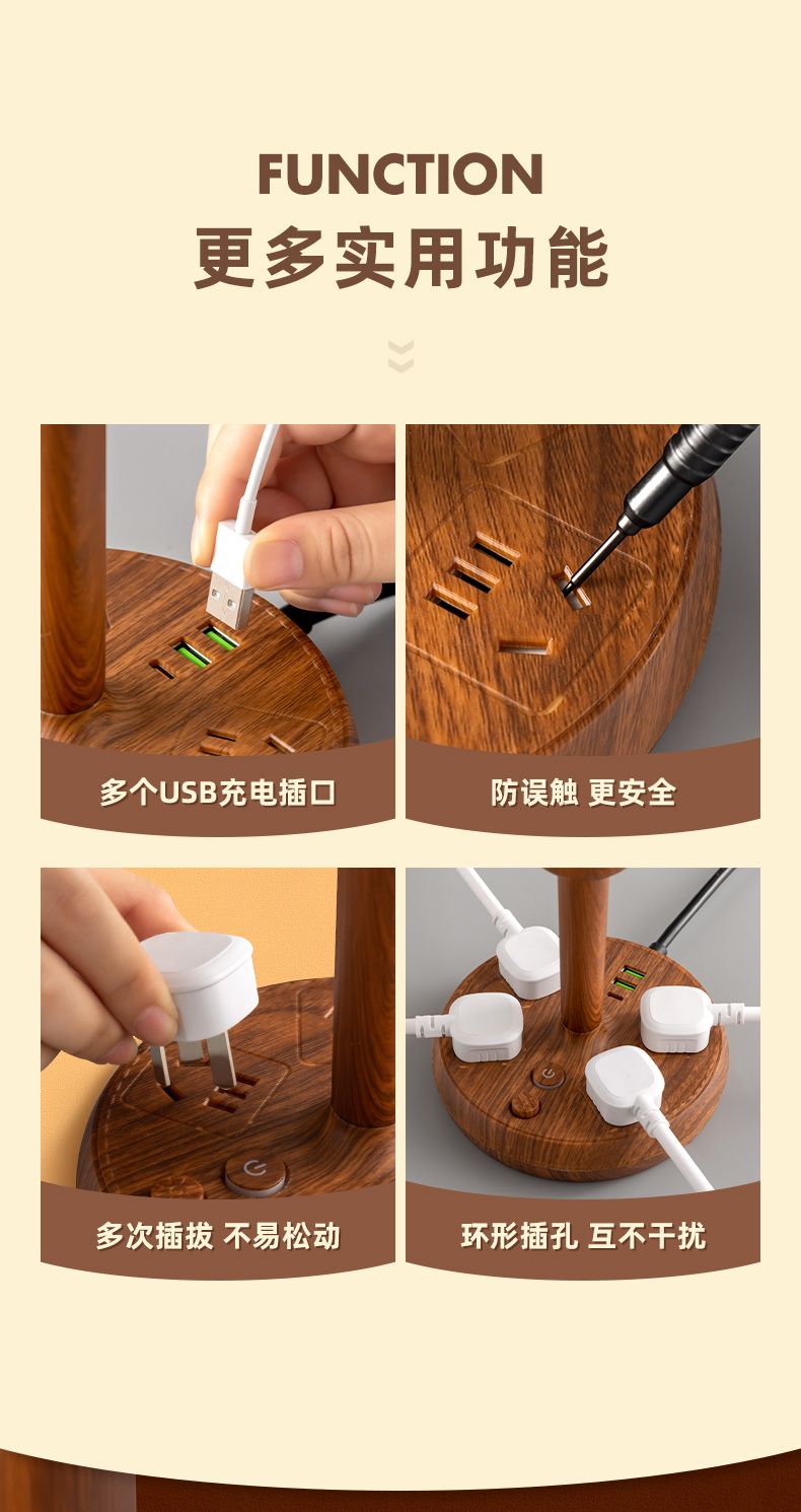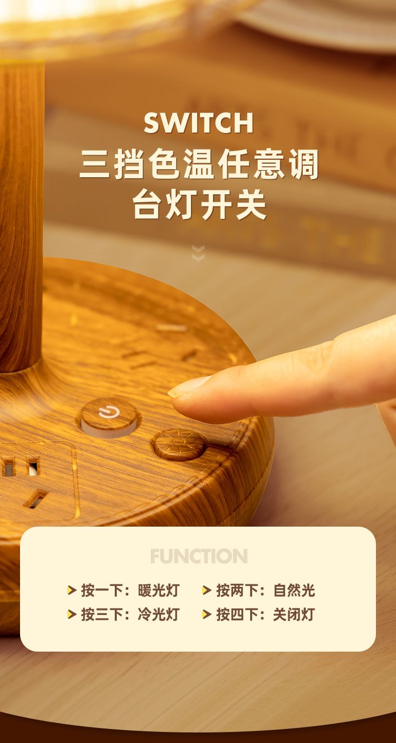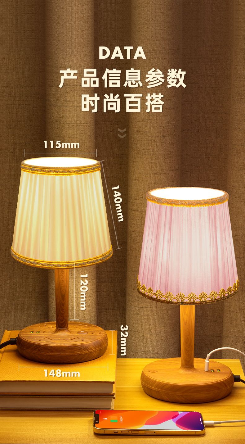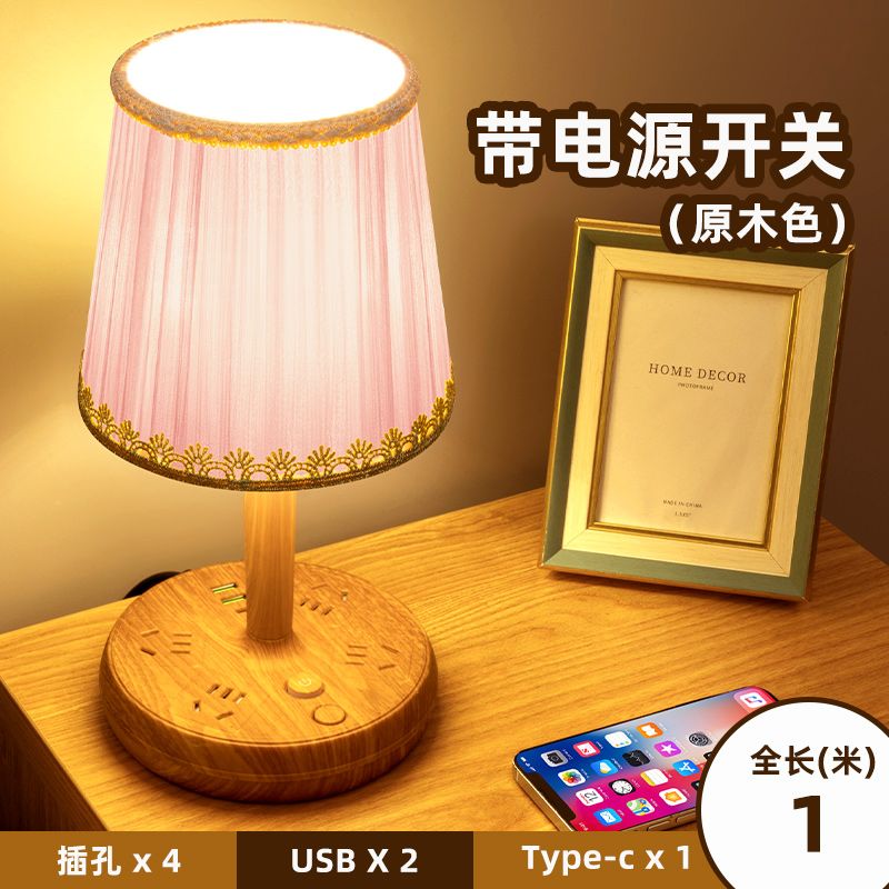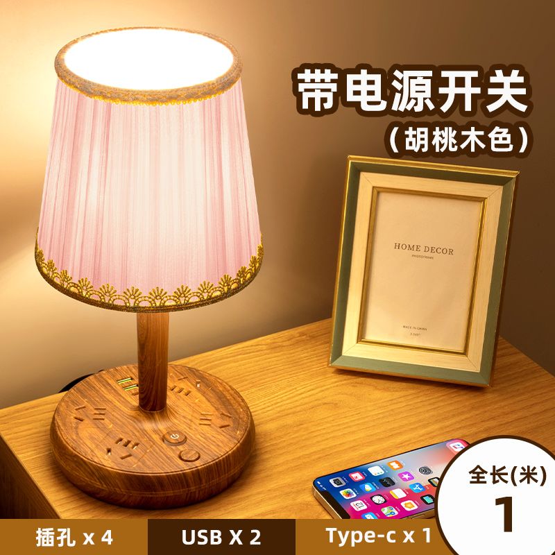 北欧高颜值ins风台灯卧室床头灯装饰台灯多功能夜灯插座台灯一体