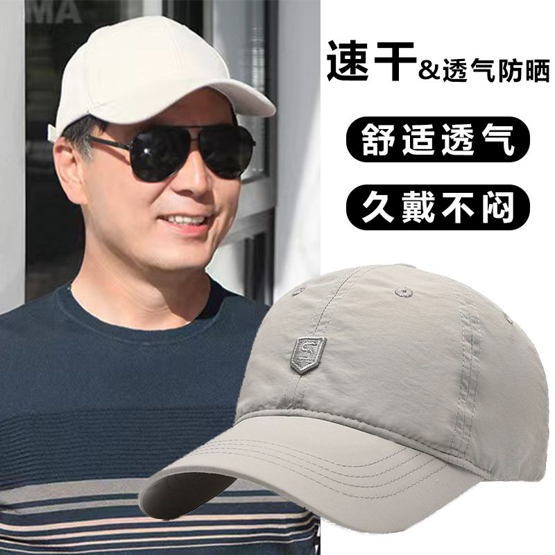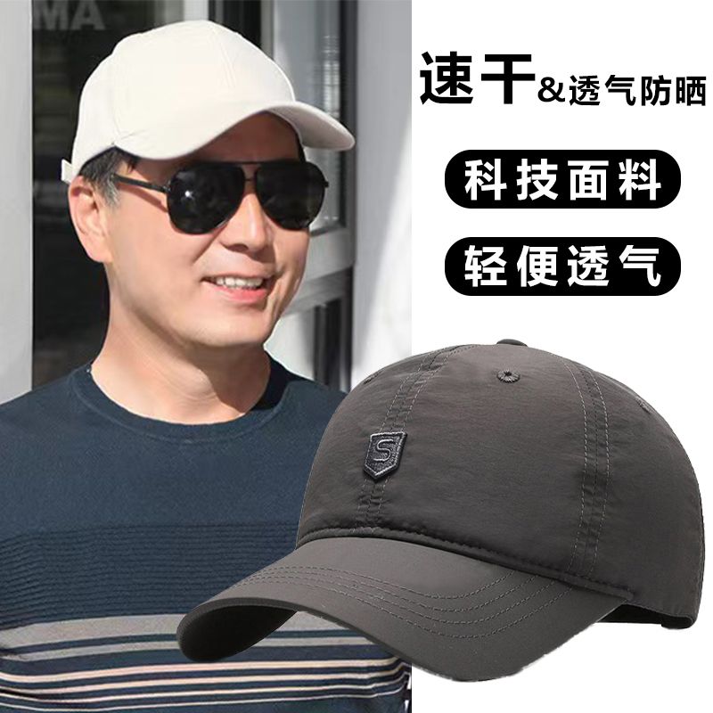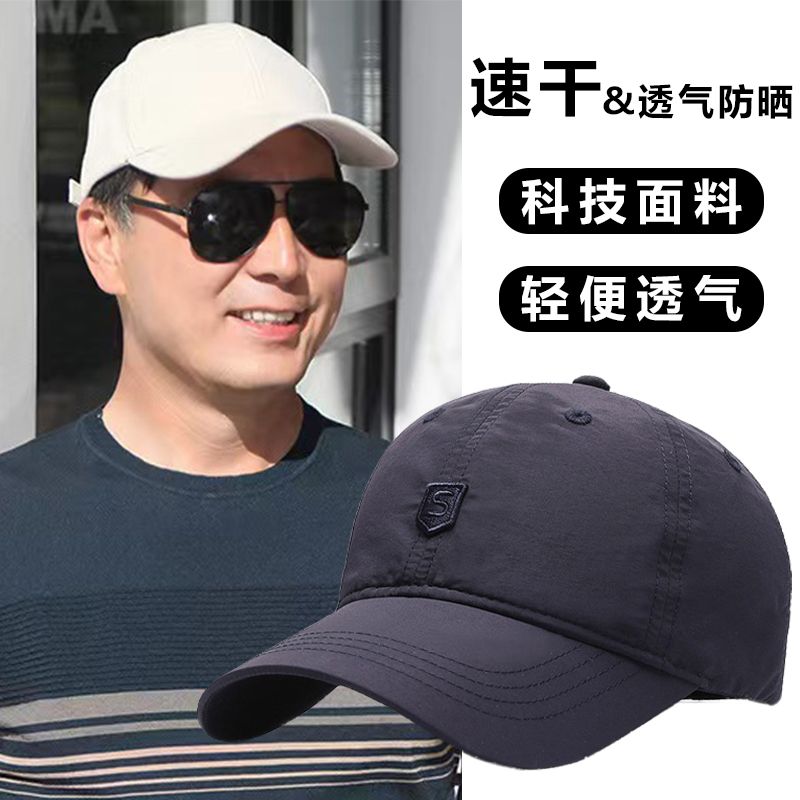 夏天速干防晒遮阳帽薄款透气中年男士棒球帽户外鸭舌帽透气帽子